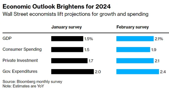 经济学家再次下调了对美国经济阑珊的猜测,由于他们预计,强劲的就业市场和强劲的消耗者付出将在短期内支持更强劲的经济增长。 彭博对经济学家的最新月度观察体现,由于家庭需求和政府付出的增长,本年美国经济的年化增长率预计将到达2.1%,高于上月预期的1.5%。受访者现在预计,与上月的猜测相比,未来两年消耗者付出(占GDP的三分之二)每年的增幅都将凌驾0.5%。 只管猜测人士广泛预计,美国经济在履历了2023年的庞大变乱后将失去一些动力,但仍然强劲的劳动力市场和渐渐消退的通胀继承支持着根本稳固的家庭需求。鉴于这种连续的韧性,受访者现在预计赋闲率将在本年晚些时间到达4.1%的峰值,低于上个月预期的4.2%。他们还预计,到2026年,美国雇主将增长更多就业岗位。 经济的连续增长势头有助于表明为什么经济学家现在以为来岁经济阑珊的大概性为40%,这是自2022年年中以来的最低程度。这些猜测在2023年上半年到达65%的峰值,当时美联储即将竣事40年来最激进的加息周期。 “美国经济仍然是天下倾慕的对象,”EconForecaster LLC的詹姆斯·史密斯(James Smith)说,“实际经济增长和(5.35,-0.02,-0.37%)就业增长都保持强劲,而通胀率和利率都在降落。” 受访者预计,美联储青睐的通胀指标——个人消耗付出代价指数(PCE)在2024年将匀称上升2.2%,略高于上月的猜测。他们预计,不包罗食品和能源的所谓核心PCE本年将匀称增长2.4%。 固然通胀预期将进一步放缓,但经济学家现在预计美联储将在更长时间内维持利率高位。他们现在预计,本年第三季度只有1次25个基点的降息,而前次观察的效果是2次。 此次观察于2月16日至21日举行,受访者包罗72位经济学家。 现在债券生意业务员已向美联储降服佩服,放弃了本年将大幅降息的盼望。在上周五的期权市场上,以致有人敢于押注美联储将进一步收紧钱币政策。 在一笔put-condor布局的期权生意业务中,在该合约于12月到期之前如果美联储的隔夜利率到达5.625%至5.875%的区间,该生意业务将会得到最大利润。现在的利率为5.33%。 不外,该押注的溢价仅为75万美元,对于与包管隔夜融资利率挂钩的约3万份期权头寸来说,这是一个很小的数额。因此,它大概是一家大型机构或投资者为了防范外部风险而设立的,以致大概是对现有对冲的调解。 但无论怎样,这又是美国债券市场自高于预期的通胀数据颠覆了对美联储的降息预期以来,焦急感情加剧的另一个信号。 这并不是迩来唯逐一笔违反共识观点的生意业务。在已往两个生意业务日的美国国债期货市场上,出现了一系列反对收益率曲线趋陡加剧的大宗生意业务。如果美联储开始推低短期利率,收益率曲线趋陡加剧的情况则很大概会发生。 |