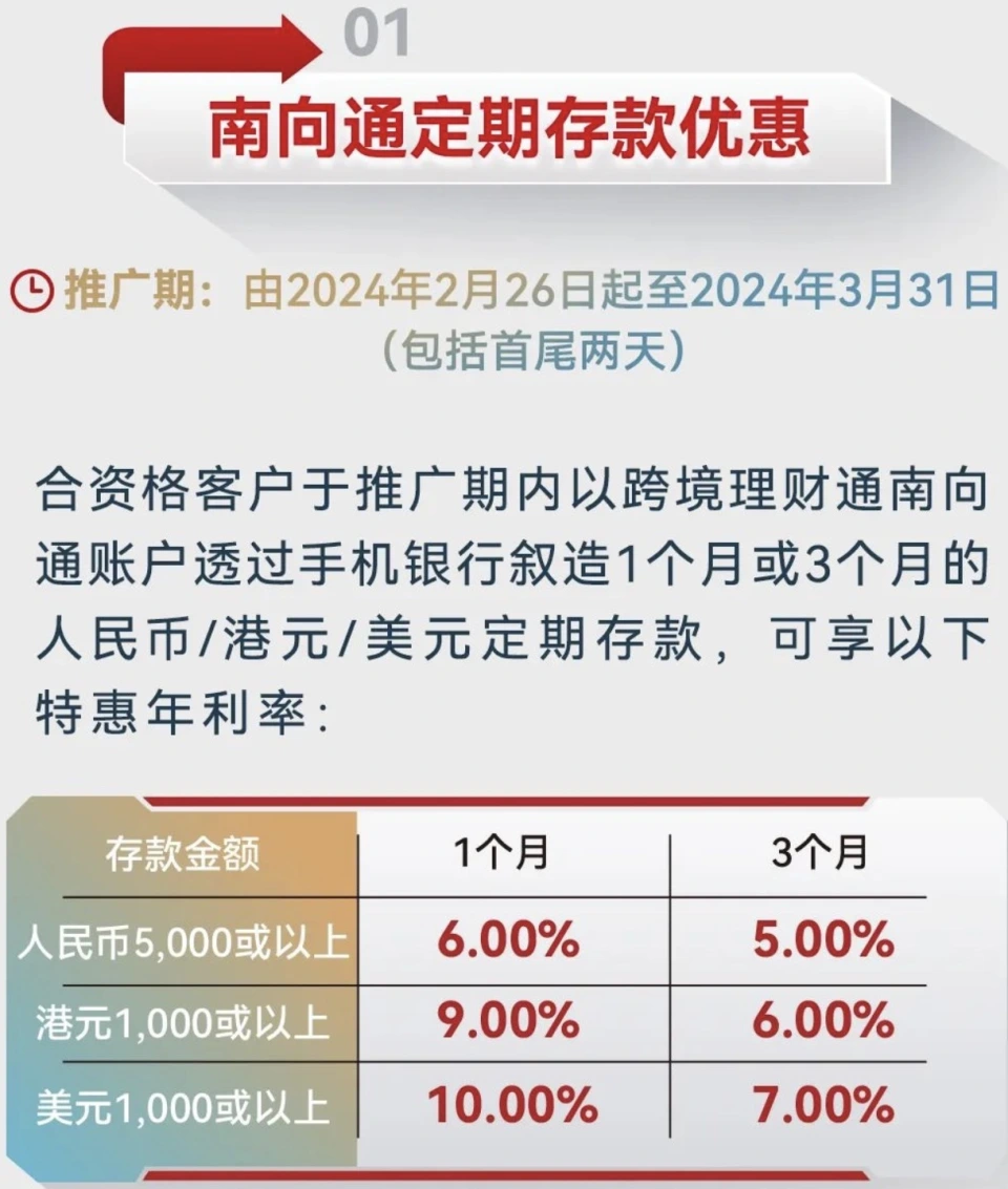 本文泉源:期间财经 作者:张昕迎 图片泉源:图虫创意 “跨境理财通2.0”落地首周,各家银行机构正摩拳擦掌、跃跃欲试。 2月26日,随着新修订的《粤港澳大湾区“跨境理财通”业务试点实验细则》正式施行,“跨境理财通”2.0版本正式上线。 相较于1.0版本,升级后的“跨境理财通”低沉了个人投资者的准入门槛,同时进步了投资额度,并扩大可投资产物的范围,方便和支持更多粤港澳大湾区住民参加试点。 期间财经相识到,如今包罗中银香港、工银亚洲、建行亚洲、渣打银行(香港)等多家具有“跨境理财通”业务资格的银行连续推出多款产物,通过开户夸奖、存款高利率、现金夸奖等方式吸引投资者,不少银活动了吸引“南向通”用户,乃至推出了6%以上的存款优惠。 定存年利率最高达6% 以中国银活动例,2月26日,中银香港、澳门中银分别在其官方微信平台上推出“跨境理财通2.0”迎新礼包,对符合资格的“南向通”客户给予最高到达6%的人民币定存利率优惠。 具体来看,中银香港、澳门中银1个月、3个月的人民币定期存款,年利率分别可达6%、5%,起存金额均为5000元。 签约开户方面,澳门中银的优惠力度更大。根据公告,前200名在该行乐成新签约“南向通”的客户,将直接得到388港元的现金夸奖。该行还推出一款保本型布局性理财,据其先容,通过手机银行办理该款产物,收益最高可达8%。 更多银行正在连续上架多款“王炸”存款产物。 2月26日,工商银行(亚洲)推出“跨境理财通2.0懒人包”,对于该行合资格“南向通”客户,人民币、港元、美元1个月的定期存款年利率可达6%、9%、10%,3个月定存年利率则为5%、6%、7%,远高于当地寻常定存产物利率。 截图泉源:工银亚洲官方微信公众号 诸云云类的优惠吸引了不少投资者“尝鲜”。 2月28日,来自深圳的李月(化名)告诉期间财经,“2.0版本规则推出后,门槛低沉了不少,我对比几家银行后选了澳门中银,如今筹划买人民币3个月、5%的定存,看了下其他的产物也不错。”李月透露,据她的客户司理称,上述定存产物到期后可以按照5%的利率举行滚存。 广东的林强(化名)在招商永隆银行开户后,克日完成了一笔5万美元的跨境理财通投资。 “开户之后先买了一笔美元货基,年化收益率能到5%以上。”谈到投资跨境理财通的契机,林强表现,“之前要买香港的金融产物,只能到香港开户,如今(跨境理财通)相当于多了一个投资渠道,门槛不算高,也省去了当地开户的贫苦。” 合资格金融机构或迎来业务发展机会 自2021年9月实验以来,“跨境理财通”备受市场关注。 据人民银行广东省分行数据,停止2024年1月末,粤港澳大湾区参加“跨境理财通”业务的个人投资者7.1万人,此中港澳地区和当地投资者分别为和2.5万人;跨境理财汇划金额138亿元,此中“南向通”130.13亿元,“北向通”7.87亿元。 “跨境理财通2.0”的落地,在此前根本上低沉了投资者的准入门槛。具体来看,“南向通”业务当地投资者的参加门槛从一连缴纳社保或个人所得税产物“满5年”调解为“满2年”,同时增长“近3年年均收入不低于40万元”作为家庭金融资产准入备选条件之一。 其次,2.0版本得当进步了个人投资者额度,将单个投资者的投资额度从100万元进步到300万元。 “跨境理财通2.0”一大亮点在于新增证券公司参加试点。 中金公司1月一份研报指出,此前“北向通”仅有银行系机构可作为“贩卖机构”或“互助机构”参加展业,本次政策新增证券公司参加试点,代销覆盖面进一步扩大。 期间财经留意到,香港证监会已于1月24日发出通函,故意参加跨境理财通的持牌法团应向证监会提交申请。与实用于银行的现行安排类似,持牌法团在提供跨境理财通服务时,应与一家或多家合资格当地券商创建互助安排。 香港证监会行政总裁梁凤仪也表现,这些优化步伐是拓展跨境理财通的一个告急里程碑,将深化和扩大香港在大湾区内的金融互助。尤其是合资格证券行的参加,不但为业界开启新机会,还拓宽跨境理财通至新客户群。 在可投范围方面,2.0版本将当地银行的人民币存款产物纳入“北向通”合资格产物范围;新增R4风险品级基金产物,重要包罗高颠簸股票类基金,今后绝大多数种类基金均可纳入“北向通”投资。 2月28日,期间财经从星展银行获悉,根据“跨境理财通2.0”实验细则,该行新增的基金及债券产物数量凌驾100只。星展银行将为“南向通”投资者提供凌驾220种理产业物,包罗基金、债券、人民币、港元及外币存款等。 同日,东亚银行方面向期间财经提供的资料表现,在理产业物方面,因应跨境理财通2.0扩大合资格理产业物范围,东亚银行提供凌驾250只合资格的基金产物。 除了利好投资者,“跨境理财通2.0”也将为金融机构业务发展带来新的机会。 上述中金公司研报指出,新政将利好名单内当地互助银行,为其带来跨境理财通业务增量,有利于提升产业中收与客户粘性;别的,人民币存款入围投资货架大概带来增量存款;新增名单内证券公司,更丰富的产物谱系或有利于新增拓客。 |