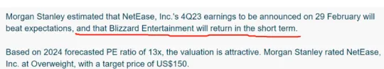 各人好,这里是魔兽周报。 【魔兽周报】重要由“魔兽大变乱”"魔兽竞品动态”和“魔兽游戏更新”三个部门构成。 就让我们一起来看看,近期有啥不叶吐不快的魔兽消息吧! 【魔兽大变乱】 暴雪嘉光阴彻底凉凉,大量成员外出求职 克日,在西欧地域的求职平台上出现了大量自称是暴雪嘉光阴分析师、暴雪嘉光阴策划的员工的简历。由此可以推断暴雪嘉光阴这个项目应该是真凉了,微软应该是不会允许暴雪继承举行这个项目了。 要知道暴雪嘉光阴曾是暴雪下半年最紧张的活动,必要动员全公司的气力来做的,险些每个组都要涉及到,展会固然只有两三天,但背后必要投入的人力物力时间相当大。但从“你们都没有手机”这件事出现后,暴雪嘉光阴的品牌形象就降落了一个大的档次,微软在收购后把它关停也算是合情公道的。 对此,玩家也是深感遗憾: —去过现场的都知道氛围有多好,玩家和官方都特殊给力。 —暴雪没活儿 你办什么展会呀? 再搞几个粉碎神不朽吗? —划确实划,要知道某一年由于一句话导致大跳水。 战网全平台化?魔兽即将登岸Steam 继《暗黑粉碎神4》与《守望先锋2》登岸Steam之后,Nvidia官方宣称《守望先锋2》、《守望先锋2》、《炉石传说》以及战网登录已在GeForce NOW云平台上推出,支持跨平台存档,玩家可以自由选择他们喜好的平台举行登录。 这一办法暗示了微软“去战网化”的实验服从很高,后续暴雪战网这个独立平台一定会名不副实,而战网旗下的游戏也必将从暴雪一家独占变成多平台存档互通。 至于为啥《魔兽天下》Steam还未出现?大概率是由于国服署理商会商的效果,只要微软够狠,他们完全可以把Steam亚洲服务器架设在上海或中国香港,实现国服玩家的无缝登录。 脱离暴雪更润泽了,网易财报公布 2月29日,网易发布2023年第四序度及整年财报。网易2023年第四序度营收271亿元,同比增7%;整年营收1035亿元,2022年营收965亿元;非公认管帐准则下,归属于公司股东的一连谋划净利润326亿元。 此中,2023年游戏及干系增值服务净收入为人民币816亿元(115亿美元),2022年为人民币746亿元。2023年来自于在线游戏的净收入约占该分部净收入的92.9%,2022年该占比为92.5%。2023年来自于手游的净收入约占在线游戏净收入的75.2%,2022年该占比为67.0%。 2023年手游收入占比同比增长,重要是由于《蛋仔派对》和《逆水寒》等手游的净收入占比增长。网易体现,《蛋仔派对》广受接待,自2022年上线以来累计注册用户数目已达5亿,更在春节期间取得日活用户4000万的突破。 比力玄妙的一点是,在网易财报公布之前,闻名投资机构摩根士丹利就对网易的财报举行了推测,他们不光以为网易财报会大涨,还以为暴雪会在短期内回归。 《逆水寒》免费了?赛季服开放铜币换点卡服务 克日,《逆水寒》调解了点卡/月卡规则,追加了累计登录时长夸奖。 大意为正式服新玩家的免费体验时长从原先的10小时延伸至90小时;赛季服玩家可以用铜钱购买点卡,3万铜钱就能购买一张10小时点卡;月卡礼包也从原先的54元低沉至36元,每月累计登录90小时,正式服跟赛季服都能得到额外夸奖。 也就是说,假如你是一位比力佛系的玩家,在赛季服完全可以用铜钱来点卡,进而到达免费嬉戏的操纵。 动视暴雪叛忍又多一枚?Toys for Bob官宣独立 在微软大裁人的风波中,Toys for Bob工作室一度被媒体报道成“他们正处于关停的边沿”,而究竟上也正是云云。克日,Toys for Bob正式公布成为独立游戏开发工作室,将会尽力开发一款全新的游戏IP。 要知道Toys for Bob工作室自2005年被动视收购后,推出了Skylanders系列,古惑狼的新作和重制,帮助开发了多款COD,假如不是遭遇巨大变故的话,大概不会搞出“分家”如许决裂的操纵。 【魔兽游戏更新】 不等国服了?怀旧服大灾变或将春季上线 在嘉光阴期间,暴雪曾公布怀旧服大灾变版本会在8月29日之前正式上线。云云充裕的时间跨度让不少人都在推测,这会是暴雪方面故意等待国服署理上线,双方同步开启这个版本。但在魔兽国服商标被驳回之后,这件事已经是发生了不小的变故,暴雪反手就把大灾变Beta测试的干系信息给加到了战网内里。 根据之前的Beta测试风俗来看,在两周内暴雪应该会启动大灾变的测试,然后在1到2个月内开启正式服版本。 换言之,我们大概率能在4-6月期间玩到大灾变,也不知道国服能不能跟上这次开服的节奏? 60级不是止境?暴雪终极确认:探索赛季会有第五阶段更新 克日,暴雪官方在社区发布蓝贴称第三阶段与第四阶段的部门团本计划已经确认,将会以20人共战BOSS的情势与玩家晤面,此中第四阶段的第一个大型团本会是更为强盛的熔火之心副本。至于第三阶段也是50级的团本计划,现在暴雪还不能透露,但这个团本的机制会是魔兽有史以来最为风趣的,且物品掉落的爆率也会提升,进而让玩家得到满满的结果感。 暴雪也表如今全面克制G团之后,他们有了很大的空间去给团本添加各种风趣的小东西,进而提升玩家在拓荒乐成后的体验感,丰富配装跟BD的多样性。别的,暴雪也向各人允许后续的团本计划都会低沉各人打本的门槛,让新手玩家、休闲党也可以构成团队,从什么都不会到买通一整个团本。 末了,计划师Josh Greenfield透露探索赛季会有第五、第六以致一系列的后续更新操持,并不会跟经典旧世那样止步于纳克萨玛斯竣事。 也就是说,固然玩家的品级