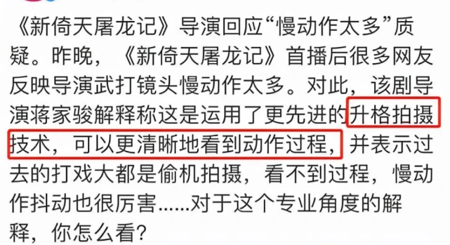 你有多久没在古装剧中看过纯正的打戏了? 如今的古装剧一抓一大把,什么仙侠剧、玄幻剧、武侠剧,标签一大堆,点进去一看,本质上还是披着各种“高大上”外壳谈爱情的古装偶像剧。 剧情俗套,工业糖精齁嗓子,那就光欣赏俊男玉人谈情说爱总没错吧?可就连画面美感这点,他们都不能做到,尤其是打戏,一些“大战”局面更是犹如儿戏。 (小声说:连人脸都看不清晰) 就拿前段时间播出的《且试天下》来说吧,这部剧贴上了武侠剧的标签,但内里的打戏险些到处踩雷。 动作语言“粗制滥造”,全部打戏的部分,演员只必要恣意挥两动手就行,别的的交给后期就完事。打戏本该有的刀光血影没有了,更别提拳拳到肉了,快意恩仇的武侠天下消散了。打戏到头到尾,观众连演员的脸都没看清,更别提什么飒爽英姿了。 他们如许图省事,观众却不会被乱来住,在热播期间,就有不少观众吐槽剧里的打戏拉垮,和同样舞动白绫的刘亦菲做对比,卖弄的PK真实的,效果着实是高下立见。 运镜更加是欲盖弥彰。在这部剧中,一碰到紧急关头,女重要大展拳脚了,运镜就跟着“横行霸道”了,让观众不知所云。 大概会有观众疑惑为什么要如许“殒命运镜”呢?无非是为了掩藏打戏动作的单一贫瘠,因此就只能在视觉上营造很猛烈的假场景,究竟“巧妇难为无米之炊”嘛。 实在武打戏拉垮在这两年已经不是什么希奇变乱了,《且试天下》并不是个例,早前标榜自己是武侠片的《雪中悍刀行》就由于打戏太过儿戏拉低了整部剧的观感,网友还发明确个“PPT式打戏”吐槽。 瞧瞧这定格的处理处罚,简直是拿殊效当挡箭牌嘛! 乃至在某些时间,直接省略了打架的局面,几个人来回“咻”一下,就借演员之口说出了了局。 固然,《雪中悍刀行》还不是“慢动作”的个例,《新倚天屠龙记》也属于这一范例。显着有先辈背书,却仍旧交出了一份“差生”的作品。 (新版评分) (旧版评分) 自己是武侠片,观众看的就是痛快酣畅淋漓的江湖儿女和出色纷呈的打戏,可导演直接忽略了精华。面对吐槽声,他还表明自己是“刻意为之”,是为了体现新技能,让观众有新的体验。 小8倒是以为为观众体现新技能是假,借用技能偷懒是真,观众固然也不是傻的,看品评就知道了。 好不容易有个轻微打戏利索点、赏心悦目点的《风起洛阳》,效果还没有夸完,就被曝出抄袭动漫《凡人修仙传》打戏动作,连动画方都切身了局证实网友的推测。 看完他们受质疑的几场戏,不能说绝不干系,只能说是千篇一律啊! 眼瞅着闹大了,《风起洛阳》的出品方才过来澄清,一股脑把锅甩在了武术团队的头上,坚称自己“小白花”,丝绝不提对被抄袭方的致歉。 不光单是他们,近几年的打戏简直没眼看,有自知之明的说自己是古偶剧;没有自知之明的宣称自己是武侠片,以为自己比同期电视剧更“良好”。然而就履向来说,噱头越大,翻车越锋利。 这不禁让人狐疑,岂非是武术引导已经在如今的影视圈里消散了吗? 实在并否则,翻看《雪中悍刀行》的演职员表,发现这部剧的武术顾问和动作引导都大有来头。 武术顾问桑林曾与吴宇森导演相助《赤壁》、2017年,作为动作引导的他,还因《绣春刀2》拿下了金马奖的最佳动作计划奖。内里各门派武艺、各种武器让人眼花缭乱,直呼过瘾。 动作引导吴胡斯乐的代表作,则是张艺谋颇具中国意蕴的《影》,内里的打戏柔中带刚,根据差异的人物设定计划了不一样的招数,非常用心。 以是,这绝不光单是武术引导的标题。小8以为是由几点缘故起因造成的。 第一是从前的演员肯磨,章子怡《卧虎藏龙》打戏受伤,指甲被削掉,直接把手插冰里,不痛了接着拍,整套动作行云流水。 在拍《一代宗师》的3年里,章子怡、张震等一众演员要每天练功,等片子拍摄竣事,张震对八极拳已颇有明确,参加武术角逐一不警惕还拿了冠军。 刘亦菲更是被观众戏称是末了一个“刀马旦”,在她十几岁的时间就已经“武艺了得”。 反观如今的演员,他们大多不能忍受如许的辛劳,不迟到就是敬业、划破小伤口更是能得到全剧组的“夸赞”,固然,尚有更多的,他们选择用替人办理就可以了。 第二点是从前的影视剧是“脚色选人”,而不是“人选脚色”。像是打戏很出色的《水月洞天》里有两位男主演都有练武的履历,团体水平都很高,打戏行云流水、拳拳到肉,一点也不搞什么花架子。 为了脚色必要,演员们会完成导演的要求,因此哪怕一些没有武术履历的演员们,也能出色地完成打戏部分。在剧组里,是导演最大,演员服从导演的安排。 反观如今的征象,由于流量期间的到临,选脚色的尺度发生了厘革,成了谁火选谁,在这种情况下,有演技、有武术功底的人也出不了头。 于是市场上随处黑白科班出身的流量明星们,他们连演技都没有功夫磨砺,更况且难度更大的武打戏呢? 因此,这是一个“劣币驱逐良币”的过程。 固然,尚有一个最关键的缘故起因,那就是市场变了,行业拍摄周期大幅度缩水,一部电视剧,常常几个星期就拍好了,质量可想而知。 而打戏,恰恰是最不能注水的,他必要泯灭大量的人力物力,乃至一个镜头都必要反复拍摄许多次。 像曾经光辉了一个期间的香港动作影戏,就是范例的“慢工出细活”,为了拍一场戏,整整拍了31天,而这,在本日是无法想象的。 固然,就古装剧来说,对打戏的要求并没有那么严苛,但是请一个专业团队、泯