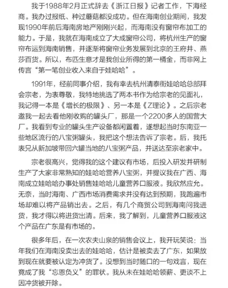 大概娃哈哈首创人宗庆后也料想不到,在他离世后,受打击最大的是农民山泉董事长钟睒睒。 这位以4500亿身家一连三年稳居中国首富的企业家,因被网友猜疑曾“背刺”宗庆后,短短8天市值已经蒸发了326亿港元。 相比于马云、马化腾、张一鸣等乘着互联网东风发家致富的商业巨贾,钟睒睒靠实业做到中国首富,好像显得别开生面。 他告急依托两大产业,一个是“大自然的搬运工”农民山泉,一个是“首家国产2价HPV疫苗”万泰生物。 但当我们回首钟睒睒的创业履历就会发现,实在他才是更懂东风的谁人人。 以致能自己造势东风。 大概这也是他给大众留下“夺目贩子”印象的告急缘故起因,而如今,他正面对最大危急。 和大部分企业家一样,钟睒睒也有着一段悲凉的微时履历。 1954年,钟睒睒出生于浙江杭州一个知识分子家庭。 在他读小学五年级那年,文革开始了,由于爷爷钟子逸的一段脱党履历,钟睒睒的父母被打成“右派”,连带钟睒睒也随之辍学,下放到了故乡诸暨。 为了生存,幼年的钟睒睒先是跟着乡邻学做泥瓦匠,后又干起了木工。 时间走到了1977年,文革竣事,已经23岁的钟睒睒又随父母回到了杭州。 为了探求人生新的出路,得知高考规复后,他毅然决定和妹妹一起报名高考。 但勇气可嘉,力气有限,即便连考两年,五年级就辍学的钟睒睒照旧以都离最低登科线差二十多分的结果名落孙山。 幸而天无绝人之路,为了让十年间延误教诲的青年能得到学习的机遇,邓小平指挥从中心到地方创建多所通过电视和广播上课的大学,简称“电大”。 在父母的奉劝下,钟睒睒成为了浙江广播电视大学第一批门生。 如今的浙江开放大学 浙广结业后,钟睒睒又前往了父母工作过的《浙江日报》做了一名记者。 得到教诲后,此时钟睒睒已经徐徐展暴露了自己过人的才气。 1985年1月4号,刚过30的钟睒睒就依附一篇名为《洪孟学为啥出走》的采访稿火遍天下。 这篇稿件陈诉了怀才不遇的技能工作者洪孟学,在国营大厂中随处受制,终极愤而出走,自己创建一番大古迹的履历。 由于揭破了当时的体制弊端,这篇稿子也引发了诸多读者的共鸣,以致还被《人民日报》专文品评。 但相比于稿件自己所带来的荣誉,钟睒睒在《浙江日报》得到的更大收益,实在是以记者身份采访时结交的牛人,以及劳绩的看法。 就比如由于一篇《洪孟学为啥出走》,让钟睒睒结识到了洪孟学,才有了厥后二人一起创建养生堂的故事。 而人脉之外,尚有视野。 在《浙江日报》的5年期间,钟睒睒跑遍了浙江80多个县市,采访了500多名实业家,也读懂到了各行各业的商业逻辑。 1986年,他用一篇《白菊花生产的风波》记载了杭州白菊是怎样由于信息不对称,从每半斤1.2元暴涨到15元,终极又暴跌到两三毛的全过程。 大概正是这篇文章,让钟睒睒看到信息不对称下所埋伏的巨大商机。 别的,记者身份也让钟睒睒比其他国人更早感知到国内东风的异动。 1988年4月13日,国务院设立了海南经济特区,一时间社会出现了“十万人才闯海南”的说法。 而《浙江日报》对这一政策热火朝天的报道也让钟睒睒生出了一颗“躁动”的创业之心。 同年,钟睒睒申请停薪留职,前往海南,正式步入了自己商业人生的历程。 固然因工作红利,让钟睒睒有了踏实的人脉和非凡的看法,但刚到海南的他照旧走了一些弯路。 一开始他仍旧想做自己的老本行,决定要办新中国第一份私营的报纸。 1989年7月1日,这份名为《平静洋邮报》的报纸发行了第一期。 在头版《敬告读者》一文中,钟睒睒写道: “活着界邮报之林中,中国第一张邮报——《平静洋邮报》,应亚太期间之运,乘中国开放之潮,破土而出!”“本报将积极发挥自己的媒介作用,资助中国实业界、理论界打开‘流派’,走向天下;资助港澳同胞、外洋侨胞和外国投资者透过‘窗口’,相识中国。” 然而,“纵然是在新建立的经济特区,报纸刊号仍旧是私人无法涉足的禁区”,这份拜托了钟睒睒全部抱负与情怀的报纸终极照旧被迫停刊了。 但文人空想的覆没,反倒让钟睒睒可以撇弃杂念,同心专心投身商海。 然而商海浮沉,钟睒睒这艘小船虽发愤扬帆,却照旧由于没找准方向,数次被风浪扑到。 他先是和人合资开办了一家蘑菇厂,但由于蘑菇不顺应海南天气,出师倒霉,然后又改卖窗帘,因踩在海南基建的大潮上,小赚了一笔,然而又由于开厂养对虾,再度赔光。 几轮折腾下来,终极钟睒睒照旧回到了职场。 但这次,他的工作内容却不是私室握笔,而是闹市寻人,他成了哇哈哈儿童营养液在海南和广西两省的署理商。 也正是这段他和娃哈哈的故事,导致他本日的危急。 由于钟睒睒本人的澄清,这段故事如今盛行两个版本。 第一个版本是,当时的哇哈哈风头正盛并不愁卖,再加上钟睒睒在海南积累的人脉,这份工作可谓是坐等收钱。 但钟睒睒照旧没能满意。 钟睒睒发现,娃哈哈由于海南是经济特区,以是给自己的署理代价是有优惠的。 于是他使了个心眼,把自己在海南低价买进的营养液,拉到广东湛江售卖。 可这种跨区窜货的举动,对商家来说是绝对不能容忍的,因此在被哇哈哈发现后,钟睒睒也就失去了署理资格。 而另一个版本是钟睒睒从未被娃哈哈开除,他多年前在贩卖集会上的一句打趣话,被流传至今。 不管是哪个版本,了局是聪明的钟睒睒明白了商机。 他意识到,哇哈哈儿童游营养液之以是脱