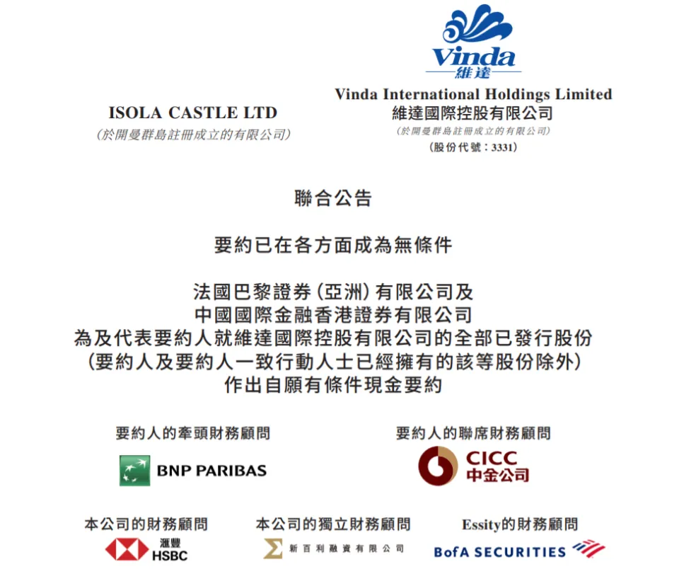 3月11日晚间,维达国际发布公告,于2024年3月11日(星期一)下战书4时30分,已接获Essity GH就其全部约6.21亿股股份发出的要约有效接纳,占公司于本公告日期已发行股本约 51.59%。因此,要约的条件已获告竣。这意味着,新加坡金鹰团体旗下亚太资源团体,以每股23.5港元的代价收购维达国际,要约收购中所摆列的先决性条款已经全部告竣,要约已经公布为无条件。至此,宣告维达国际正式进入“金鹰”期间。 根据公告体现,本次收购总代价261.026 亿港元,约为 33.42 亿美元。该笔交易业务为现在最大的中国纸操行业股权交易业务,亦大概成为本年亚太地域最大金额的快消行业并购案例。 近两年,受纸浆等原质料代价影响,维达国际固然仍保持纸操行业第一阵营,但净利润并不抱负,此时大手笔的新加坡金鹰团体,其下一步动作也被业内瞩目。业内人士以为,在金鹰团体的助力下,维达团体有望加快扩张,中国生存用纸四各人族——恒安团体(心相印)、维达纸业(维达)、金红叶纸业(清风)、中顺洁柔(洁柔)不停保持的剧烈竞争格局或因此改变。 维达国际易主 亚太资源团体是环球最大纸浆及纸成品生产商之一,背靠爱国侨领陈江及其开办的新加坡金鹰团体,后者在纸浆和造纸、纤维素纤维、特种纤维素布局颇多,是环球着名的上游企业。 随着这起中国生存用纸行业已知的最大股权交易业务落定,作为纸业卑鄙的维达团体,也将与上游的亚太资源团体产业链协同,加强其亚太纸业市场的竞争力。 作为生存用纸行业以致斲丧操行业备受关注的交易业务之一,维达国际易主历时靠近一年的时间。 2023年4月,维达国际的控股股东、瑞典个人照顾护士制造商爱适瑞(Essity)对外公告,为减低斲丧类纸巾业务占比,启动计谋检视,大概出售其维达持股及欧洲私操行牌的斲丧性纸巾业务。 Essity与维达国际的互助由来已久,早在2007年维达国际上市前,Essity的母公司爱生雅入股维达国际,今后,爱生雅先后多次增持,终极在2013年成为维达国际的控股股东,持股占比51.59%。 维达国际作为中国四大头部生存用纸企业之一,在市场份额、品牌着名度等方面处于领先,根据凯度斲丧者指数数据体现,维达品牌2015年到2023连续9年在中国当地生存用纸市场的市占率第一。只管已往几年净利润承压,但还是资源市场生存用纸板块的优质标的。不外,受制于原质料上涨及竞争等多方面因素,近三年维达国际的净利润遭受了肯定的颠簸,怎样买通上卑鄙产业链、加强其产业链上的话语权,亦是维达国际近两年面对的新课题。 直至12月15日,维达国际发布公告称,要约人Isola Castle Ltd提出以每股23.50港元的代价收购维达国际全部股份。股权交易业务完成后,Isola Castle Ltd将持有维达约72.62%的股份,而Essity将不再持有维达的任何股份。 公开资料体现,Isola Castle Ltd的母公司是亚太资源团体,亚太资源团体(简称APRIAL),是环球领先的林浆纸一体化制造商,年生产本事为纸浆280万吨、纸115万吨。亚太资源团体的丛林掩护和丛林再规复面积凌驾36万公顷,此中包罗15万公顷泥炭地丛林。亚太资源团体与环球最大的纤维素生产商赛得利Sateri、亚洲第一家林浆纸一体化生产商APR同为新加坡金鹰团体旗下公司。 团结香港联交所此前的权益披露的文件,亚太资源团体及其划一举措人合计持有维达国际约80.32%股份。若亚太资源团体今后四个月内已收购不少于90%要约股份,则亚太资源团体将欺压收购剩余股份。完成欺压性收购后,维达国际将成为其之全资附属公司,并将申请取消联交所上市职位。 买通纸业上卑鄙全产业链 生存用纸企业和资源型团体的精密互助,体现了这项巨额交易业务背后两边的战略意图。 作为国际性大宗原质料,生存用纸告急原质料纸浆的代价受环球经济周期的影响显着。回首维达国际积年的发展路径,可以看出其为应对原质料的周期性颠簸以及在同质化竞争中突围,通过创新投入及产物组合的优化,加强品牌创建在高端化发展上做了颇多积极。 但受行业团体环境影响,比年来国内多家生存用纸龙头企业的谋划利润连续下行,维达国际也不例外,在净利润层面,2020年-2023年净利润增速分别是+64.7%,-12.59%,-56.91%,-64.16%。造纸行业利润与上游的纸浆代价涨跌不无关系。 从环球范围来看,中国的生存用纸行业在纸浆资本上并不占优,纸浆供应对外依存度比力高。在国际纸浆代价上行周期,国内纸业公司广泛谋划承压。公开资料体现,自2020年11月以来,纸浆的代价连续上涨,2023年纸浆代价的高位出现在年初,针叶浆890美元/吨,阔叶浆760美元/吨,克制2023年底有所回落,针叶浆760美元/吨,阔叶浆640美元/吨。 迎来这家新加坡这家环球运营的资源型制造团体作为新主,将有利于维达国际控制资本,加强产业链上卑鄙话语权。 资源为何钟爱中国纸巾市场? 对中国市场远景的承认,也是金鹰团体甘愿大手笔收购维达团体的告急缘故起因。 新加坡金鹰团体首创人、主席陈江和多次在差异场所体现,刚强看好中国市场和发展远景,看好中国市场生存用纸的发展潜力,将连续扩大在华投资。2023年10月,陈江和在担当环球丛林产操行业信息提供商Fastmarkets RISI的采访时体现: 我们始终看好中国经济,中国经济显现了充实的韧性,恒久向好根本面稳固。 公开数据体现,中国人均生存用纸年斲丧量约为9.5公斤,而成熟市场是20公斤,这意味着中国市场未来增长潜力巨大。随着