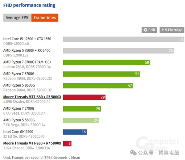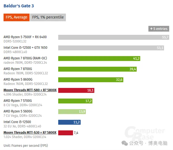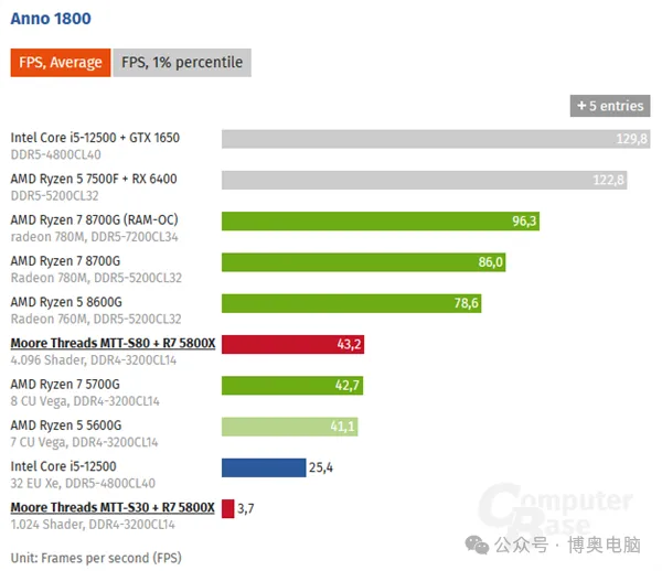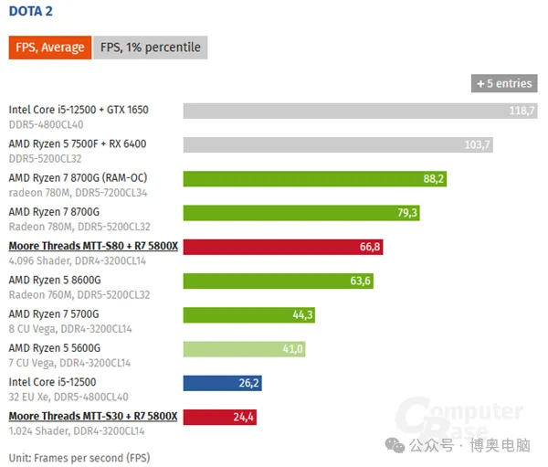 3月12日消息,摩尔线程日前发布了入门级显卡MTT S30,只有1024个焦点、128-bit 4GB GDDR6显存,仅支持PCIe 4.0 x8,整卡功耗40W,代价也只要399元。 至此,摩尔线程消耗级显卡已经有了完备的产物线,包罗游戏级的MTT S80、S70,工作站级的MTT S50,商用级的MTT S30、S10。 德国媒体ComputeBase克日对MTT S30举行了一番游戏测试,同时另有MTT S80。 不外要提前夸大,MTT S30并非游戏显卡,而是面向商用的表现卡,以是不必苛求其性能表现。 究竟上,MTT S80/S70壹卞崆摩尔线程的第一站,不停都在不绝优化美满之中,性能和兼容性都越来越好,但与国际先辈程度的差距仍旧必要连续积极。 ComputeBase只对比测试了《DOTA2》、《纪元1800》、《博德之门3》、《CS2》 四款游戏,由于MTT S80/S30现在仅支持到DX11,尚未完成对DX12的优化适配,以是很多游戏还不能跑。 综合下来,MTT S80 1080p分辨率下的匀称帧率为42FPS,相比锐龙5 8600G还慢了约莫37%,只略高于上一代锐龙7 5700G。 MTT S30匀称就只有11FPS,相称于12代酷睿i5-12500的一半。 详细游戏中,《DOTA2》是摩尔线程优化较好的,MTT S80可以跑出靠近70FPS,略微高出了锐龙5 8600G,MTT S30也能靠近25FPS。 《CS2》就相对最弱了,但由于游戏要求比力低,MTT S80已经到达了60FPS的及格线。 |