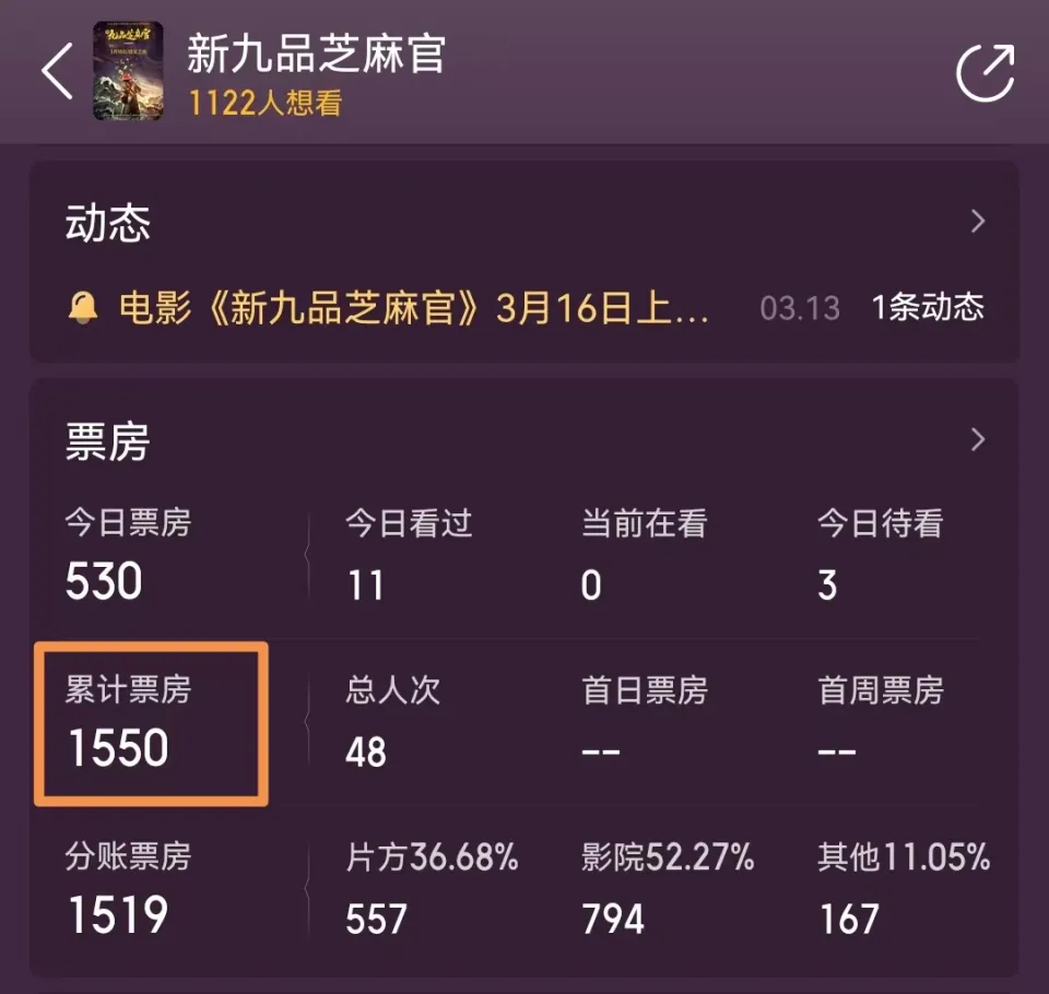 1994年,王晶执导、周星驰吴孟达主演的《九品芝麻官》问世,口碑从8.1分一起飙升至8.7分,并冲进了豆瓣top前250名,成为一部经典影片。 时隔30载,2024年,彭禺厶领衔主演的《九品芝麻官》是准备向致敬经典,还是来毁经典的呢? 周星驰,作为中国闻名笑剧演员,曾用浩繁经典作品征服了全部影迷,其开创的无厘头笑剧片,至今仍被广为歌颂,留下了许多影史佳作。 在谁人期间,所产出的特定影片,整整影响了几代人,如《谎话西游》《功夫》《唐伯虎点秋香》《逃学威龙》《食神》等。 经典永世是经典,不是爱,不是怀旧,对于经典影视作品,假如想要去翻拍,肯定要想办法做得更好,要否则千万别碰。 之前周星驰请王宝强翻拍自己的经典影戏《笑剧之王》,都遭遇了口碑票房双扑街,如今,又来一位明星,也想以身试险。 这便是《新九品芝麻官》,由彭禺厶领衔主演。此片啡哥已观影,本文将从影戏票房,口碑质量,等各个方面带您来相识一下这部影片。 一、票房。 春节档落下帷幕之后,通例档期体现不佳,如今除了《周处除三害》可以大概统领当地票房之外,缺少一部实打实的作品来引领市场。 3月16日周六票房陈诉,大盘共计轰下1.6亿,环比周五大涨了60%,前三甲分别为《周处除三害》《沙丘2》和《功夫熊猫4》。 本周新片体现均不尽人意,榜单排名中只有三部冲进了前十强。 刘德华两部新片体现不佳,主打春节档的《红毯老师》,由于抢不到排片,在上映9天之后,公布撤出,后又重新定档3月15日。 由于团体影片偏文艺,加上口碑也着实不敷出彩,这次依然没能得到院线司理的青睐,周六单日票房仅收215万,位居第九,总票房8873万,仍处于扑街状态。 别的一部是剧情片《存亡赛车》,首映开画只拿到29.4万票房,未能冲进榜单前十,同为台湾影片,《周处除三害》大爆了十几天,而此片却以昏暗收场。 该片主创导演编剧为柯受良的两个儿子柯有伦和柯有谦,刘德华客串此片缘故原由,大概是为了还柯受良的人情,票房不佳与他关系不大。 排名第四的是,惠英红和刘浩存主演的《光辉光耀的她》,上映第二天斩获2223万,总票房3900万,猜测票房也就委曲破亿。 该片和《热辣滚烫》一样,属于翻拍国外片,《光辉光耀的她》改编自韩国高分家庭片《季春奶奶》,陈诉了奶奶和十二年前不测走失孙女的故事。 夺得季军的是动画影戏《功夫熊猫4》,影片定档于3月22日在当地上映,本周六和周日开启大规模点映运动,以7%的排片,揽下6316万票房,上座率高达15.8%,体现尚可。 别的尚有三部新片未能进入前十,分别是小凉山扶教影片《阿莫阿依》、首部太空实拍影片《挑衅》和碰瓷周星驰的《新九品芝麻官》。 此中,《新九品芝麻官》单日票房仅收530元,观影人次14人,之前预售票房为37元,仅一人购票,首映累计总票房仅1550元。 毫无疑问,这点收入对于院线影戏来说,铁定扑街了,但此片还接纳了同步流媒体平台发行模式,筹划靠蹭周星驰强盛的招呼力,吸引观众来线上付费点播。 《新九品芝麻官》乐成引起我的留意,由于当地院线没有排片,没办法,只能在网络上面欣赏完毕。 那么此片口碑质量到底怎样呢? 二、质量。 笔者啡哥观影竣事,整个人都欠好了,只能给出八个字:一言难尽,自取其辱! 影片翻拍自1994年周星驰经典影戏《九品芝麻官》,主创导演为朱凌锋和贾子,其朱凌锋的作品多数为网络影戏,如《蜀山降魔传》《射雕好汉传之降龙十八掌》等。 代表作口碑最好的是和包贝尔互助执导的《欢乐密探》,大概有贾玲的缘故,豆瓣评分6.2分刚刚及格。 《新九品芝麻官》卡司阵容有彭禺厶、林妍柔、刘子豪、魏璐、黄一山、苑琼丹等,彭禺厶在影片中扮演包龙星一角,就是之前周星驰演的谁人脚色。 剧情概要如下: 包龙星、方唐镜、庞晓柔三人两小无猜,常威与庞晓柔有婚约在先,包龙星假扮上仙抢亲,并成人之美,让庞晓柔嫁给了孙秀才。 一年后,考取功名的孙秀才和夫人庞晓柔衣锦回籍,常威挟恨在心,致孙秀才一家八口命丧鬼域,由于人证物证应有尽有,包龙星很快定了常威一个秋后问斩。 没想到,常威大有来头,在都城中也有他的被页粳一日之后,案情发生了翻天覆地的厘革,包龙星随即打入大牢,听候发落。 此时,包龙星的父亲乔装妆扮,来了一个偷梁换柱,逃出缧绁的包龙星匆忙之际躲进一个箱子里,就如许,他跟着玩戏法的兄妹来到都城孟春楼。 末了,他在这里不测结识到高人,并获八府巡抚一职,荣归故里再审孙宅一案…… 影片团体架构和周星驰版的《九品芝麻官》同出一辙,但在剧情上面又做了稍加改动,人物关系也做了一些更换。 最让人辣眼睛的是,原版中徐锦江扮演的雷豹,换成了这位衣衫富丽的女演员,是为了让观众一饱眼福吗? 叨教,清朝穿成如许,岂非全体主创都没瞥见吗? 没了常威打来福,没了如花,没了包龙星的打骂神功,就算请来了石班瑜的配音,就算苑琼丹和黄一山再次出山,就算全片用力模拟无厘头,也没办法救济这是一部烂片的究竟。 作为笑剧片,不停到第39分钟,才出现一个让我笑作声的笑点,这种翻拍无疑非常失败,可以说,看这部影戏,还不如再看一次周星驰版的《九品芝麻官》。 用这两位观众的话来说:“有须要重拍吗?自取其辱!”“为啥要翻拍,太烂了,毁我星爷影戏!” 个人评两颗星,4.0分,啡哥为各人排雷,千万别浪费时间了。 从以上票房和口碑来看,《新九品芝麻官》已全面扑
