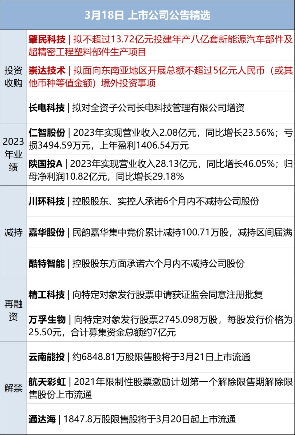 每经编辑:陈鹏程,袁东 NO.1中办、国办:关于增强生态环境分区管控的意见 中共中心办公厅、国务院办公厅发布关于增强生态环境分区管控的意见,此中提到,到2025年,生态环境分区管控制度根本创建,全域覆盖、精准科学的生态环境分区管控体系开端形成。到2035年,体系健全、机制顺畅、运行高效的生态环境分区管控制度全面创建,为生态环境根本好转、漂亮中国目标根本实现提供有力支持。 NO.2邯郸肥乡转达月朔门生王某某被杀害 2024年3月10日,河北省邯郸市肥乡区月朔门生王某某被杀害。案件发生后,肥乡区公安构造立即开展侦破工作。3月11日,涉案犯罪猜疑人被全部抓获,现已依法接纳刑事欺压步调。司法构造将对犯恶举动依法予以惩处。案件发生以来,干系部分尽力做好受害人眷属安抚平和后工作,各方面工作正有序举行。(央视消息) NO.3突发!金价下跌!比特币闪崩! 据央视财经,最新公布的CPI与PPI等数据体现,美国通胀压力仍在升温,这使市场镌汰了对美联储6月之前降息的押注。美元指数上涨以及关键美债收益率反弹至两周来的高位,令黄金承压。克制收盘,纽约商品生意业务所4月黄金期价收于每盎司2161.5美元,跌幅为0.28%。 北京时间3月17日,假造货币市场突然闪崩,比特币代价一度跌破65000美元/枚,日内最大跌幅超6%;以太坊代价日本一度暴跌9.77%。据CoinGlass数据体现,迩来24个小时内,假造货币市场共有161,273人被爆仓,爆仓总金额达5.2亿美元(约合人民币37.44亿元)。 NO.4云南临沧临翔区山火致3人殒命1人受伤 据云南省临沧市临翔区人民政府消息办公室转达,2024年3月16日18时10分许,临沧市临翔区圈内乡斗阁村发生一起丛林火灾,过火面积约5.33公顷。3月16日23时许,现场明火毁灭。火灾扑救过程中,3名扑火职员捐躯,1名受伤,现在正在担当治疗。当前临翔区正细密监控火场防止复燃,起火缘故起因、财产丧失等环境正在观察核实中。(央视消息) NO.5大娘出摊卖淀粉肠2小时无人问津 3月15日,央广网曝光了淀粉肠用鸡骨泥取代鸡肉、以次充好、脂肪含量越来越高、无专门国标等乱象。17日,“老人出摊卖淀粉肠无人问津”话题冲上热搜。据潇湘晨报17日报道,3月16日,河南三门峡,“淀粉肠塌房”的第二天,有大娘出摊卖淀粉肠,但2小时已以后仍无人问津,末了本身冷静把淀粉肠吃了。 NO.6境外机构一连第六个月增持境内人民币债券 债券通公司日前发布的运行陈诉体现,本年2月,债券通北向通成交6775亿元人民币,月度日均成交376亿元人民币。此中,国债生意业务最为活泼,占月度生意业务量的64%。别的,境外机构已一连六个月增持人民币债券。数据体现,克制2月末,境外机构持有银行间市场债券3.95万亿元,环比增长约800亿元。这是自2023年9月份以来,境外机构一连第六个月增持境内人民币债券。(上证报) NO.7“注销式”回苟嗝椿成风 规模远超客岁整年 进入2024年以来,以股份注销为目标的回购方案在A股市场蔚然成风。开年至今仅仅2个半月,筹划实行注销回购的上市公司数量及回购金额已经大幅高出2023年整年。2024年至今仅两个半月,累计已有57家上市公司新增披露注销式回购筹划,另有30家上市公司将前期披露的回购股份用途变动为减资注销,两类上市公司合计共87家。87家上市公司推行注销式回购,从上市公司数量上看已高出2023年整年的55家;筹划回购注销金额合计达227亿元,也大幅高于2023年整年的累计金额143亿元。(证券时报·e公司) NO.8警方转达湖南常宁中门生被追打事故 据湖南常宁市公安局转达:2024年3月16日(周六)17时40分,接群众报警称湘南实行中学校门前发生打斗事故。公安构造灵敏出警赶赴现场处置惩罚。经查,在校大门生洪某旺(男,22岁)、马某超(男,22岁)等7人于3月16日下战书来到湘南实行中学举行招生宣传,其间在校门外与该校门生张某(男,15岁)因言语琐事发生辩说。之后洪某旺、马某超等人持细铁棍冲进学校对张某等人举行追打,导致张某受稍微伤。现在,公安构造已将洪某旺、马某超等7名涉案职员全部抓获归案。案件正在进一步侦办中。(央视消息) NO.9西安夫君微信买彩票中1001万大奖案一审宣判 西安市民姚老师通过微信转款给彩票店老板买彩票,没想到彩票店老板发来的彩票,居然中了1001万大奖。随后彩票店老板声称中奖彩票发错了,各方因一张1001万元的中奖体育彩票归属起了辩说。末了,竟然是彩票店老板的表哥去领了奖。本年3月15日,这张万万中奖彩票奖金归属权,终于有了一审讯断:领奖的彩票店老板表哥,被判归还全部奖金并付出利钱给购彩者姚老师。(上游消息) NO.10国际消息 马克龙最新表态:法国能做到! 参考消息援引法新社3月16日报道,法国总统马克龙在《巴黎人报》16日晚间发表的采访中重申,西方在乌克兰的地面办法“在某个时间”大概是须要的。“大概在某一时间——我不盼望如许做,也不会自动如许做——我们必须开展地面办法,不管是何种办法,来对抗俄罗斯部队。”他在15日从柏林返国途中担当的这次采访中说道。“法国的上风在于我们可以或许做到这一点。”他增补道。 美英对也门荷台达省多地发动空袭 据总台报道员消息,当地时间3月17日破晓至上午,美英部队对也门荷台达省多个地区举行了空袭。胡塞武装也确认遭到空袭。(央视消息) 俄总统推选选票已统计60.01% 普京得票率为87.26% 俄罗斯中心推选委员会当地时间17日晚
