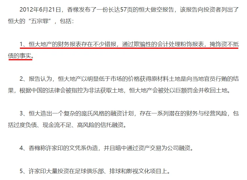 历时2年多,恒大的真面目逐步袒露来了。 昨天晚上,证监会发布公告,恒大地产存在严峻财政造假,在2019年和2020年一共虚增收入5641亿元,虚增利润920亿元。别的,还存在诓骗发行。 “本领特别恶劣,情节特别严峻”,证监会用了这12个字来定性,看得出来也黑白常震惊啊。云云大的造假金额,创下了汗青记载,算得上是财政造假第一案! 造假这么严峻,该怎么处罚呢?证监会也公布了,恒大罚41.75亿元,许家印罚4700万元,夏海钧罚1500万元,这两人还被采取终身证券市场禁入步伐,别的几个高管也罚了一点钱。 许家印眷属分红高出了500亿,听说大部门转移到了境外。夏海钧在恒大通过工资、分红、股票套现,至少拿走了15亿元。这么对比一下,这点罚款足以让他们去冒险。 我们再回看一下证监会的公告,这内里有一个信息,那就是恒大建立20多年,财政造假就会合在2019年和2020年,别的时间都没题目。 2019年虚增收入2140亿元,占据了当期业务收入的50.14%。也就是说2019年恒大实际收入在2000亿元左右,而2018年恒大收入为4662亿元。 作为一家高速发展的房地产公司,收入忽然就腰斩了,不到上一年的一半。你以为这种情况正常吗?除非是这家公司遭遇了什么庞大变故,但也没听说恒大有发生什么。 实际上,恒大的题目,早有先兆。早在2012年,美国空头机构香椽发布了一份长达57页的恒大做空陈诉,向投资者列出了恒大的“五宗罪”。 第一宗罪就是恒大地产的财政报表存在不少错报,通过诱骗性的管帐处理惩罚粉饰报表,粉饰资不抵债的毕竟。香橼以为恒大当时拥有高达710亿元的资金须要在账目举行减值。 别的,香橼还列出了恒大的七大危急,包罗现金流入急剧下滑、高息债务、连续的预售量下滑等等。 也就是说恒大在谁人时间,就有大概存在财政造假,实际上大概已经陷入了危急。但当时恒局势头正盛,直接把这个空头打爆了,香橼首创人禁入香港市场,还要负担巨额罚款。 2016年,天下三大评级机构穆迪公司,将恒大团体的主体名誉级别从“B1”下调至“B2”,评级猜测为负面。当年恒大的贩卖额位居第一,是第一大房企,更是没人信任恒大有题目。 故意思的是2017年和2018年,碧桂园每年条约贩卖金额都高出恒大,但恒大终极的业务收入和净利润都远高于碧桂园,这两年还成为房企“利润王”。 卖房收入比别人少,业务收入和净利润却大幅高于别人,恒大是有什么邪术吗?相比恒大,碧桂园的谋划本事一点也不逊色吧?为什么赢利本事还不如人家。更况且恒大做了多少亏本交易,卖水就亏了40亿。 固然,我们要信任证监会的观察效果,毕竟造假时间越长,某些部门的失职就越严峻。会合在两年,数额越大,越能让我们看到许家印的罪过有多大。 现在,证监会的处罚只是从行政上,从司法上,财政造假和诓骗发行对应的罪名是违规披露、不披露告急信息罪和诓骗发行证券罪,许家印肯定逃不掉。 天下500强企业,中国首富,原来都是用虚伪数据整出来的,这放在环球,也是第一例吧。云云大的金额,云云多的受害者,说许家印是世纪诈骗犯,一点都不为过。 恒大负债2万多亿,许家印统共拿走了500多亿,那别的的钱都去那边了?值得深思。 |