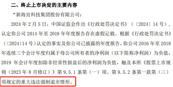 【文/观察者网 邹煦晨 编辑/吕栋】 3月19日收盘后,*ST博天公告称,因触发巨大违法欺压退市环境,上交所决定制止*ST博天股票上市。*ST博天将于3月27日起进入退市整理期,预计末了交易业务日期为4月18日。公司股票在退市整理期届满后的5个交易业务日内由上交所予以摘牌,公司股票制止上市。 制止3月19日中午,东方产业体现,本年已经有5家上市公司被欺压退市,它们分别是ST鸿达、*ST爱迪、*ST泛海、*ST柏龙、*ST华仪,数目为客岁同期的5倍,都属于“交易业务类欺压退市”。 别的,*ST新海也于3月18日收到交易业务所下发的制止上市决定,来由是巨大违法。除这些企业外,ST星源、ST贵人等公司已收到交易业务所下发的拟制止公司股票上市的事先告知书,缘故原由也是“交易业务类欺压退市”。 连续财务造假被欺压退市 *ST博天紧张从事水生态环境综合服务,涉及业水体系、城镇水资源、膜产物与资源化、泥土与地下水修复等范畴。 制止上市择要,数据泉源:*ST博天公告 本年2月,*ST博天收到上交所下发的拟制止公司股票上市的事先告知书。 告知书体现,根据中国证监会行政处罚决定认定的究竟,*ST博天披露的2017年至2021年年度陈诉存在虚伪纪录。*ST博天虚伪纪录的信息披露违法举动连续时间长,虚伪纪录金额大、占比高,严肃陵犯证券市场秩序。*ST博天披露的2020年及2021年资产负债表连续2年均存在虚伪纪录,虚伪纪录金额合计到达5亿元以上,且凌驾该2年披露的年度期末净资产合计金额的50%。上述环境已触及上市规则的巨大违法欺压退市环境,将被实验巨大违法欺压退市。上交所将对*ST博天股票作出制止上市的决定。如*ST博天申请听证,应当在收到关照后5个交易业务日内,向上交所提交载明申请听证事项及辩论来由的书面听证申请。 告知书提及的行政处罚为,北京证监局本年2月作出的。北京证监局官网体现,经查明,*ST博天虚增业务收入和利润。其紧张方式包罗:一是未实时对已制止的装备贩卖业务举行管帐处置惩罚,并通过签订虚伪委托付款协议的方式抵消虚增收入引起的往来款子,此类环境涉及合肥清溪项目;二是未实时对已竣工结算的项目举行管帐处置惩罚,并通过签订虚伪委托付款协议的方式抵消虚增收入引起的往来款子,此类环境涉及兖矿榆林100万吨/年煤间接液化树模项目污水处置惩罚厂及回用水处置惩罚工程总承包项目等 EPC 项目;三是使用无贸易实质的验工计价凭据确认工程进度,并通过签订虚伪债权债务转让协议、委托付款协议的方式,掩蔽虚增收入的环境,此类环境涉及雷州市村级生存污水处置惩罚PPP项目等PPP项目。 此中2017年,*ST博天虚增业务收入3.47亿元,占当期披露业务收入的 11.40%;综合思量相干减值的影响,虚增利润1.18亿元,占当期披露利润总额的70.68%;2018年,*ST博天虚增业务收入10.98亿元,占当期披露业务收入的25.33%;综合思量相干减值的影响,虚增利润5.01亿元,占当期披露利润总额的223.80%。 *ST新海则是在3月18日晚间公告称,公司收到厚交所下发的制止公司股票上市的决定。公司股票将于3月26日起进入退市整理期,预计末了交易业务日期为4月17日。公司股票于退市整理期届满的次一交易业务日摘牌。 制止上市择要,数据泉源:*ST新海公告 资料体现,*ST新海于2006年11月上市,其主业务务为通讯产物的研发、生产与贩卖业务,IDC业务,锂电质料、锂电池组产物的研发、生产与贩卖业务。公司紧张产物包罗IDC数据中心产物和锂电质料产物。 *ST新海3月18日晚间公告体现,证监会本年2月公布的《行政处罚决定书》认定,*ST新海2014年至2019年年度陈诉存在虚伪纪录。根据《行政处罚决定书》认定的究竟及*ST新海已披露的年度陈诉,*ST新海2016年至2018年归母净利润均为负值,2019年扣非后归母净利润也为负值,触及厚交所《股票上市规则》的巨大违法欺压退市环境。 制止上市择要,数据泉源:*ST新海公告 证监会官网体现,*ST新海通过加入专网通讯虚伪自循环业务虚增贩卖收入、利润,导致2014年至2019年年度陈诉及2019年半年度陈诉虚伪纪录。 详细来看,*ST新海董事长张亦斌在2014年3月与隋某力、郑某彬、吴某森、聂某龙、吴某、胡某同等人入股建立苏州新海宜信息科技有限公司、苏州新海宜电子技能有限公司开展专网通讯业务。专网通讯产物的虚伪生产加工及购销,上卑鄙、产物确定、条约签订、资金付出、虚伪实物流转都由隋某力操控,相干业务构成虚伪贩卖循环。经查明,2014年至2019年上半年,*ST新海归并报表层面虚增贩卖收入共计37.41亿元,虚增贩卖资本共计32.18亿元,虚增利润总额共计5.63亿元。而且*ST新海管帐不对更正处置惩罚错误、审计调解错误、确认预计负债不完备,导致2019年年度陈诉存在虚伪纪录。 证监会决定,对*ST新海责令改正,给予告诫,并处以400万元罚款;对张亦斌给予告诫,并处以200万元罚款,10年证券市场禁入;对别的相干责任人分别给予告诫并罚款。 东方产业体现,制止2024年3月19日,*ST新海的股价为0.78元/股,仅相称于2015年6月时15.86元/股高点的4.92%,已经跌去了95.08%。 某着名财经人士对观察者网体现,优胜劣汰可以让资金更好的流入优质或回报性强的公司,从而实现上市公司发展和股民得到回报的双赢局面。 *ST新海股价择要,数据泉源:东方产业 “严把入口,流通出口” 除巨大违法欺压退市外,证监会官网体现,欺压退市还包罗交易业务类