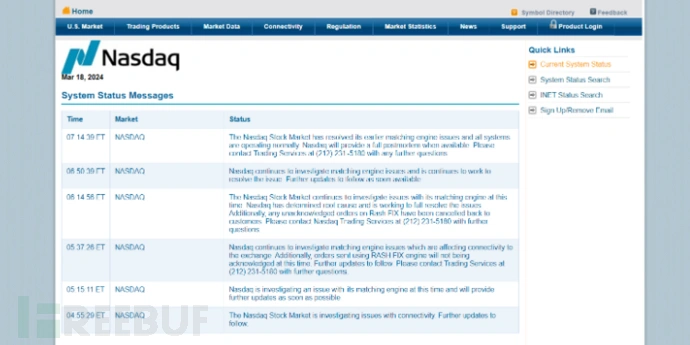 美国东部时间周一破晓,纳斯达克股票生意业务市场突然发生一次技能故障,导致周一开盘前制止了生意业务所的全部生意业务订单。很快,纳斯达克方面就办理了故障标题。 随后,纳斯达克方面又发布了一则公告声称,其内部团队已经办理了破晓的技能故障标题,全部体系现在都可以正常运行,纳斯达克后续将会提供完备的事故陈诉。 纳斯达克方面承认,此次技能故障影响到了纳斯达克的 "RASH FIX "金融信息消息传输协议体系,"RASH FIX 上任何未确认的订单都已取消,并反馈给客户。( "RASH FIX "体系用于传输生意业务所的及时运动信息) 从生意业务数据来看,纽约时间破晓 4:09 左右开始,纳斯达克举世市场就没有了记载生意业务。之后,很快就传出纳斯达克出现了技能故障。固然纳斯达克很快就办理了事故,但并没有透露标题的严峻水平以及影响范围等详细详情。 值得一提的是,此次事故是近几个月来纳斯达克第二次出现的技能故障。2023 年 12 月,纳斯达克出现了一个体系错误,影响了数千份股票订单,导致一些订单被取消,并提交了错误的整理信息。(据知恋人士形貌,纳斯达克生意业务所运营商观察一个导致禁绝确和延误的订单输入标题,纳斯达克处理惩罚所谓金融信息互换或“FIX”消息的电子通讯渠道受到了影响) 关于纳斯达克纳斯达克(NASDAQ),全称为美国天下证券生意业务商协会自动报价表(National Association of Securities Dealers Automated Quotations),是美国的一个电子证券生意业务机构,是由纳斯达克股票市场公司所拥有与操纵的,建立于1971年,迄今已成为天下最大的股票市场之一。 据悉,包罗 iPhone 制造商苹果、电动汽车制造商特斯拉和人工智能半导体巨头英伟达在内的数千只股票在纳斯达克上市,纳斯达克的一举一动牵动着整个金融界的”命根子“,对天下经济走向产生深远影响。因此,纳斯达克技能故障引起了很多着名媒体的关注。 针对本次技能故障事故,路透社批评称,纳斯达克生意业务所的技能故障大概会扰乱市场,打击生意业务员的信心,并引起美国证券生意业务委员会的查察。 参考文章: https://cybernews.com/news/nasdaq-down-technical-glitch-halts-trading/ |