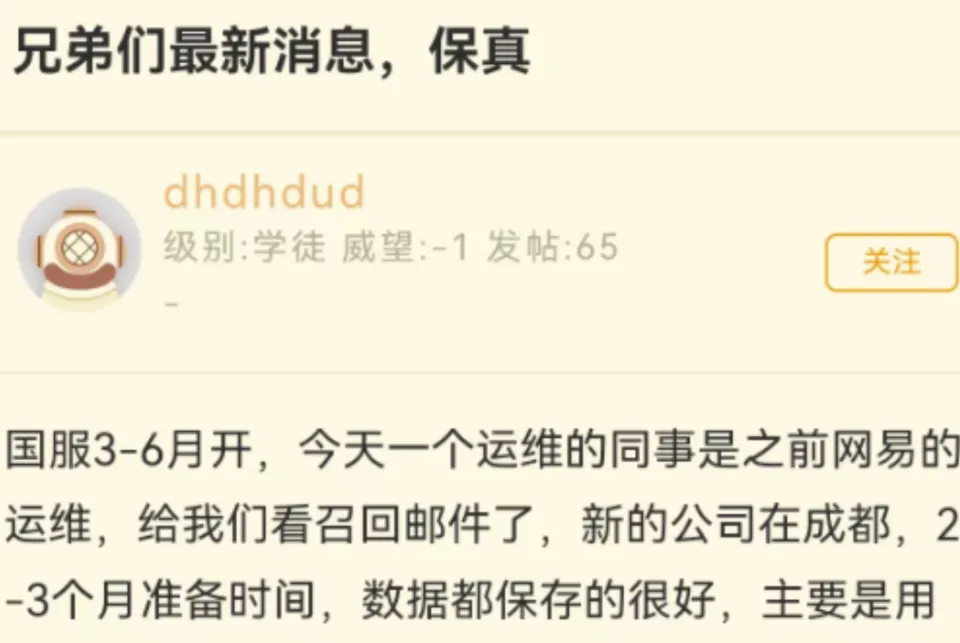 只要魔兽天下国服一天没有回归,暴雪游戏国服一天没有官宣,网易一天没有签约,那么谎话和一些所谓的内部人士就会不停在。而且娘舅党们仍旧乐此不疲地在爆料中,每天都有无数个关于魔兽天下国服的爆料信息。前段时间,农工不是先容了一个被禁言的娘舅党吗?而近来该爆料用户已经解禁了。不外,该用户被禁言之后又出现了不少爆料党。 不知道各人还记得前段时间论坛中突然出现的一个人说现在不少人已经收到了召回邮件吗?而且该同事还是网易运维的。而且根据他爆料的内容来看,国服将在三到六月份开服。不外,按照现在的进度来看,确实国服会在三到六月份之间开服。而且该玩家还表现说数据生存很好,不外导出成电子骨灰盒的数据出现了一点标题。固然,该玩家发布该内容后就遭遇到了禁言。 而不久后又来了一个爆料职员开启了爆料,不外这个人信托各人很认识,这个人便是某论坛的爆料第一人最爱小螃蟹,根据小螃蟹的内容来看前段时间也被封号了不外具体他由于什么被封号就不得而知了,不外小螃蟹的爆料确实有肯定的正确性,由于在暴雪停服这么久时间以来只有小螃蟹刚强信托暴雪游戏不会无缝衔接而且末了还是会跟网易举行续约。 不外一解禁就跟人举行干架起来了,小螃蟹表现说会在四月15日之前会有官宣,然后别的一个人则说没有官宣,以是两个人就干架了起来直接表现如果在这个时间点之前官宣了他就给小螃蟹一张月卡,如果没有官宣那么小螃蟹就给他一张月卡,不外从小螃蟹的言论来看小螃蟹对于4月15日之前官宣回归这件事故很有信心。 然后就又人开始阴阳怪气说螃蟹歌重出江湖,这次这么自大,一开始各人以为螃蟹哥大概会怂一点,但是螃蟹哥直接在品评区中刚了起来直接表现说我哪次不自大了?他的爆料内容都没有被证明是假的,乃至很多次爆料在末了阴差阳错成真了,以是不知道螃蟹哥是有内幕消息还是单纯依赖现有的信息源举行推测和推理出来,不外农工仍旧比力渴望4月15日之前可以官宣。 不外近期又有一个谈天截图传出来说国服最快会在7-8月开服,而且6.18会有巨大消息公布,而且还表现这个消息是现实中的一个好大哥跟他说的,对于这个消息农工表现大概率假的,尤其是只是一个谈天记录就想证明说自己知道内幕消息,这点让农工有点绷不住了,其他东西难搞定,但是一个谈天记录是最好搞定的东西,乃至只要自己有小号即可,以是这个大概率是假的。 不外近来有一个新变革就是网易有爱插件出现了巨大更新,尤其是网易有爱插件的官网出现了改版,还开启了新版试用在网易大神中还发布了创作者鼓励操持,从这个动作来看魔兽天下国服确实要回归了而且这次的新版本会比旧版本多了很多功能,在游戏中会变得更加便捷,如果魔兽天下国服不回归的话网易有爱举行大版本更新的大概性并不大,以是推测大概率魔兽天下国服要官宣了。 因此,根据近来的各种消息,魔兽天下国服很有大概会在近期官宣。据雪暴君透露,他们大概会在旧金山签约,但让人有些狐疑的是,现在游戏展即将竣事,却还没有传出任何消息。然而,如果螃蟹哥的说法属实,那么近来应该会有签约信息的传出。别的,由于网易插件已经更新,很有大概已经谈妥,只等官宣了。固然,这些都只是推测而已。 |