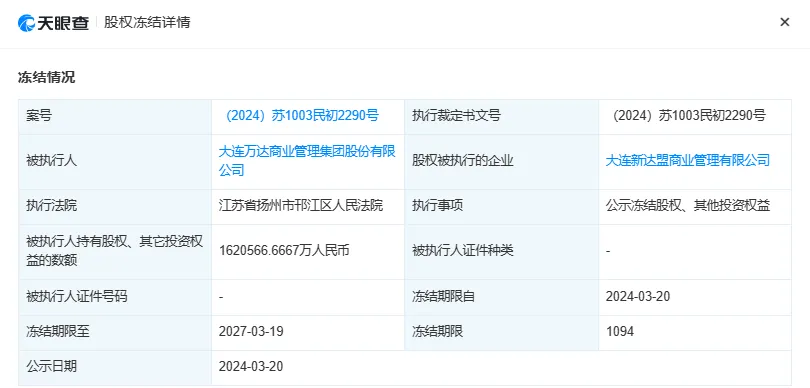 中国基金报 晨曦 大连万达商管,又有新环境! 近期,天眼查信息表现,大连万达商业管理团体股份有限公司所持有的大连新达盟商业管理有限公司约162.06亿元股权被冻结。 在此之前,珠海万达商管于本月新增两则股权冻结信息,冻结股权数额约为50.72亿元,被实验人同样为大连万达商管。连续不停的股权冻结,万达迩来的日子“有点难”。 来看详情—— 大连万达商管旗下 超162亿元股权遭冻结 据天眼查信息表现,大连万达商业管理团体股份有限公司所持有的大连新达盟商业管理有限公司约162.06亿元股权被冻结,实验法院为江苏省扬州市邗江区人民法院,冻结限期自2024年3月20日至2027年3月19日。 进一步探究可发现,该次股权冻结的干系案件为一起金融乞贷条约纠纷。此中,原告为中国民生银行扬州分行,四名被告分别为大连万达商业管理团体股份有限公司、扬州万达商业广场有限公司、泰州海陵万达广场投资有限公司、南京万达茂投资有限公司。该案将于4月18日上午开庭审理。 天眼查信息表现,大连新达盟商业管理有限公司创建于本年1月,法定代表人为肖广瑞,注册资源约162.07亿元,策划范围含商业综合体管理服务、供应链管理服务、非居住房地产租赁、商业经纪、物联网技能服务、安全技能防范体系计划施工服务等。 股东信息表现,大连新达盟商业管理有限公司由大连万达商业管理团体股份有限公司及旗下大连万裕企业管理有限公司共同持股,此中大连万达商业管理团体股份有限公司认缴出资额为约162亿人民币。 除了新创建的公司遭到股权冻结外,四度打击港股IPO未果的珠海万达商管,也反复遭遇司法冻结,干系消息乃至冲上微博热搜榜。 天眼查信息表现,3月以来,珠海万达商管已有2份股权冻结信息,冻结金额均为50.72亿元,实验法院分别为广东省珠海市中院、上海市一中院。冻结限期分别自2024年3月18日起、2024年3月4日起。从实验裁定书透露的消息来看,干系案件的范例均为“非诉财产保全检察”。 别的,此前山东省德州市中院还曾冻结珠海万达商管1亿元股权,冻结限期自2023年7月5日起。3份股权冻结信息,被实验人均为大连万达商管。 万达连续“瘦身” 从大连万达商管遭遇“围追堵截”式股权冻结不丢脸出,万达迩来的日子“有点难”。 由于珠海万达商管打击港股IPO迟迟未能成行,为缓解对赌压力,王健林也开启了“卖卖卖”的模式。2023年12月12日,大连万达商管团体与太盟投资团体共同公布签订新投资协议。协议之后,大连万达商管于珠海万达商管的持股比例降至40%。 别的,2023年7月下旬、12月上旬,万达接连向上海儒意转让万达投资49%及51%股权。干系转让过后,万达影戏的控制权也随之易主。 进入2024年,万达接连出售万达广场。包罗本月完成工商变动的天津蓟州万达广场在内,据不完全统计,万达已累计卖出14座万达广场。 近期,有着名体育媒体报道称,国际足联(FIFA)如今正与万达团体陷入纠纷,由于该公司未能按时付出与国际足联条约中的预定款子,FIFA已克制激活万达团体的赞助权益。曾经豪掷8.5亿美元拿下天下杯最高一级相助同伴名额的万达,或将就此失去在下一届天下杯中露脸的时机。 固然,万达的业务也并非全线缩水。公开信息表现,3月13日,大连万岗住房租赁有限公司正式创建,法定代表人为吴华,注册资源为100万元,策划范围为住房租赁。该住房租赁公司由大连万达商业管理团体股份有限公司持股100%,万达的视野大概从商业地产转至住房租赁市场,抢占新的市场赛道。 编辑:舰长 版权声明 《中国基金报》对本平台所刊载的原创内容享有著作权,未经授权克制转载,否则将追究法律责任。 |