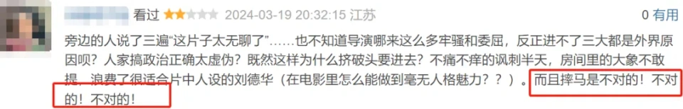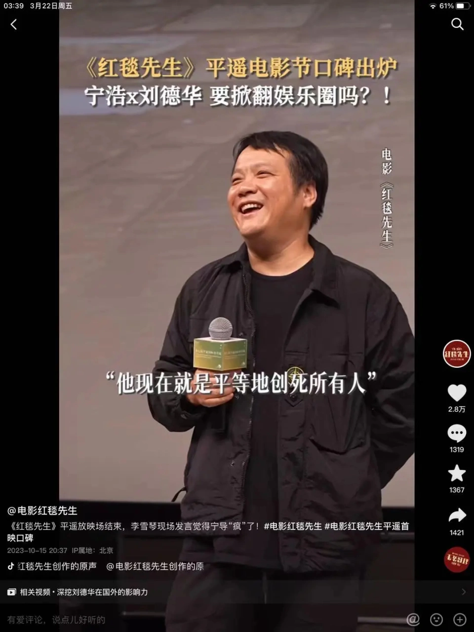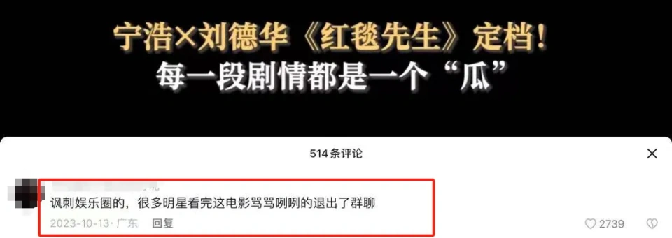 宁浩大概没有想到终极会是如许的结果:当他向这个天下投下一个问号,却终极,无人答复。 是的,《红毯老师》又一次跟观众沟通失败了。 票房上,撤档再次上映,首日票房没凌驾250万,首日人次6.36万,累计票房至今仍未破亿。 乐意进影院跟宁浩、刘德华沟通、交换的人并不多。 热度上,“调档、撤档”仍然是最大话题,关于影戏表达了什么,有的观众直接表现“不在乎”。 乐意就影戏创作跟导演聊聊的观众,也不多了。 就像是一代巨星,忽然被大众扬弃了。 下一个冯小刚? 不。 回过头来再看《红毯老师》,Sir会以为很痛惜,究竟这是本年春节档里难过的拥有作者表达的影戏,这让人有些意难平。 但Sir更多的是,狐疑。 作为观众最认识的导演之一,宁浩这次为什么跟各人沟通失败? 本日就来聊聊。 是什么拦住了宁浩跟观众的沟通。 01 还是要聊一下影戏,在我们讨论宁浩之前,必要弄清晰的一点是: 他这次到底想跟各人说什么? 如许的题目对许多人来说似乎有些“显而易见”了,他们会说,不就是辣评娱乐圈,解构“天王”光环嘛。 但真的云云吗? 宁浩说这是他构思了许多年的影戏,乃至从《疯狂的外星人》时就开始筹办了,终极,只是拍一部娱乐笑剧? 固然不是。 这些,只是宁浩的烟雾弹。 宁浩想说的,他早就以“戏中戏”的方式告诉各人了: 影戏里的焦点主线,天王刘伟驰(刘德华 饰)为了得到影帝,去接了一部农村题材的影戏。 导演林浩(宁浩 饰)跟他说,这是一部关于沟通与私见的影戏。 沟通与私见。 宁浩借林浩之口,不动声色地点出《红毯老师》的主题。 整部影戏,更是像宁浩投出一块名叫“沟通”的石头,泛起层层“沟通无效”的荡漾,末了连成了人与人之间互不明确的怪诞实际。 比如说,家庭之间的沟通。 就像刘伟驰每次都会和老婆吵架,一个单方面输出,另一个回避、打马虎眼,终极不欢而散。 大概说,代际之间的沟通。 简单来说,就是老一辈在守旧,新一辈在赶潮,当新与旧相遇,相互之间都不明确对方的做法,相互还带着点儿瞧不上。 666很土,liao liao liao很棒 最紧张的则是圈层之间的沟通。 导演与投资商、大明星与农夫、影戏人与网友,乃至于明星与助理之间都存在着无法消除的无效沟通。 它无差别地扫射着人与人的关系。 就像拍一部影戏,导演想表达“沟通与私见”主题,主演以为“应当讲父爱好一点”,经纪人只顾着满足主演的要求。 而投资人大手一挥: 影戏故事对我来说就是nothing 但仅仅云云吗? 不。 我们可以回过头来再看一遍虐马变乱。 这是影片最大的戏剧辩说。 刘伟驰为了“影戏节必要故事”,以莱昂纳多的《荒野求生》为榜样,不消替人,骑马真摔。 终极导致的状态就是,当事人刘伟驰以为这是“为艺术献身”,网络大众以为这是虐马、失德、劣迹。 投资方撤资,借机自我宣传一波,导演烦恼影戏还能不能拍下去,公关团队只想根据公关计谋平息舆论。 到底有没有虐马?马有没有受到伤害?当事人的真实想法? 无人在意。 哗闹尘上的是跟风玩梗、跟风开嘲。 没有人看到,马在被摔后,得到了妥善的照顾,在大豪宅里悠哉踱步。 是的,宁浩终极想说的,实在是当下的怪诞。 他不明确这个天下怎么变成了如许: 舆论导向可以一天一个样,道德尺度可以随时被击倒,每个人的欲念、感情、视角、态度、长处、代价观存在的差别与抵牾云云不可调和,人与人之间的关系也渐渐变得告急、失语、互不明确。 有解吗? 歉仄,宁浩看似给出了“与本身息争”的答案,但实在他本身也没有什么答案。 他只是抛出疑问。 只是想与这个天下谈谈。 但柿攴斧。 却把本身变成了对着呆板人狂怒咆哮的刘伟驰。 话说得再多。 壹泵η成为投向虚空的一块石头。 02 故意思的是,如许的怪诞不止发生在戏内,乃至发生在戏外。 这让影片产生了一个“完满”的闭环。 仿佛是举动艺术一样平常,向我们展示着,任何人都无法对话任何人的怪诞实际。 一个词:拧巴。 就拿宣发来说,《红毯老师》最早打出的宣传点是什么? 掀翻娱乐圈。 红毯之外,圈内百态。 天王の不可说の机密。 这让大众对《红毯老师》的第一印象是“娱乐圈大尺度”“一起来吃瓜”。 片方并非没有往回拉过。 但在既定的印象内里,人们对“天王刘德华”“娱乐圈”的爱好要远宏大于所谓“沟通”的严肃思索。 就像同样在《红毯老师》的官方抖音下。 刘德华复现《金牌五猛将》耍枪名局面的视频得到300多万点赞,而前一天发布短视频明显更切中影戏内核,点赞量不外1.4万。 类似“既要又要”的拧巴做法还不少。 比如改档。 影片原定于2023年11月上映,可突发奇想,改档进了并不恰当的春节档,这使得影片票房昏暗,上映几天后,又突发奇想地撤档,改到了3月15日。 结果,票房更惨。 为什么会如许? 实在就是创作者、宣发、观众三者并不在一个频率上面。 导演想说的是沟通,为此他一反常态地使用了许多长镜头,让影片更沉静,更舒缓。 宣发想要的是票房,为此他们和影片里的环境一样,到场了大量鬼畜式的短视频营销。 而观众却只是以为,这个“瓜”吃得很闷。 就像许多人看完影戏的反馈: “大过年的,怎么一点都不可笑!” “这就是关于208W的影戏,我一个平常人,无法共情,无法明确。” “一个功成名就的导演,怎么还在怀才不遇发怨言?中年人的自怜!” “摔马就是虐马!虐马就是不对!” “又是一部夫