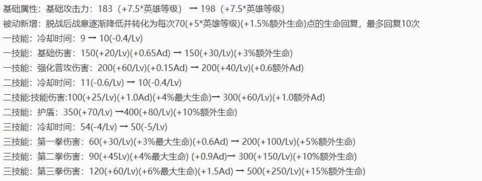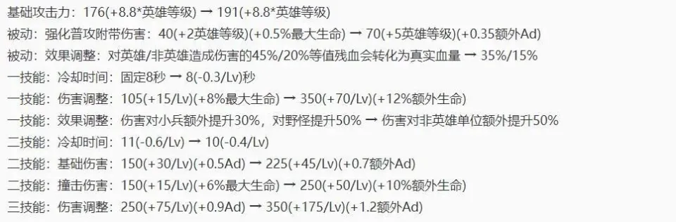 而作为均衡,则把技能的加成方式改为了额外生命,别的,被动的回血比例,也从45%/20%改成35%/15%。
