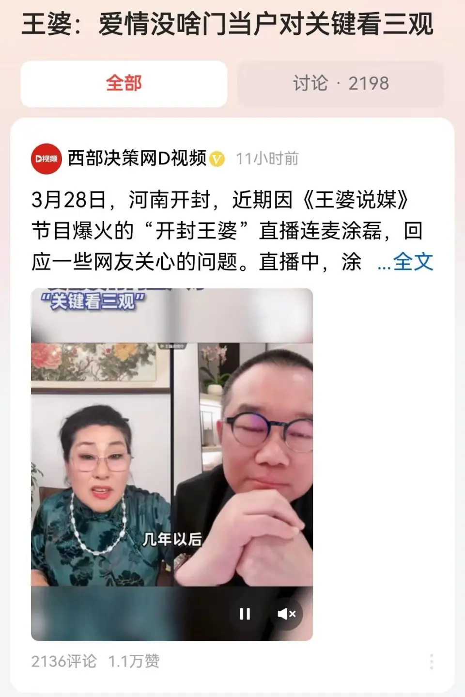 在当下的自媒体期间,确实网红影响力乃至都已经开始逾越了许多明星艺人了,俨然可以或许和内娱的一些大咖举行相提并论了,为此各人可万万别藐视网红的力气啊。 近段时间内,短视频中最为火爆的应该算是开封王婆吧,反正每次王婆开始说媒,那现场甭提有多么的火爆了,险些都是人山人海的状态,而且乃至不止是吸引开封本地只身男女,乃至尚有许多来自故国各地的只身男女来到了现场。 大概是由于王婆说媒太过的火爆了吧,以至于有许多抱着蹭热度的网红去了现场,前段时间不就有一个短视频女up主就去了现场,结果被人给请了下去。 尚有就是本地著名感情主播涂磊老师,估计许多00后对涂磊都不是那么熟悉了吧?照旧轻微的先容下吧! 涂磊是本地男主持人,也是着名的感情导师,曾因担当节目《爱情保卫战》的感情导师而火爆网络,每次节目中涂磊的犀利发言都能引发人们的感情思考,也确实涂磊老师的感情发言非常的值得探寻,反正让涂磊老师斩获了大量的粉丝。 不外痛惜的是比年来涂磊老师也是多次引发了争议,乃至是出现了翻车的迹象。第一次是在2019年的8月,其时涂磊因乘坐飞机脚蹬在了机舱高处,结果是引发了全网的热议; 尚有是在2023年7月,涂磊老师遭遇了一次倒霉变乱,其时有女子网络举报自己遭到涂磊的陵犯,不外究竟证明涂磊老师被诬陷的,不外固然说终极还涂磊老师一个明净了,但是却依然给他造成了很不好的影响。 而这次涂磊居然选择了开封王婆连线了,确实这个但是许多网友非常想要看到的结果,究竟一个是当年非常火的感情导师,别的一个则是近段时间火爆全网的开封王婆,如许的二个人假如连线开麦聊感情,显然会擦出很大的火花来。 照旧来具体看看吧! 其时涂磊和王婆的连麦那是吸引了数十万网友的观看,作为感情导师的涂磊自然黑白常的犀利,在直播中那是一连引出了多个难缠的题目给开封王婆,比如说涂磊问道:你以为爱情是真的要门当户对吗? 实在这个题目无疑黑白常的犀利啊,而开封王婆的复兴也是干净利落,王婆直言: “各人同等,我以为没有啥门当户对的,关键是看三观,只要你们过得幸福就好。” 这个复兴竣事后,涂磊也发表了自己的一个观点,实在就是说自己不这么以为,他以为爱情必要门当户对的,特别是到了后期,会由于各种题目而产生抵牾,从而决裂。 接下来涂磊再度引出了犀利的题目给王婆,但是王婆但是实打实的老江湖,人家实战履历非常的丰富,见地了无数的婚姻题目,对此她丝绝不惧涂磊抛出的题目,而是每次都可以或许犀利的回怼。 那么为何会说这次涂磊老师疑翻车了?实在许多仔细的网友发现这次涂磊老师和王婆连线的时间是开着打赏功能的,反观王婆却恰恰相反,为此许多网友以为涂磊就是来蹭热度,来故意赢利的。 固然了也有许多涂磊老师的粉丝则否则,他们以为涂磊老师的做法没有任何题目,谁说名流就不能开打赏? 各人以为这次涂磊老师是在蹭开封王婆的热度吗? |