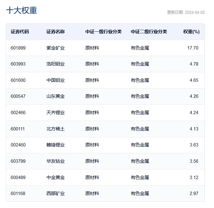 制止2024年4月3日09:59,中证细分有色金属产业主题指数(000811)强势上涨2.24%,身分股白银有色(601212)上涨10.07%,中钨高新(000657)上涨9.82%,四川黄金(001337)上涨6.74%,厦门钨业(600549),盛和资源(600392)等个股跟涨。有色50ETF(159652)上涨1.95%,打击5连涨。最新价报0.94元,盘中成交额已达2568.16万元,暂居可比ETF1/2,换手率7.53%。 拉长时间看,制止2024年4月2日,有色50ETF近1周累计上涨7.46%。规模方面,有色50ETF最新规模达3.38亿元创近半年新高,位居可比基金1/2。 从资金净流入方面来看,有色50ETF近4天得到连续资金净流入,最高单日得到5105.92万元净流入,合计“吸金”6430.87万元,日均净流入达1607.72万元。 消息面上,制止隔夜行情收盘,沪金涨1.29%,盘中创下538.76元/克的记载新高;沪银涨2.58%。COMEX黄金涨1.94%,隔夜盘中创下2301.9美元/盎司的记载新高,4月3日开盘,这一记载在被继续突破。 方正证券指出,美联储本轮加息周期即将竣事,本年有望在符合时点开启降息,同时地区辩说局面告急也将动员黄金避险属性增强,因此看好黄金代价上行;另一方面,当前隔断市场广泛承认的6月FOMC集会降息节点仍有3个月时间,期间诸多经济数据的发布都会影响市场对降息的预期并导致金价出现震荡,因此在金价日线超卖节点增长头寸,有望从降息周期中得到更多超额收益。 德邦证券体现,2024年环球钱币环境由紧向松厘革、国内经济徐徐修复,有色金属板块有望迎来超额收益,经济底部夯实后,与国内经济干系的工业金属代价有望迎来连续上涨行情,铜行业金融属性和工业属性或将迎共振。 从指数层面看,制止3月14日数据,仍以同指数下规模最大的有色50ETF(159652)标的指数(细分有色指数)为例,岂论是本年以来照旧近一年,细分有色指数体现都高居全市场同类有色指数第一。 究其缘故原由,重要是由于有色50ETF(159652)标的指数行业分别方面,金、铜占比力高,这两个细分行业也是涨幅居前的行业,而锂占比相对更低。 作为有色金属龙头股,紫金矿业股价近期创出汗青新高,或意味着黄金和铜等金属有望开启周期上行趋势。 公开资料体现,$紫金矿业(SH601899)$为有色50ETF(169652)第一大重仓股,占比高达17.70%! 看好未来贵金属及大宗工业金属周期回归,同指数下规模最大的有色50ETF(159652)备受关注。数据体现,制止2024年4月2日,中证细分有色金属产业主题指数(000811)前十大权重股分别为紫金矿业(601899)、洛阳钼业(603993)、中国铝业(601600)、天齐锂业(002466)、北方稀土(600111)、山东黄金(600547)、赣锋锂业(002460)、华友钴业(603799)、中金黄金(600489)、西部矿业(601168),前十大权重股合计占比超53%。 有色50ETF(159652),场外联接(A类:019164;C类:019165) |