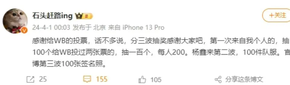 近来关于电竞圈的消息是许多人在讨论的,信赖各人也看到了不少这方面的内容了,这段时间春季赛的季后赛正在举行中,各大战队都想要拿到好结果,角逐很精彩,每场角逐竣事后都会有巨大的节奏,这是很正常的。 但是近来一件事的发生让各人有点摸不着头脑,这件事就是WBG的老板石头又出来搞事了,如今不知道还该不应叫他WBG老板,他之前确实是老板,但是前段时间突然有爆料,说他被开除了,而石头也切身证实这件事。 许多圈内人也证实了这件事,和石头有恩怨的FPX老板更是在直播的时间放上心情包,狠狠的讽刺了一波,看样子应该是被开除了才对,但是近来的一件事却让人发出:岂非石头并没有被开除?的疑问,由于石头又出来发文了。 石头本人发文替WBG感谢粉丝,还给粉丝送队服,他更博感谢粉丝为北京WB投票,而且答应要抽奖回馈粉丝,这一下就让各人以为他没被开除,之前之以是如许回应网友,大概就是故意的,假冒自己开除了。 假如真是如许,那些讽刺他被开除的人就都酿成了小丑,不外也有人以为石头这是在强行蹭热度,一方面是假冒没被开除,另一方面是想用这种方法让别人以为自己很漂亮,就算被开除了,依然很支持WBG战队。 如今各人也很懵,不知道石头这个活动究竟是什么意思,小编也不知道究竟是怎么回事,不外不管是什么情况,石头由于之前跟theshy的节奏,如今大量网友盼望他过得差,只能说他之前的活动已经引起众怒了。 不外话说返来,由于theshy的脱离,WBG战队的气力确实出现了下滑,不外下滑最严肃的照旧他们的热度,热度下滑这么严肃,石头脱不了关系,假如theshy本年能留队,那7月份的石油杯就很有大概被约请,只能说因小失大了,开除他也不为过,对此你们有什么想吐槽的吗? |