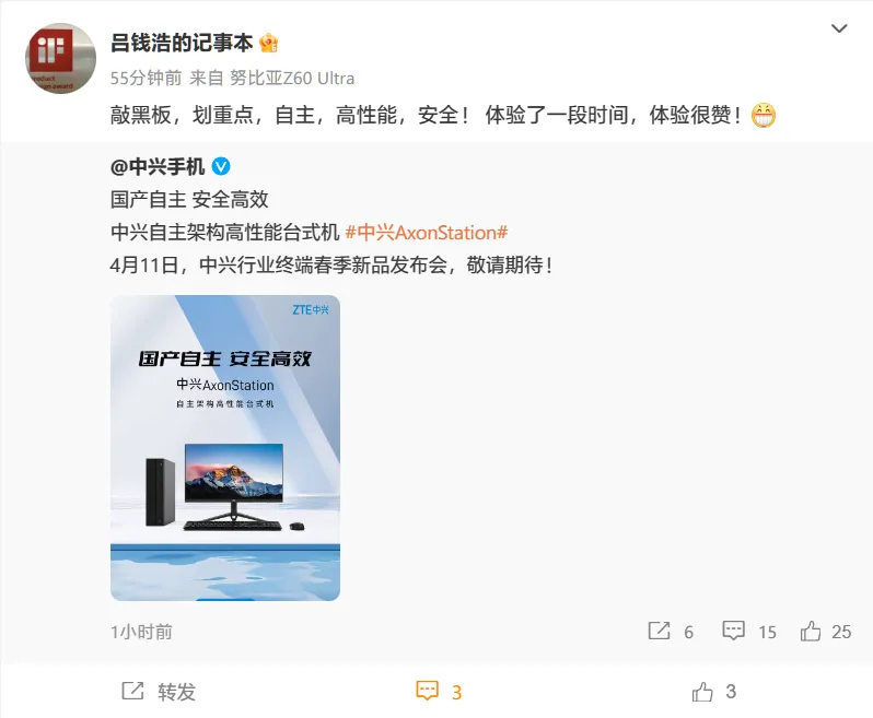 IT之家 4 月 8 日消息,复兴手机官微本日发文公布,复兴自主架构高性能台式机 AxonStation 将于 4 月 11 日的复兴行业终端春季新品发布会上亮相,主打“国产自主,安全高效”。 官方没有公布这款新品的详细参数信息,复兴官方职员吕钱浩则发文进一步增补了更多内容:自主、高性能、安全,并称自己体验了一段时间感觉“很赞”。 不久前,复兴预热了即将在 4 月 11 日登场的多款新品 —— 环球首款AI 5G FWA(固定无线接入,Fixed Wireless Access)产物复兴 G5 Ultra。其搭载 Wi-Fi 7 技能,支持 6GHz / 5GHz / 2.4GHz 三频接入,峰值速率达 19Gbps,支持 4K QAM、320MHz 大带宽以及 MLO 等 Wi-Fi 7 新特性。 同期发布的产物还包罗复兴二合一云电脑清闲系列,号称是环球首款二合一 5G 云电脑。官方称复兴云电脑清闲系列为“一台装备,两种形态”,提供本地和云端两种利用模式给用户选择。 现在官方还没有详细披露上述产物的其他内容,IT之家将带来跟进报道。 |