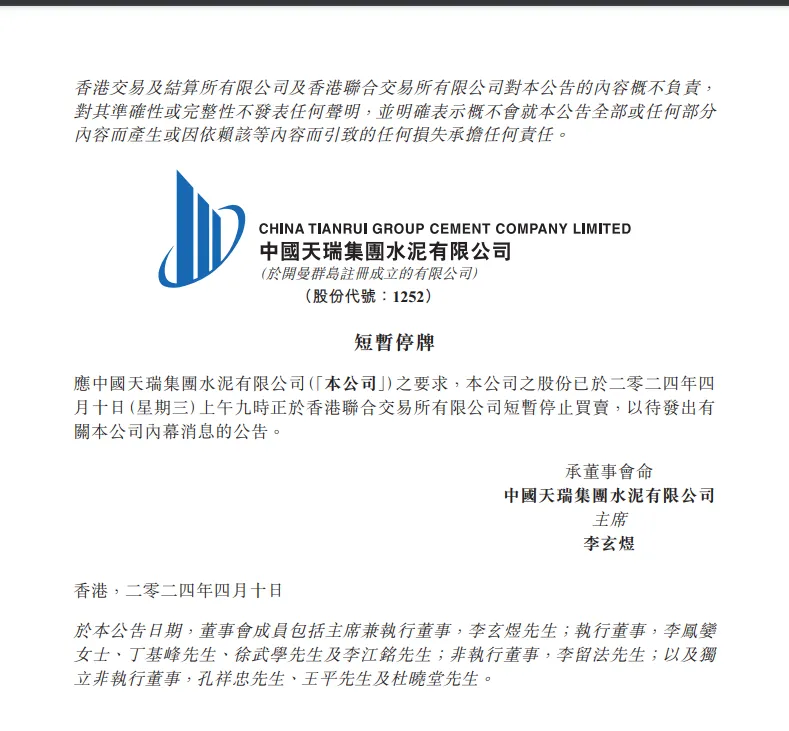 每经编辑:杜宇 4月10日早间,中国天瑞水泥(HK01252,股价0.048港元,市值1.4亿港元)在港交所公告,将于本日上午九时起短停息止交易,以待发出有关公司黑幕消息的公告。 4月9日,中国天瑞水泥尾盘放量闪崩,盘中低见0.035港元,创汗青新低。停止4月9日收盘,中国天瑞水泥跌99.04%,报0.048港元,成交额2438.16万港元,总市值仅剩1.4亿港元,一天内市值蒸发145.48亿港元(约合人民币134.33亿元)。 值得留意的是,9日15时45分前,中国天瑞水泥股价安稳,维持在5港元左右;9日15时45分开始,公司股价忽然闪崩,仅25分钟从4.92港元跌至0.048港元。 《逐日经济消息》记者留意到,从2023年2月以来,中国天瑞水泥的股价大要维持在5港元至6.1港元区间,近5个生意业务日也不停维持在5港元左右。 4月2日,中国天瑞水泥发布了2023年度业绩公告。2023年,中国天瑞水泥的水泥贩卖量约为2520万吨,比2022年同期的约2770万吨镌汰了约250万吨,降幅为9.0%。公司客岁贩卖水泥的均匀吨价约为人民币241.5元,相比2022年同期每吨降落67.2元,降幅为21.8%。石灰石骨料贩卖量约为4360万吨,比2022年同期的约4190万吨增长了约170万吨,增幅为4.1%。贩卖石灰石骨料的均匀吨价约为人民币34.5元,同比2022年降落12.6%。 2023年,中国天瑞水泥录得业务收入约为人民币78.89亿元,比2022年同期镌汰了28.6%。公司股东应占亏损约为6.34亿元,而2022年股东应占收益约为4.49亿元。 中国天瑞水泥官网表现,天瑞水泥2011年12月23日在联交所主板上市,2021年位居中国水泥上市公司综合力气排名第七位。天瑞水泥是中国首批加入天下水泥可一连发展倡议举措构造CSI的两家企业之一。 图片泉源:天瑞水泥公众号 中国天瑞水泥着力打造“天瑞”品牌,其系列产物被广泛应用于南水北调、哈大高铁、石武高铁、郑徐高铁、郑万高铁、京港澳高速、连霍高速、黄河大桥、大连港等大型水利、高铁、高速、桥梁、隧道、 港口等国家级重点工程创建项目,受到各施工、创建及监理单位的信托和好评。 据证券时报,连日来,多家水泥板块上市公司一连披露了2023年业绩。从团体环境来看,客岁水泥赛道业绩仍然不乐观,多家上市公司利润同比均大幅降落,部门地区公司出现亏损。 据数字水泥网预计,2023年水泥行业整年利润310亿,同比下滑55%,创16年新低。 3月19日,塔牌团体担当机构调研时表现,2024年水泥需求大概率将连续前两年降落趋势,行业竞争态势难有显着改善。市场上也有声音以为,当前已靠近红利阶段性底部,预计进一步下滑空间有限。水泥有望受益于后续基建和地产需求改善预期,中恒久看,供给格局有望一连优化。 3月19日晚,素有“水泥茅”之称的海螺水泥2023年的筹谋业绩出炉:2023年实现营收1409.99亿元,同比增长6.8%;净利润104.3亿元,同比镌汰33.4%;根本每股收益1.97元,同比镌汰33.45%。 西部水泥克日也公布业绩,公司2023年实现营收90.21亿元人民币,同比增长6.3%,股东应占溢利为4.21亿元,同比大幅下滑65.3%;天山股份预计2023年归母净利润16亿元至20.8亿元,同比降落54.21%至64.78%。 福建水泥预计2023年度归母净利润在-3.8亿元至-2.9亿元之间,与上年同期相比,亏损一连。受市场需求下滑影响,公司水泥销量较上年同期镌汰5.66%,水泥均匀售价同比降落15.87%,导致主业务务出现较大亏损。 值得留意的是,不少水泥企业向新能源和新质料等范畴举行结构。在2023年年报中,塔牌团体披露设立了广东塔牌新能源发展有限公司。塔牌团体表现,2023年底,储能电站装备代价快速降落,使得投资用户侧和电网侧的储能电站的经济性不停提拔,且需求较为稳固,上述公司紧张是探究新型储能电站等的投资运业务务。不外,“现在新建立的公司正在积极推进前期工作,尚无实质性和突破性渴望”。 别的,海螺水泥从2021年开始进军光伏范畴,建立多家新能源子公司,推动源网荷储一体化。年报表现,停止2023年年底,公司在运行光储发电装机容量542MW,同比增长14.11%。根据规划,预计到“十四五”末,海螺水泥新能源装机容量将到达1GW。 逐日经济消息综合证券时报、逐日经济消息(记者 王佳飞)、中国天瑞水泥公告、市场公开资料 |