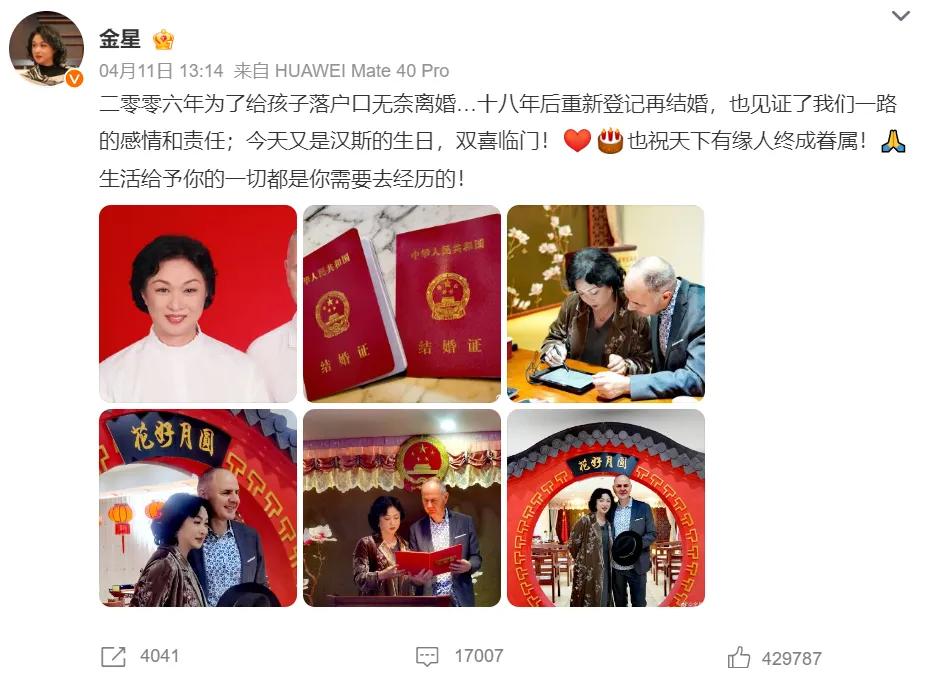 2024年4月11日,金星发微博表现,本身和汉斯复婚了。这个消息震惊了娱乐圈,原来这18年来,他们不绝都黑白法同居啊?金星在许多综艺节目中和汉斯秀恩爱,各人都以为他们是夫妻,原来不是。原来,金星和汉斯仳离,是为了孩子的户口,这到底是怎么回事呢?我带你相识一下。 着实,这不是金星第一次使用“婚姻”来到达某种目的了,早在1990年(当时她还没有做变性手术),金星想借完婚拿到美国绿卡,而金星的男同砚艾利克的女友肯波琳,也想借完婚免费住进金星在纽约的房子,于是金星和肯波琳在艾利克的见证下一起去领取告终婚证。2000年,由于肯波琳已经怀上了爱人的孩子,两人仳离。 1995年清朗节,金星在北京香山医院举行了变性手术。2004年2月,在法国巴黎飞往中国上海的飞机上,她与邻座的德国夫君汉斯结识,同年6月,两人决定正式在一起。2005年2月1日,两人完婚。由于金星是“变性人”,以是她不大概生孩子,但又有喜欢孩子,怎么办呢?于是她收养了3个孩子——两个儿子、一个女儿。 2006年,金星的大儿子到了上学的年事,但他的户口不绝没有搞定。假如金星完婚了,那就不能收养孩子。而且由于汉斯是德国人,国际收养证的手续更贫苦。于是,金星果断与汉斯仳离,以“只身”的身份,很轻易就给大儿子办好了户口。金星刚出民政局,就进派出所,也成了韵事。 非闻名娱评人吴清功指出:以是说啊,有些变乱,真的不是钱可以办理的。金星这么有钱,在上海的人脉这么广,但是也须要通过仳离的方式给收养的孩子上户口。同时也阐明金星和汉斯的感情深厚,这18年来,他们没有任何法律上的束缚,但是感情不绝很好。 金星与汉斯复婚,不光是两人爱情故事的连续,更背后蕴含着他们为家庭付出的勇气与对峙。固然金星和汉斯的婚姻之路,走得有点曲折,但终极他们照旧圆满地走在了一起。他们的故事,让我们看到了,无论生存中遇到什么困难,只要有爱,就能找到降服困难的办法。 除了金星和汉斯,娱乐圈另有一对夫妻仳离了,但是不绝过着夫妻生存,他们就是张亮和寇静。张亮是一个模特,2013年他由于加入湖南卫视的《爸爸去哪儿》一夜爆红。而早在2003年,张亮经朋侪先容,与寇静相识并来往;之后,张亮与寇静登记完婚,但未举行婚礼。2007年11月12日,张亮与寇静的儿子张悦轩(每天)出生。2015年6月9日,张亮与寇静的女儿出生。 张亮就是带着每天一起加入的《爸爸去哪儿》,寇静也以飞行高朋的身份加入了一期节目,他们显得非常恩爱。但是2019年11月29日,张亮发文公布与寇静仳离,而且两人于2017年已办理仳离手续。张亮和寇静的仳离消息让人不测,但更让人不测的是,仳离后两人仍同居。张亮依然会在微博为寇静庆生,卡点奉上生日祝福,好像在告诉众人,只管身份变了,但感情仍在。 尴尬的是:他们仳离之后,还经常一起聚餐,偶然候是两个人,偶然候是一家人。以是当时有网友推测:他们仳离大概也是和户口有关系,大概和买房有关系。2017年前后,北京有非常严酷的限购步调,为了买房子投资,张亮有大概干出这种事来。 |
