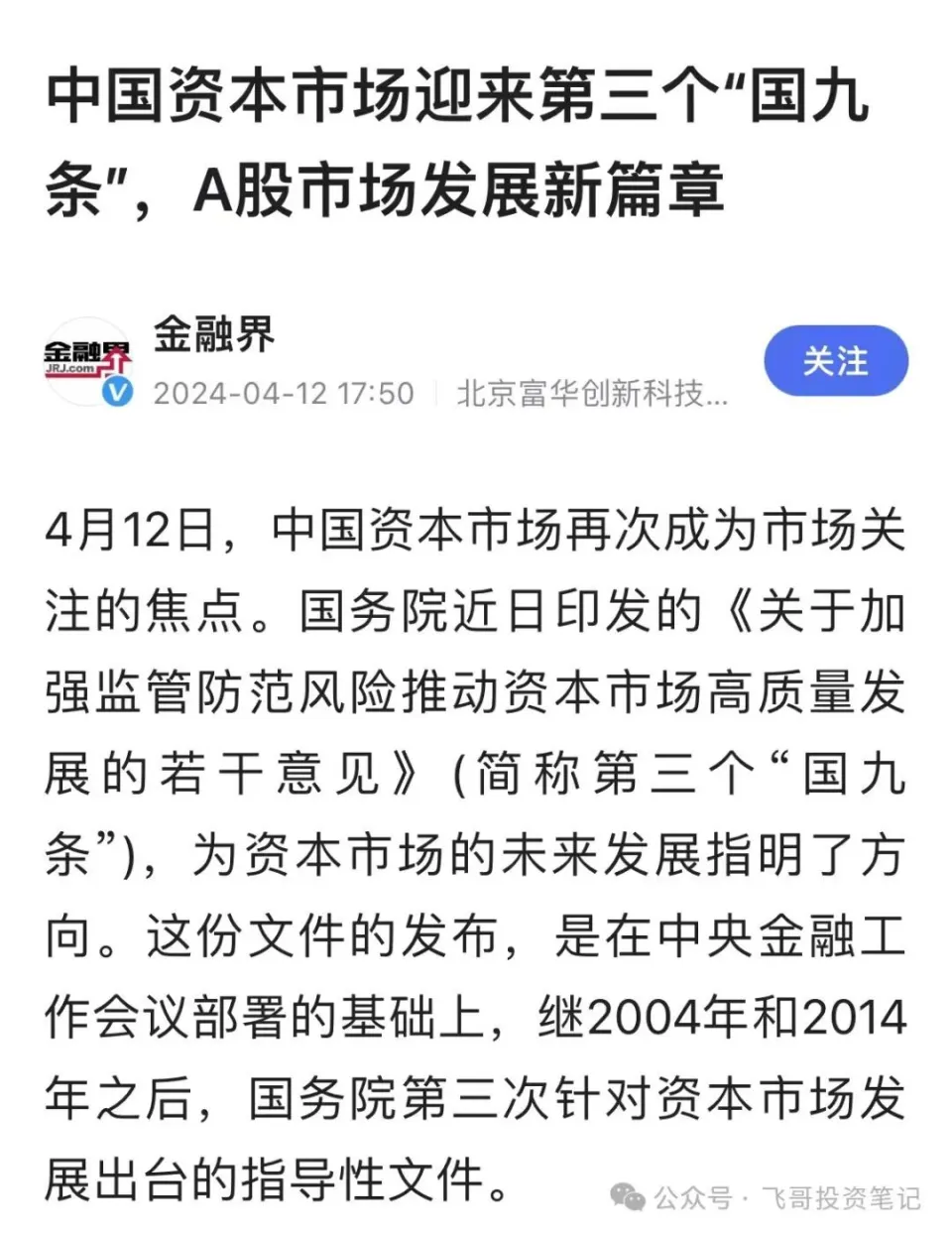 10年了,又来一次国九条。 它的意义有多大?只有老股民才知道! 2004年,国务院第一次出台国九条,A股迎来2005年至2007年的大牛市;2014年第二次国九条,接着迎来2015年的大牛市。 国务院克日印发《关于增强羁系防范风险推动资源市场高质量发展的多少意见》。这次出台的意见共9个部门,号称资源市场第三个“国九条”。有关于IPO的内容,有关于恒久资源入市的,有打击利用股价的,有美满规则的……固然大部门都是老生常谈,但是此时出台的国九条意义巨大。 我们不能刻舟求剑,根据前两次国九条背面的大牛市,就推断出这次国九条也肯定会带来大牛市。 但是,在这次出台国九条之前,我就已经在常青藤会员群里做出判定,从时间周期的角度来看,市场如今已经是汗青性底部地域,最远两年内会有一轮雷同07年或15年那样的大牛市。 思量到第三次国九条的出台,或允许以把大牛市的出发点提前到一年之内。 别的,我还要妄加推测一下,多个迹象表现,在不久的未来,中央大概要出台汗青性的大改革。 这次美国财务部长耶伦访华的时间,有一个特殊小但很告急的细节,就是财务部跟美方特殊提到:中方正在策划和实验一系列全面深化改革巨大肆措。这是本年第三次这么说,前两次分别是:3月初的两会上,最高层在江苏代表团上提到;3月尾中国发展高层论坛后,最高层访问美国工商界代表时又提到这个。 两个月三次提,意义很不一样平常,大概经济的全面深化改革真的要来了? 如果这个意料成真,A股汗青性的大牛市应该真的不远了。如许是我为什么要发起常青藤大会员如今绝不能空仓的原理。 本日是周六,照例披露一下我的飞龙在天基金投顾净值。 本周飞龙在天净值下跌了0.89%,沪深300指数下跌2.58%。客岁9月1日开始运作至今,飞龙在天净值为-6.15%,同期沪深300指数下跌8.33%。 飞龙在天略有上风,重要是受益于黄金ETF基金大涨,这再一次凸显了资产设置的告急性。 |