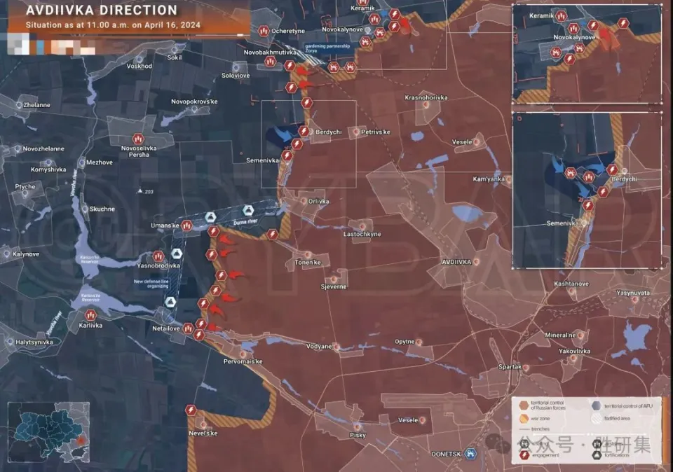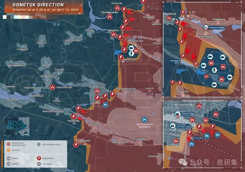 俄军16日继承在多个地域睁开打击举措,并对乌克兰后方的各个目的举行定点打击。苏梅和乌曼以及赫尔松的多个目的遭到轰炸,旧康斯坦丁诺夫机场再次遭到打击。 火线的战斗照旧会集在顿巴斯一线,俄军正在突破14年防线中末了一个堡垒! 阿夫杰耶夫卡2024年4月16日阿夫杰耶夫卡方向上,谢苗诺夫卡的战斗正在收尾,俄军向新卡利诺韦的推进。 俄军正在向阿夫杰耶夫卡北部的新卡利诺韦推进。根据信息,俄军已向北险些到达斯特波瓦街和佩肖特拉夫涅瓦街的接壤处(O0544号门路)。 别尔蒂奇-谢苗诺夫卡地域的局势发展已经变得更加清楚,俄军在该地域取得希望。谢苗诺夫卡的很大一部门现在处于俄军的控制之下,只有少数乌军仍然存在于北部末了的阵地上。 别的,别尔蒂奇还只剩下西段被乌军霸占。卡兹贝罗娃街和农业机场废墟的乌军增补兵员抵达,并挑起反击,原来已经抵达西部的俄军突击队伍被迫退却到水库反面。 作为别尔蒂奇附近的交通枢纽的水坝被毁,导致无论从东向西,照旧反过来都很困难,必须徒步通过,大概以非常慢的速率,会给对方的无人机留下太多时机。 同时,定居点北部地步和林地内的战斗渐渐增多,而且随处布满高度伤害的地雷。 顿涅茨克方向4月16日克拉斯诺戈罗夫卡取得希望,在佩沃迈斯基附近大踏步推进! 俄军正在克拉斯诺戈罗夫卡市南部和东部挺进。据最新消息,铁路以南约一半的住民区再次落入俄军的控制之下,突击队伍前段时间已乐成抵达车站。 乌军无人机打击乡村南部多座构筑物的镜头部门证明了这俄军的希望。 俄军正在用UMPC的FAB对克拉斯诺戈罗夫斯基耐火质料厂和南部工业区废墟举行多轮打击。 俄军在铁路以北和瓦图蒂纳街附近的住民区也取得了希望。不外旧米海洛夫卡俄军的动向还不明确,由于该地域有明斯克协议期间的防御工事。 昨天俄方发布了一个镜头,俄沙皇曼加尔第5旅的龟背装甲车突入克拉斯诺戈罗夫卡,贯穿整个乡村,到达克拉斯诺戈罗夫卡市中央的工厂大楼,然后在返回。 在北部的涅维尔斯科耶-佩尔沃迈斯科耶地域,俄军开始扫除多马哈沟壑地域的“口袋”。俄军已经霸占了花圃土,至少推进到了沟壑的边沿。 在这种情况下,“口袋”中剩余的乌军显着已经被指挥部放弃,但由于复杂的地雷情况和乌方无人机的反制,因此该地域尚未被俄军霸占。 |