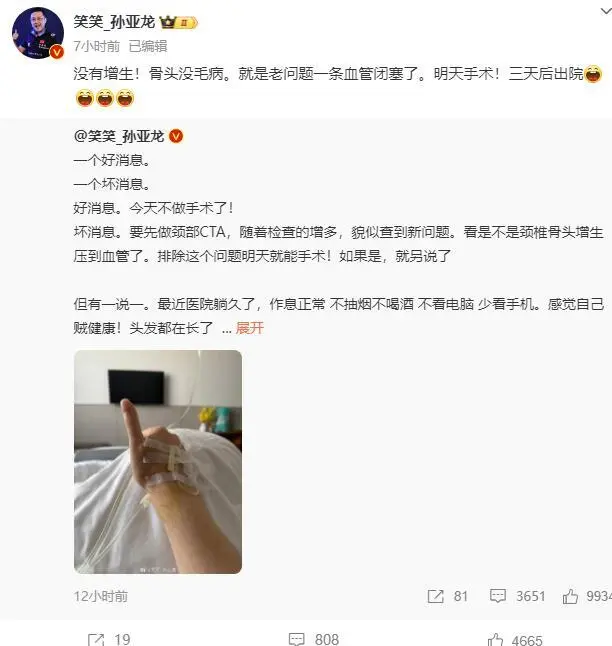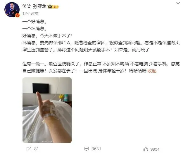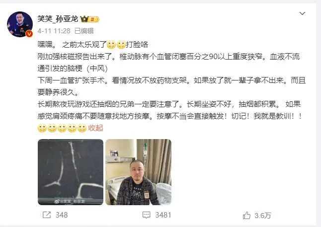 迩来关于直播圈的话题很多,节奏满天飞,现在被最多人讨论的应该就是关于主播的身材题目,由于现在直播行业黑白常内卷的,主播们恨不得永世不下播,苏息更是不大概。 而这种高强度的直播内容很容易让主播的身材出现题目,好比迩来我们看到万万粉丝的网红“一笑倾城”被确诊后甲状腺癌,现在正在积极的治疗中,这种癌症冯提莫也得过。 除此之外,我们看到尚有一位各人比力熟悉的主播身材也出现了题目,他就是笑笑,笑笑是前职业选手,退役之后就专职当起了主播,寻常直播工作压力大,日夜颠倒,而且生存风俗不好。 效果前段时间他突然感觉看东西重影,而且舌头发麻,于是他赶紧拨打120,去医院查抄后才知道,原来笑笑是中风了,没错,这一样寻常都是50岁以上的人才会得的疾病,35岁的笑笑就得了。 随后笑笑住院积极共同治疗,而且要做手术才气办理这件事,而一波未平一波又起,笑笑中风后预备手术,效果又查出新题目,手术暂时取消,把新题目办理了才气继承。 据笑笑自己透露:要先做颈部CTA,随着查抄的增多,貌似查到新题目。看是不是颈椎骨头增生压到血管了。打扫这个题目来日诰日就能手术!如果是,就另说了。 幸亏末了虚惊一场,终极的查抄没有太大的题目,于是手术正常举行,不得不说现在的直播行业确实是太卷了,主播们的身材都快被卷坏了,不外这就是高收入的代价吧,对此你们有什么想吐槽的吗? |