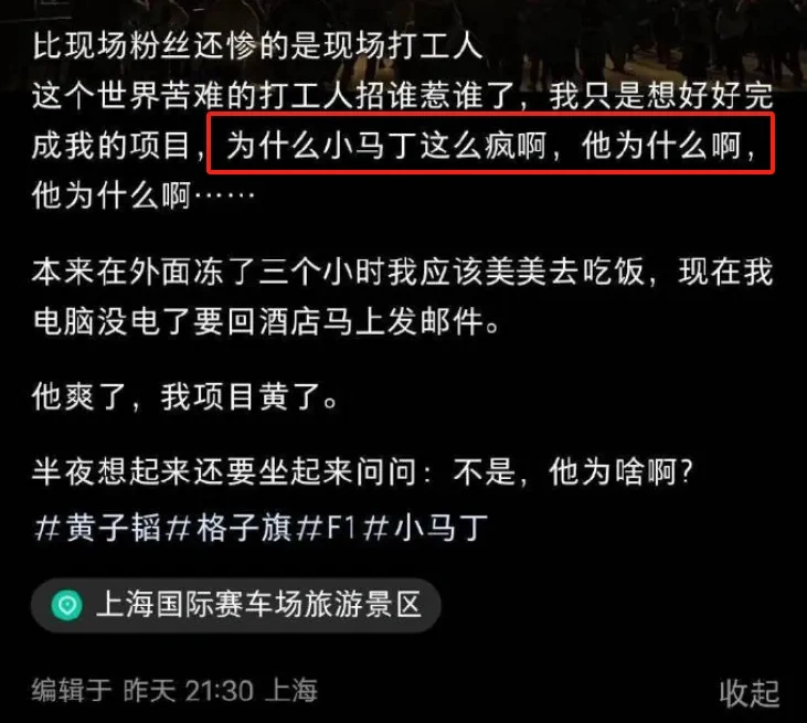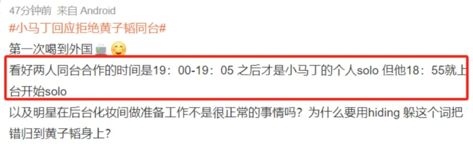 黄子韬在音乐节遭到外国DJ小马丁耍大牌一事引起网友热议,黄子韬本人也当场开直播表达了不满,并在上台的时间激动开麦,还爆了粗口。 随后黄子韬发文为自己的不妥言论致歉,应该也是意识到自己作为公众人物不能乱说脏话,但黄子韬也倔强体现自己只是针对脏话致歉,和其他的事变没有关系。 实在黄子韬近几年确实很少公开演出,开直播给各人的印象是比力容易激动,以是一开始,网友都以为这次又是他在作妖发疯,但是深扒下去发现究竟好像并不是如许。 据加入的观众形貌,DJ小马丁的上场时间是19点之前,大概18:50左右,而官宣的黄子韬和小马丁的互助时间是19点,也就是说,小马丁也没关照黄子韬的环境下,提前上台了。而且直接占用了黄子韬的演出时间,自己在台上DJ打碟玩了一个小时,把黄子韬晾在配景。 原来定的应该是两人晚上七点上台,先互助五分钟,这五分钟里黄子韬唱的部门实在也只有一两分钟,剩下三分钟都是小马丁打碟。然后从19:05到20点,都是小马丁的独秀。黄子韬为了这五分钟的演出还提前举行了彩排,但小马丁也没有加入。演出当天小马丁更是谁也没关照,自己提前上台打碟,过后回应的时间还把不对推给黄子韬和主理方。 小马丁在厥后发视频回应的时间,直接倒打一耙,说自己没有接到须要彩排的关照。也有网友透露说音乐节的彩排确实可去可不去,各人更喜欢临场发挥,比力热闹。这也可以明确,但小马丁反面的发言就令人无语了。 他直接把没有同台的锅甩给黄子韬,小马丁说自己在演出竣事之后,放了他和黄子韬的互助曲目,还怪黄子韬躲在配景没有上来。但黄子韬由于原定的演出时间被占,不得已在19:36开启了直播安抚粉丝感情,小马丁演出的时间,黄子韬就在台下,等着他演出竣事。 按照主理方的安排,黄子韬并不是末了进场的那一个,是小马丁先耍大牌上台占用了黄子韬的演出时间,之后又“漂亮”体现我放了咱俩的互助伴奏,但你错过了和我同台的时机。 小马丁还说自己一开始就没接到和黄子韬同台的关照,但当天加入之后他发现黄子韬对此好像很扫兴,他才实行让黄子韬同台,还说约请了黄子韬在演出当中一起合照,演出前也应该见到他,但是黄子韬没有出现。 而实际环境却是主理方早在音乐节前两天的时间就公布了演出时间表,他和黄子韬的互助演出也早就官宣过了,不存在没有关照的环境,是小马丁没有按照规定的时间进场,演出前两人应该都在各自的扮装间做预备,见不到也很正常,但小马丁提前登台却没有和任何人打招呼,主理方工作职员都懵了。 有自称现场工作职员的网友发文,直言打工人招谁惹谁,好好的项目被小马丁的举动搞黄,自己还要处理处罚后续一堆事,以致直言不懂小马丁为啥要如许?为什么这么疯,他爽了,自己项目黄了。 从这些言论可以看出,小马丁的不对更大,不按安排来,搅乱了全部流程。 而面对外国DJ在中国音乐节耍大牌,过后还倒打一耙的事变,网友都体现非常气愤,这种亚裔艺人被欺凌的事变也已经不是第一次了。之前林豪杰晒出和火星哥的合照,但火星哥晒出的只有单人照,林豪杰被裁掉了。 奥斯卡颁奖礼上,获奖者小罗伯特唐尼和台上的人都握了手,但略过了关继威。 更早尚有梅西拒绝在香港友好赛中登场,转头就在日本角逐中上场了。可以说,是时间看清晰这些人嘴脸了。 如今一个外国DJ也在中国音乐节耍大牌,不但没有敬业精神,以致可以说毫无修养。来中国捞金却不恭敬人,那就请别来! 本文未经授权严禁转载违者必究! |