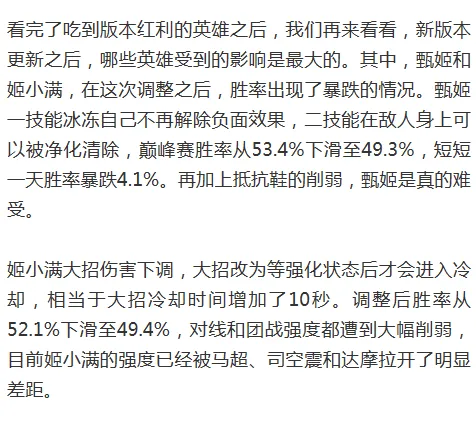 王者光彩:新版本更新一周,墨子成为最大受益者,甄姬、姬小满胜率暴跌!