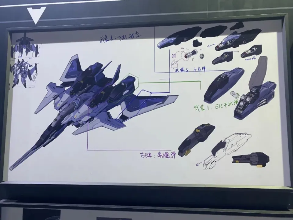 在《解限机》这次线下试玩会的展出里,也能看得出制作组在机设上下的功夫,单说我最爱的变形机“天袭者”,不管是飞行形态的主副翼的气动分部,照旧变形结构的清楚计划,再到导弹仓的位置埋藏、喷口位置的警示标识等细节,都很性感。