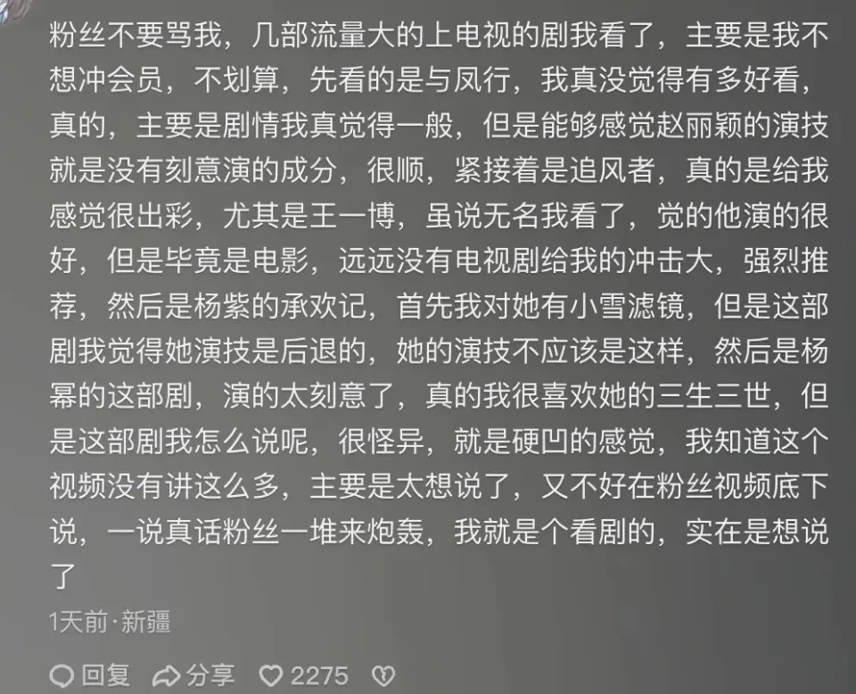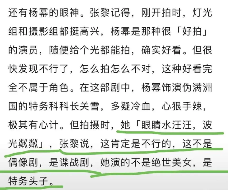 01副角演得越好,越以为气愤且无语。 听起来很奇葩吧,但这就是我看完电视剧《哈尔滨一九四四》的真实感受。 一边看着石大夫为了救人争分夺秒,为了关照谍报告急手抖浑身是汗,隔着屏幕都大气不敢喘。 一边又感到痛惜,由于同一时间女主的演技着实是配不上副角的认真。 得知“遗体”被救,猜疑石大夫身份后,气急败坏的关雪(杨幂饰)坐在办公室沙发上一通发性情。 一会骂下属,一会抠手发狠,性情确实挺大,但不知道为什么割裂感很强,有种别人在演谍战片,她在玩cosplay,完全不在一个次元的错感。 可明显,她才是紧张人物。 上一次有这种割裂感,照旧在看《猎冰》的时间,别人在演缉毒片,女主姚安娜在过家家。 只是,上一次是怕见到姚安娜又怕错过张颂文,这一次是怕见到杨幂又怕错过其他全部人。 翻看热搜,原来不止我一个人有这种“坏了一锅粥”的遗憾感。 但比演技更有标题的,是捂嘴式营销: 观众提演出标题就是妒忌她; 观众对比王鸥的汪曼春就是恨她; 一言不合就让提标题的观众去演; 二话不说就挖苦观众怎么不去投资。 总而言之:禁绝说她欠好,否则就是你有标题。 云云霸道,吓得网友都不敢提意见了,恐怕被叫去演。 云云捂嘴,也把观众逼成了“高情商”。 就连剧粉,说个意见都满满的求生欲。 02作为平凡观众也纳了闷了,怎么看个剧还不能提意见了? 且不对比其他剧中的女特务,就光看杨幂对关雪这个人物的解释在一些细节上都很难立得住。 就比如最外貌的性格变化,杨幂的处置惩罚就缺乏了说服力。 关雪,一个被欺凌长大,自尊心被踩碎又不停重修,终极靠着自己爬起来的姑娘。 她的底色是“恨”,进而是“狠”,以是她杀人不眨眼,连虐自己都不在话下,平常无论是对部下,照旧对对头都离不开“狠”字。 从小被陵暴,又能在男子堆里杀出一条血路,靠的是本领与阴狠,即便遇到喜欢的人显现自己的柔软面也不会完全脱离这个底色。 但关雪在遇到儿时心仪之人时,那娇俏的容貌外形表现,快速放下警备的肢体靠近,就差把自己交出去了,脱离得太快就没有说服力。 这么多年每天都过得勾心斗角,面对的都是严刑拷打的血腥画面,不绝将自己当男子一样使唤,心田也早已像块石头一样酷寒。 就算宋卓文是她日思夜想的人,也不大概让一个常年冷血的人在晤面的一瞬间从恶毒变得柔软,最少有个过程。 但杨幂在解释久别邂逅这场戏时,眼神里只有温柔,少了些狠与霸气,也就不像一个字斟句酌的特务头子。 温柔可以,但肯定是狠中带柔,柔得阴狠,柔得毒辣。 包罗在闻香水时,她也不像一个颠末练习的女特务,娇媚得倒像个军阀姨太太。 以致,有那么一瞬间回到了《爱的二八定律》,被秦施附体。 另有,在家宴上故意探索宋卓文这场戏中,关雪本该是最告急的人。 但在餐桌上,她低头干饭的随意,弓背弯腰的体态,完全将特务头子的气势压低了,更匹配不上前期塑造出的毒辣。 前面是大发雷霆表现出欠好惹的结果,营造出科长的气势,背面又塌着肩膀用饭化身干饭人。 同一个人却前后不搭险些没有关联性,就会产生割裂感,那么人物也就很难塑造得立体。 这场戏就像在《无穷逾越班》中拿到大玉儿脚本的赵奕欢,前期等候值拉满,演得时间又完全没有气势,被身边人碾压,看得人干发急。 像如许自降气势连不上戏的镜头另有很多,比如在连续吃瘪后气势汹汹去火车站抓石大夫,照她的性格以及前一秒镜头塑造的愤怒感,怎么也得在火车站发疯。 但镜头一转,杨幂就迈着那软绵绵的步调走出来了,停下来时身段还摇晃了两下,没有告急与愤怒感反而像逛大街,一点不像连续吃瘪后大发雷霆势须要把人抓到再狠狠折磨的狠恶感。 包罗去医院抓石大夫太太,穿着时髦还拎着包,走路软绵绵,那里像个凶险毒辣的特务头子,倒像个走秀的模特。 发狠的时间,恨不得浑身用力,一不注意又软塌塌没有了气势,自然也就塑造欠好人物。 光这几场戏,关雪这个人物就站不住。 03再来对比下被对比最多的汪曼春,王鸥在解释这个脚色时,总提着一口吻,这口吻就是“狠”。 这种狠不是靠大呼大呼,而是靠一眼就能看破人的毒辣眼神与一种志在必得的得意劲儿。 对待同事都是外貌不狠话不多,却动手绝对致人于死地,对待明楼她温声软语把自己装扮得娇娇柔柔。 但再怎样爱情脑,她的眼神始终不满是娇媚,照旧藏着一丝阴毒辣辣与猜疑。 这种狠不消瞪眼、不消大吼,却能让人感觉到这是一个阴狠蛇蝎之人。 包罗没有任何台词只是在大街上行走,她都能把气场拉满,靠得就是挺胸昂头的气势,与志在必得的得意样子,以及当时间都会给身边人一个大逼兜子的容貌外形。 女流之辈,坐到女特务的位置,靠的可不是娇媚,更不是流于外貌的阴狠,而是打心底的心狠手辣与夺目有本领。 将这一点表现出来,观众才华敬佩。 04固然,也有人会说,女特务并非都一个样,杨幂有自己的演法。 作为观众是恭敬演员的差别实验,但恭敬的条件是说得已往,而不是让人看不外去。 杨幂扮演的特务头子关雪之以是会引起这么多的讨论,离不开以下三点标题。 第一,演技与台词标题。 剧中,杨幂有不少发飙的戏,她是怎么演出发作力呢? 就是前面一句话用寻常以致低于寻常的语气说出口,然后下一句再猛地抬高音调加速语速配上狰狞的心情咆哮,在她的演出中这就是发作力。 比如姓段的被折磨致死,本不想让他
