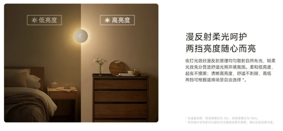IT之家 4 月 26 日消息,小米米家夜灯3现在已经上架小米商城,售59元。 据先容,新款夜灯配备隐蔽式亮度调治按键及拨杆,可通过拨杆切换关闭 / 常亮 / 感应模式;灯光效经漫反射原理匀称散射自然布光,同时采取光敏 + 人体双传感器的方案,感应角度到达 120°,正向感应间隔 5 米、两侧 3 米。 IT之家同时注意到,这款夜灯配备有 3M 背胶底座,灯体内置磁铁,同时配备 600mAh 锂电池,配备 USB-C 接口,号称低亮度下可续航 8 个月,单次充电 3小时即可充满。 |