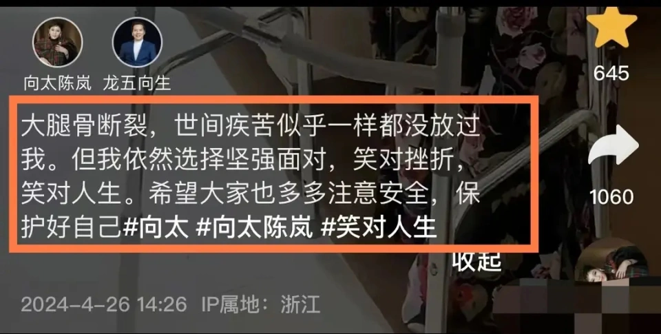 克日67岁的向太突然变得安静了起来,不但很少出现在大众视野,就连直播都很少开。相较于向太的半隐退状态,她的儿子儿媳倒是综艺上个不绝,话题度和讨论度更是高居不下,此中儿子向佐更是依附一己之力贡献了浩繁经典名局面。 26日下战书向太发视频自曝,本身不慎在浴室跌倒导致大腿骨折,并配文称“大腿骨断裂,凡间痛楚似乎一样都没放过我。但我依然选择刚强面临,笑对波折,笑对人生。渴望各人多多注意安全,掩护好本身。” 这个消息真的太突然了,就在26日中午向太还发文让各人谨防AI诈骗。她体现对方AI换脸了向佐的脸,本身不但没认出来还和对方聊得很开心。末了她还提示各人肯定要警惕AI换脸科技,谨防被换脸的亲朋诈骗。 真是世事无常,向太前脚还在提示各人谨防被骗,后脚就传出了跌倒的消息。 在看到向太大腿骨折后,很多网友纷纷留言批评称,向太真的不适当凡间痛楚,这个词是给老百姓用的。房子太大了,喊个人也必要半个小时才华听到。如果郭碧婷知道向太受伤了,肯定不会继承录制浪姐了,看到婆婆伤得这么重,郭碧婷肯定哭得泣不成声。 向太体现,她是由于在沐浴的时间,不警惕踩到了没有防滑垫的地方,导致整个人身段倾斜重心不稳,加上寻常松弛锻炼,身段有些圆润,以是不慎跌倒在了浴室中。 别的向太还体现,其时整个人都是懵的,一度痛到站不起来。由于浴室隔音很好,即便向太冒死呼救,但照旧叫天不灵,叫地不应,直到半个小时以后才被人发现。 向太称,本身很担心救护车抵家里的声音会造成不实的推测和报道,以是为了不占用公共资源,她第一个夜晚全程都待在浴室中,哪都不敢去。 直到第二天早上,向太才请了家庭医生,在整个过程中向华强也不绝守卫在她身旁。 到了医院后,颠末专业查抄发现向太是大腿骨断裂,微创手术从晚上十点不绝连续到破晓3点半,整个晚上她就睡了一个小时。 向太透露,她的大腿里有一根很长的钛金属管和四根髓钉,现在也是一位名副实在的“钢铁女侠”。 向太体现本身做完手术第一天就下床了,她身穿长裙戴着帽子,团体打扮贵气又时尚,即便受伤也要时候保持面子。向太称,固然全愈过程很痛楚,但是也要在黄金期的时间去积极全愈规复正常。有点小波折也无所谓,要笑对波折。 伤筋动骨一百天,未来将会有很长一段时间都看不到向太的身影了,向佐和郭碧婷在得知这个消息后,肯定是急得不得了,反面的综艺录制大概也会受到影响。渴望向太好好修养,早日全愈! |