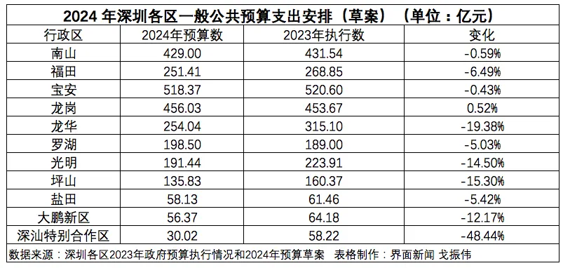 界面消息记者|戈振伟 由于财政收入增长乏力、教诲等刚性付出难以镌汰,深圳各区2024年面临的财政收支抵牾广泛加深,出现“紧束缚、紧平衡”的突出特性,“过紧日子”成为常态。 界面消息记者梳理深圳各区公布的2023年当局预算实行环境和2024年预算草案发现,深圳11区(包罗深汕特别相助区)除了龙岗区,别的10区2024年的一样平常公共预算付出(区本级,下同)均有所缩减(相比2023年的实际实行数),此中缩减幅度最大的三区是深汕特别相助区、龙华区、坪山区,分别缩减48.44%、15.30%和19.38%。预算付出规模排名前三的是宝安区、龙岗区、南山区。 一样平常公共预算是对以税收为主体的财政收入,安排用于保障和改善民生、推动经济社会发展、维护国家安全、维持国家机构正常运转等方面的收支预算。按照收支平衡的原则,一样平常公共预算付出通常根据一样平常公共预算收入来操持安排,这也是地方当局费钱的最告急账目。 2024年,面临财政收入增长乏力,付出“吃紧”的状态,深圳已有多区在预算草案中透暴露它们的财政压力。 龙华区体现:“存量资金斲丧殆尽、财政收入不升反降和财政付出刚性增长,‘三重挤压’的形势亘古未有,锋利的收支抵牾亘古未有。总体判断,2024年将是比年来我区财政收支形势最困难的一年。” 宝安区开端判断,2024年该区面临财政收入增长乏力、刚性付出强势增长的窘境,财政收支抵牾大概亘古未有。 龙岗区称:“预计2024年我区财政收支将出现‘紧束缚、紧平衡’的突出特性。” 坪山区也判断2024年该区财政收支“紧束缚、紧平衡”的特性将尤为突出,须要费尽心机拓宽资金渠道。 因此,各区当局在预算草案中夸大“过紧日子”。 南山区体现:“树牢过紧日子理念,健全过紧日子制度,严格过紧日子实行,强化过紧日子监视。” 龙华区称:“对峙勤俭节省,突出‘过紧日子’,构建节省型保障机制。” 好比对一样平常办公费,龙华区操持压减50%,对培训、调研等同一压减70%,各部分原则上不再安排绿植经费;压缩购买服务规模,属于本单元正常履职事项的,不得举行外包等。 从各区财政安排重点来看,一样平常公共预算付出依然对峙公共财政属性,保持民生付出占财政付出比重不低于70%,突出“民生七优”(幼有善育、学有优教、劳有厚得、病有良医、老有颐养、住有宜居、弱有众扶)。此中,教诲、医疗付出占大头,特别是教诲,得到优先支持。 根据龙华区的预算安排,2024年全区开端安排九大类民生付出202亿元,占一样平常公共预算付出比重达79%。特别是,在可用财力大幅镌汰的环境下,龙华区对其他范畴预算举行大幅缩减, 倾力支持教诲、医疗范畴的增支需求。2024年,龙华区教诲范畴全口径投入预计将达93.5亿元,增长4%,占本级一样平常公共预算收入近6成。 别的,南山区在教诲付出方面操持安排84.28亿元,增长 15.0%;龙岗区教诲付出操持安排144.38 亿元,占比32%,增长21.13亿元,增长15.52%;罗湖区的教诲付出操持安排53.33亿元,增长 1.6%;光明区的教诲付出操持安排42.11亿元,增长0.68%。 不外,坪山区的教诲付出操持安排29.44亿元,同比降落21.16%,告急是前几年加大学位供给,教诲类当局投资项目建立需求有所镌汰。 “过紧日子”的常态下,很多地方当局不得不缩减构造运行付出,即缩减一样平常公共服务付出。深圳各区中,大鹏新区、龙岗区、福田区、龙华区2024年的“一样平常公共服务付出”预算安排缩减显着,分别缩减31%、17%、12.14%、11.56%。 从市级层面看,2024年,深圳安排市本级一样平常公共预算付出2166.1亿元,缩减4.39%;全市一样平常公共预算付出4722.6亿元,缩减5.78%。 1月30日,深圳市财政局局长代金涛在深圳市第七届人民代表大会第五次集会上作陈诉称:“将对峙过紧日子头脑贯彻预算管理全过程,严控一样平常性付出,进步财政资金利用效益。” 从天下层面看,4月22日,财政部副部长王东伟在国新办举行的消息发布会上先容,一季度,各级财政部分在严格落实过紧日子要求、严控一样平常性付出的同时,继承加大对重点范畴付出的保障力度,天下一样平常公共预算付出规模近7万亿元。 |