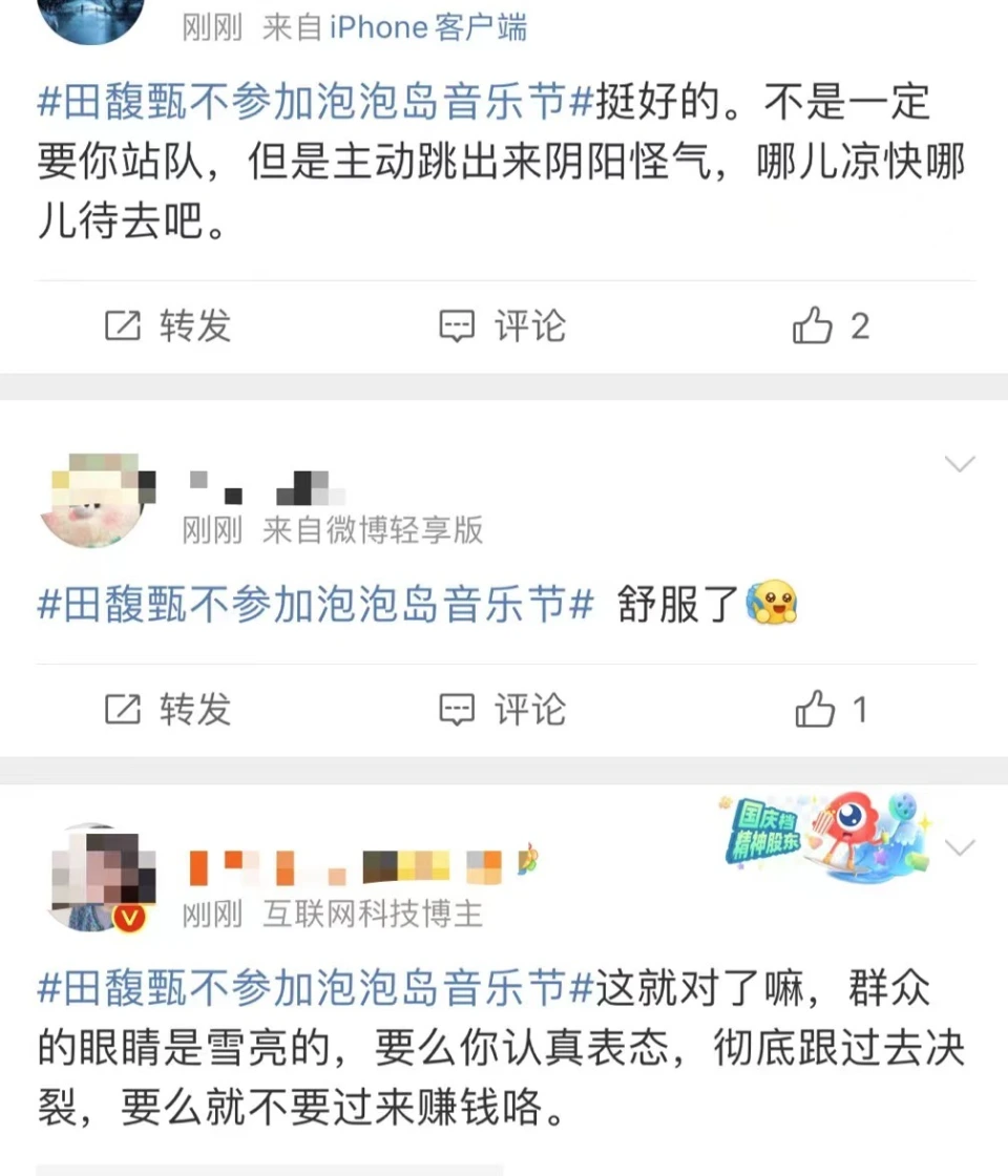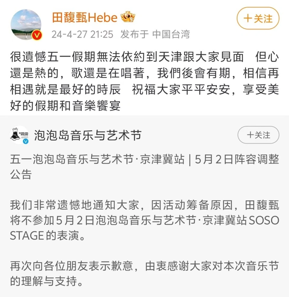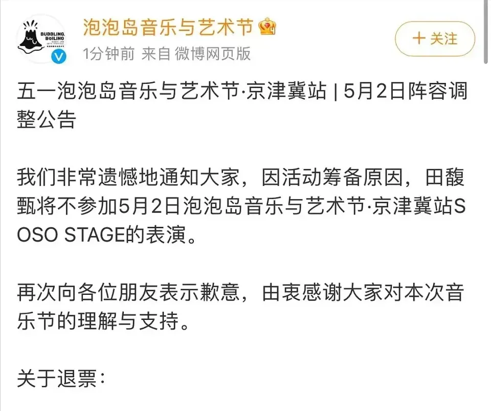 田馥甄本地复出失败了! 4月27日晚,泡泡岛音乐与艺术节官微发布声明,称五一期间演出阵容调解,因活动筹办缘故原由,歌手田馥甄将不到场演出,并表现歉意,同时贴出了退票流程。 随后,田馥甄本人微博举行了转发,称:“很遗憾五一假期无法依约到天津跟各人晤面,但心是热的,我们后会有期。”并表现下一次相遇就是最好的时间。看上去对于被退货,举行了面子的竣事。 对于这个的效果,网友直呼民怨沸腾,吐槽田馥甄咎由自取,在态度标题眼前绝不退让。而她本人的这次回应,看着似乎很面子,实则再次分析了她的标题很大,就算是这种时间,也还对峙不乐意举行任何表明,哪怕说一句“我是中国人”。 尚有网友点评,田馥甄总喜好阴阳怪气,在特殊敏感时期发布不妥言论,还在引发争议后态度暗昧其词。 包罗这次在天津音乐节公布演出引发争议之后,田馥甄面对台媒的采访,还是左右而言他,就是不举行任何表明和澄清,被痛批双面人。 着实引发争议之后,主理方还是举行了补充和拯救风波,于是才会有了后续那条微博。痛惜的是,主理方给了田馥甄时机表态,她却玩起心计,疑似在发文时私自删除了“一家人”、“登岛”等字眼,在这种事故上耍心眼,玩笔墨游戏,使得风波越演越烈。 云云敷衍的态度,还想要来本地演出捞金,大众肯定是难以继续的,更别提她本人昔日那些无法洗白的言行。大概很多人会拿蔡依林等歌手对比,但是田馥甄更为显着大胆,以是这才是导致她被抵抗的关键。 这一次田馥甄被抵抗取消演出乐成,分析接下来,SHE这个组合要在本地合体也是根本不大概了,同时也预示着田馥甄本人,很难再到本地捞金,而且已经成为了风险艺人。大部分网友也以为,田馥甄如许的艺人不可放纵,想要来捞金就得拿出态度,试图蒙混过关,怕是只会惹来更大争议。 而网友这次抵抗乐成,也分析了舆情的告急性。具有风险性的艺人无论是谁,主理方都应该审慎对待,一旦口子打开,会造成舆情对立,恶劣影响更加扩大。 末了,就盼望这些艺人好自为之,试图当双面人大概搞鉴戒思,网友的眼睛雪亮! |
