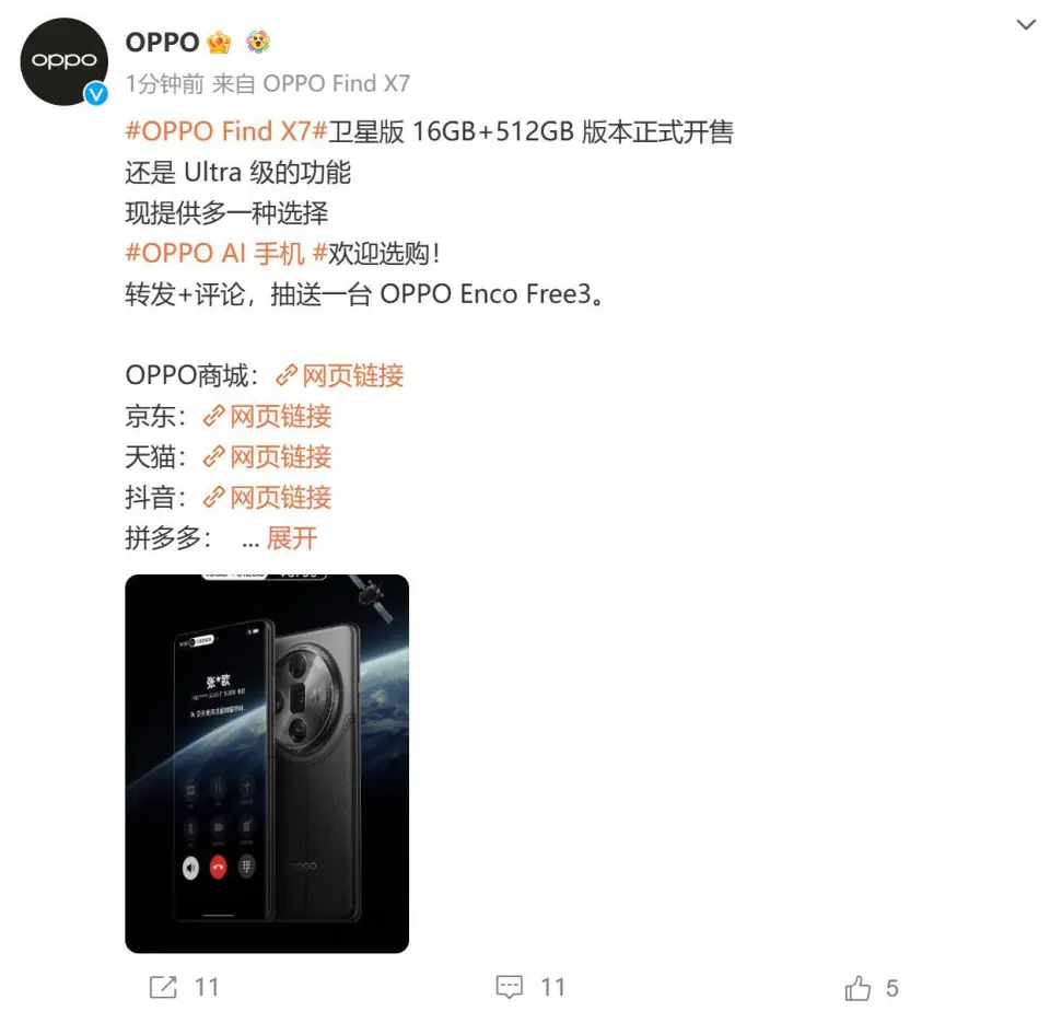 本日,OPPO官方正式公布,OPPO Find X7 Ultra卫星通讯版16GB+512GB版本正式开售。 该版本首发首发6799元,与此前发售的16GB+1TB版本相差700元。 在硬件设置方面,此次推出的512GB版本与此前的的1TB版本不停,均接纳骁龙8 Gen 3处置惩罚器+ LPDDR5X+UFS4.0,CPU最高主频3.3GHz。 影像方面,OPPO Find X7 Ultra接纳双潜望四主摄以及索尼光喻LYT-900一英寸大底传感器,并支持全像素相位对焦。 其他方面,它接纳一块6.82英寸的AMOLED体现屏、5000mAh电池和100W快充。 |