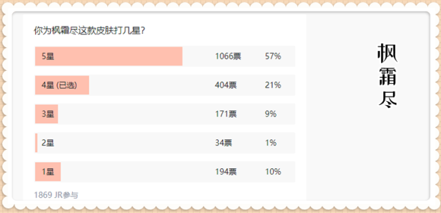 文/静海君 王者光彩皮肤销量排行榜8月28号数据更新,让我们来看一看橘右京的「枫霜尽」销量怎样,看看各人是怎么评价他的。 皮肤销量排行榜的最新环境由于新皮肤不多,本次排行榜仍旧只取前10名来举行对比。 ⑴8-10名 排在本次销量排行榜8-10名的皮肤分别是: 第10名:永昼(夏洛特)。 第9名:遇见神鹿(瑶)。 第8名:超时空兵士(狄仁杰)。 这三个皮肤在上一周的排行榜上都在前10名,只不外相互之间的排名有些区别。除了永昼同样保持在第10之外,遇见神鹿之前是第7,而超时空兵士则是第9。 对了,之前排第8的末日机甲本期只排在第13名,跌幅非常显着。 ⑵5-7名 排在本期排行榜5-7名的皮肤分别是: 第7名:一念神魔(李信)。 第6名:赏金猎人(澜)。 第5名:深海之息(马可波罗)。 这三款皮肤同样都在上期的排行榜上,之前赏金猎人第6,一念神魔第5,深海之息第4,为什么他们的排名都出现下滑了呢?缘故原由各人都知道~ ⑶2-4名 排在第2-4名的皮肤分别是: 第4名:音你闪灼(孙尚香)。 第3名:枫霜尽(橘右京)。 第2名:匿光启智者(鲁班大家)。 枫霜尽新上线,第一周打折的时间竟然只排第三。固然了,在传说级皮肤音你闪灼只卖1200点券,史诗级皮肤匿光启智者更是只卖462点券的条件下,枫霜尽只排第三也算可以或许明确。 ⑷第1名 本期排名第一的皮肤仍旧是娜可露露的前尘镜,为什么用仍旧这个词呢?由于这款8月12号上线的皮肤在上一周就已经是第一了。 是的,同样都是SNK的皮肤,前尘镜的销量是第一,而枫霜尽的销量仅仅是第三,这是为什么呢? 分析枫霜尽销量不可的缘故原由为什么枫霜尽的销量不可呢?我第一个想到的就是各人的口碑。 ⑴枫霜尽和前尘镜的口碑对比 在某扑,前尘镜的评分是8.4分,此中5星的投票占58%,4星的投票占21%,好评率约莫在80%。 同样是某扑,枫霜尽的评分是8.3分,此中五星投票是57%,4星是21%,好评率和前尘镜险些划一。 两者的数据险些相差无几,似乎没有什么区别。怎么办理这个事呢?我决定再去水分相对少一点的某论坛看看。 在某论坛,前尘镜的评分是8.1分,此中打5星的比例是55.9%,4星的比例是20.5%,两者加起来是76.4%,和某扑险些差不多。 而枫霜尽的评分就有比力大的区别了,他在某论坛的评分是7.5分,此中5星以上的比例是41.9%,4星以上的比例是23.5%,两者加起来是65.4%。 在全部打分中,对于那些1星的的评价我都是选择无视的,由于我以为王者光彩的皮肤纵然再差,也不至于真的是一星,以是一样平常我都会对比前面三个选项。 在某论坛的评分中,枫霜尽的五星好评率比前尘镜少了14%,这一点很能分析题目。除了高星好评之外,另有一个非常告急的线索: 前尘镜的评分人数是760,而枫霜尽的评分人数是570。 在评分人数少的条件下,分数还更低,以是枫霜尽的口碑是肯定的不如前尘镜的。别的,根据打分的人数来分析,枫霜尽的销量应该是前尘镜的75%左右。 ⑵枫霜尽口碑欠好的缘故原由总结 枫霜尽口碑欠好(大概说一样平常)的缘故原由重要有: 起首,修罗的造型着实是太好了,对比之下,枫霜尽的衣服着实是太多了,给人的感觉太过粗笨。 其次,固然这个皮肤的殊效很好,但是打击感过轻(和修罗相比)。 末了,这款皮肤的定位是传说。 一款定位是传说的皮肤除了技能殊效轻微好一点外,其他各个方面都打不外史诗风致的修罗,你说这个皮肤的口碑能好吗? 简朴总结一下,枫霜尽销量欠好的直接缘故原由是衣服太多(o(╯□╰)o),根本缘故原由则是修罗做得着实太好了。 以上就是本期的全部内容了,我是静海君,江湖不大,有缘下次再见哦。 |