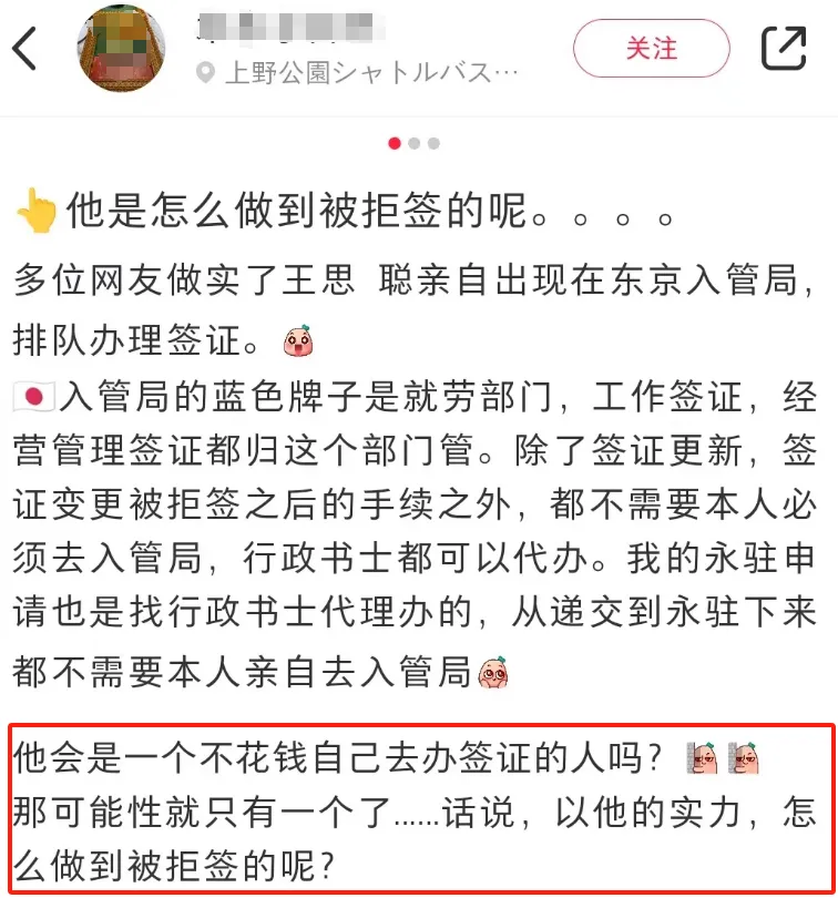 王思聪又一次被网友偶遇了,这一次仍然是老地方,正是位于日本东京品川区的入管局(负责收支境管理事件的部门)。 入管局正是日本负责收支境管理事件的部门,偶遇王思聪的网友也是很好奇为何王思聪多次现身管理局,不由得举起手机拍下王思聪的边幅,试图探求答案,只见王思聪站在室外,皱着眉头,一脸愁容 ,看上去非常不高兴,身上的衣服也是皱皱巴巴。 有网友绝不客气吐槽,王思聪穿着云云邋遢,还站在垃圾桶附近,好像去日本拾荒一样;另有网友从王思聪身上看到了别的一位都城富二代的影子,那就是同样穿着皱巴上衣随处跑的汪小菲。 虽说王思聪和汪小菲的上衣并非同个品牌,但是相似的颜色、相似的格局以及相似的气质,也是让两个人现在的形象愈发重叠了。 曾多少时,王思聪还公开辟文怒怼汪小菲,讽刺他用裤兜里俩钢镚冒充富二代,娶了个明星妻子就自认上流社会,让汪小菲好好照照镜子,三十几岁了整天整些没用的。 也是不知道,云云看不起汪小菲的王思聪,看到网友们把他和汪小菲相提并论,会是什么感想。 掐指一算,王思聪讽刺汪小菲一事已经已往10多年时间了,汪小菲的明星妻子大S早就成了他甩不脱的前妻,王思聪的生存也发生了堪称翻天覆地的厘革——热爱网上冲浪的王校长愈发低调了,近期被人多次偶遇,身边也没有了莺莺燕燕,而是换成了一位疑似状师的夫君伴随。 有网友根据王思聪的行程分析,他多次现身管理局,存在两种大概,要么办理投资签证,要么就是操持移民了,有网友爆料王思聪已经在日本买房了。 只不外,假如是单纯办理业务,王思聪本人是不必要前往管理局的,但是现在,光他本人就不止去了一次,那么就只有一种大概——王思聪的日本签证出了题目,以致搞欠好被拒签了。 ——王思聪会被拒签?这下连讽刺他邋遢的网友都疑惑了。 别看王思聪一脸崎岖潦倒,但他的个人条件还是不错的,有人帮王思聪算了一下分,按照规定,不管他办理何种业务,都应该轻轻松松。 从学历角度看,王思聪毕业于英国伦敦大学,属于加分项;从资产角度看,王思聪名下有一家筹谋14年之久的投资公司,属于更高的加分项。 另有年收入、日本房产等加分标准,王思聪全部符合,他假如想要得到日本身份,只要恣意创建个公司筹谋一年时间就行了,以是网友都很难想象,王思聪的日本签证竟然会出题目,难不成背后有什么各人不知道的事? 固然,详细题目只有王思聪和他的状师清楚,网友们都是推测。 相比力签证题目,另有人以为王思聪更应该关注一下他的身段,年龄轻轻就一脸悲观,都成了苹果型身段了,必要注意三高和心脑血管康健。 前段时间,另有网友偶遇王思聪的父亲王健林被保镖簇拥着健身,发起王思聪多跟老爸学一学啦。 本文未经授权严禁转载违者必究! |