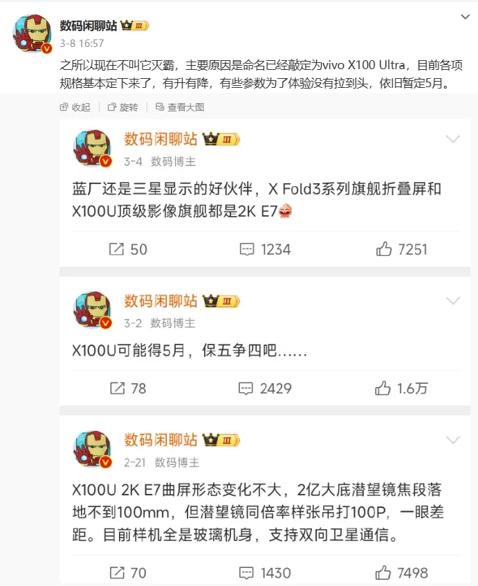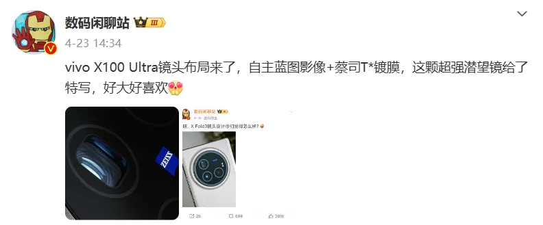 近来一段时间,关于vivo X100系列超大杯机型——vivo X100 Ultra的消息连续出现了多份。如今,最新的爆料中提到了该机的售价信息。 数码博主@数码闲聊站 的一份爆料中提到:“阿蓝那边已经暗示过骁龙8G3影像旗舰的订价了,我个人摸到的消息也是顶配干到8K价位段”。 按照爆料中的说法来看,vivo X100 Ultra顶配版的售价在8000元价位段。 据悉,两款型号分别为V2366GA、V2366HA的vivo新机在克日通过了无线电批准,此中后者的装备名称为“天通一号卫星移动通讯体系终端”。 据数码博主@数码闲聊站 透露,两款新机分别为vivo X100 Ultra平常版和顶配版,均支持80W有线快充,后者内置天通一号卫星移动通讯体系,是vivo旗下首款卫星通讯手机。 也就是说,vivo X100 Ultra将不会标配卫星通讯功能,而是由顶配版独占卫星通讯功能。 别的,vivo品牌副总裁,兼品牌与产物战略总司理贾净东公布了,即将面世的X系列新品将搭载vivo BlueImage蓝图影像技能。 贾净东还公布了即将上市新品的局部图,照片中可见潜望式摄像头和蔡司小蓝标。团结现在的消息来看,这款新品预计就是vivo X100 Ultra。 同时,数码博主@数码闲聊站 的一份爆料中,将vivo X Fold3手机相机结构照片和vivo X100 Ultra 的局部图举行了对比,体现此次vivo X100 Ultra接纳了自主蓝图影像+蔡司T*镀膜,并称,这颗潜望镜头“超强”。 团结该博主更早之前的消息体现,vivo X100 Ultra将搭载5000万像素LYT900一英寸主摄,5000万像素超广角镜头和2亿像素大底潜望长焦镜头。此中,长焦镜头拥有f/1.75-f/2.59光圈、14mm-85mm变焦。 与此同时,vivo X100 Ultra将搭载骁龙8 Gen3处置处罚器,配备一块三星2K E7曲面屏,形态变革不大,预计会接纳玻璃机身。 作为参考,此前发布的同系列vivo X100 Pro配备6.78英寸超视网膜8T护眼微曲屏,分辨率为2800×1260,局部峰值亮度达3000nit,支持120Hz革新率;焦点搭载天玑9300;前置3200万像素摄像头,后置5000万像素精度跃迁一英寸主摄+5000万像素蔡司APO超等长焦摄像头+5000万像素超视野超广角摄像头组合,团结vivo自研影像芯片V3;内置等效5400mAh的蓝海电池,支持100W双芯闪充和50W无线闪充,4999元起售。 综合现有的消息来看,vivo X100 Ultra预计带来屏幕、影像、体验等方面的升级,感爱好的朋侪可以保持关注。 别的,搭载天玑9300+处置处罚器的vivo X100s系列预计与vivo X100 Ultra一同在5月发布。 vivo通讯科技有限公司产物司理韩伯啸爆料称,vivo X100s将首发四序人像,“一个很好玩也很艺术的相机新玩法,Aigc和影像的魅力团结”。 综合现在的消息,vivo X100s还将配备一块1.5K极窄直屏,搭配金属直角中框+玻璃机身计划,提供白/黑/青/钛四款配色,配备5000mAh左右电池,支持120W快充。 |