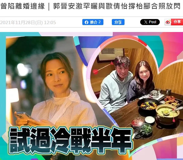 5月2日,59岁的郭晋安忽然宣布仳离,表现两年前就和欧倩怡分居了。 欧倩怡和郭晋安在外交平台发文宣布仳离:“感恩曾与你一起走过一段优美的光阴!自两年前起我们已经分开生存了,而作出仳离这个决定是颠末我俩的深图远虑及沟通。决定是无奈及艰难感恩我们也为彼此付出过,为家庭努力过……给予彼此最大祝福。” 据了解,郭晋安在1999年与小15岁的欧倩怡相识,交往至2000年7月宣布新恋情,颠末7年爱情长跑后结婚,2006年在香港迪士尼乐园举行婚礼,两年后生下宗子郭令山,到了2011年生下女儿郭以雅。 两人结婚18年是圈内的榜样夫妻,欧倩怡固然比丈夫小15岁,但在教诲儿女方面常常被男方吐槽太啰嗦,一件事要反复讲,导致两人关系变差。 现年59岁的郭晋安曾三度获TVB视帝。2003年,他凭《戆夫成龙》得到万千星辉颁奖仪式最佳男主角。2004年,主演的时装警匪剧集《隔世追凶》播出,剧中饰演何天光,该剧被观众和媒体同等盛赞,成为翡翠收视冠军节目。2005年,参演电视剧《阿旺新传》,再度得到万千星辉颁奖仪式最佳男主角 。2014年,参演电视剧《忠奸人》,得到星和无线电视大奖2014我最爱TVB电视男角色和万千星辉颁奖仪式最佳男主角。 现年44岁的欧倩怡则在1996年加入歌唱比赛出道,厥后演唱《樱桃小丸子》的粤语片尾曲而走红,2006年结婚后淡出演艺圈,相夫教子多年直到2017年才复出录制《超级奶爸》。 固然欧倩怡已经淡出十多年,但信托各人对她这张面貌并不陌生,她先后出演过《西游记2》《秀才遇着兵》《双面伊人》等电视剧。 由于淡出演艺圈多年,欧倩怡外交账号仅3万粉丝,幸亏欧倩怡非常上进,婚后不停提升学历,现在是拥有运动营养学家等证书,转行当了营养师,信托不消复出演习也不愁没有经济泉源。 客岁6月,欧倩怡曾宣布从香港大学结业,得到体育及运动营养学硕士学位,其时郭晋安并未与太太互动。 两人末了一次同框是在2021年11月,有数外出用饭。 其时港媒指出,他们由于子女学业标题辩论,郭晋安有段时间拍剧太入戏,导致两人暗斗了半年,陷入仳离边沿,厥后随着儿子转校关系才改善。 没想到,两人的这次合体竟然是“分手餐”,忍了两年终极遗憾仳离。 |
