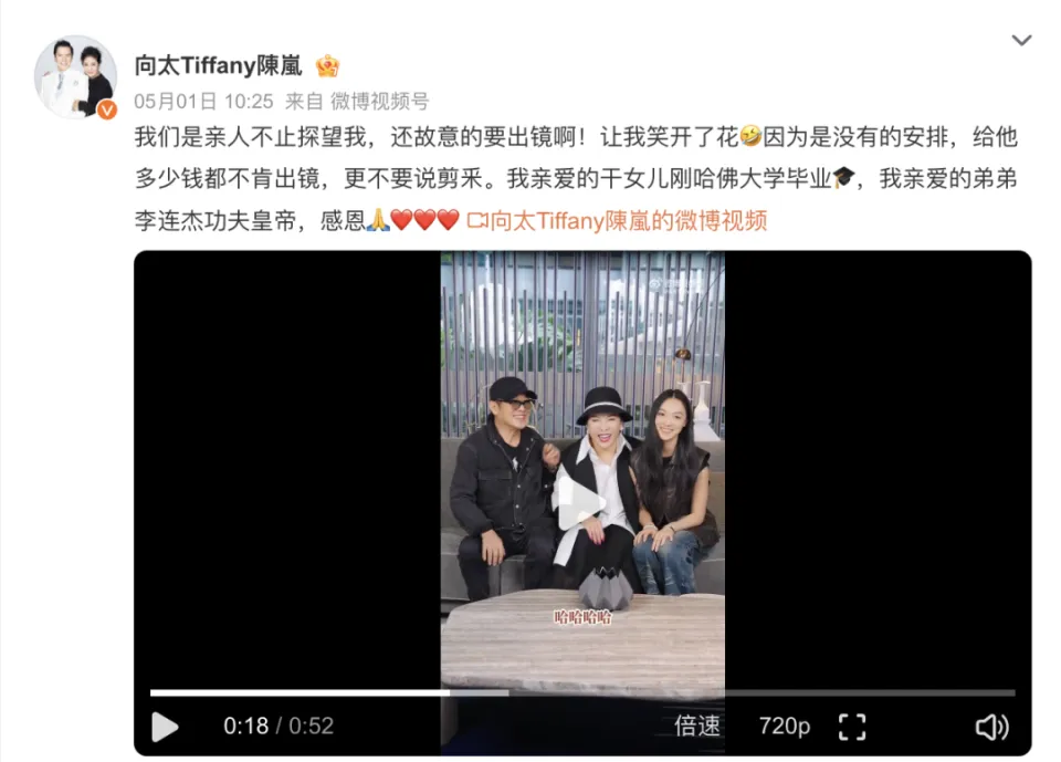 这一段时间,向太,郭碧婷,向佐三人轮替上热搜。 先是向佐参加了综艺节目。 一段独白诗,让几位导师的心情图出圈,想笑又不敢笑,憋着的样子,逗笑了观众。 他也被制作成为了心情包。 虽然演技被吐槽,但也陪同着热度和口水齐飞。 接下来,久未露面的郭碧婷也参加工作了。 选择的是芒果台的《浪姐》,也是黑红一起出圈。 身段发福了,但是颜值照旧不遑多让的。 唱跳,管理本领拉胯,但有南湘的那一份滤镜,观众们照旧很宽容的。 接着,向太脚受伤了,还住了医院。 这一下,引出了很多多少的大咖。 李连杰等人悉数亮相,让人倍感密切。 这不,向太的新店在澳门开业了。 一下子,又出现了很多香港大牌。 郭碧婷和想做就不消说了。 向太做什么两小口都很孝敬,陪同左右。 根据向太的先容,这一次本身受伤了,郭碧婷也很担心,还专门带上了孙子孙女过来看她。 本身身上穿着的白色公主裙,照旧儿媳妇给挑选的。 画面中的向太,一身白色打扮,看起来像个公主,年轻了不少。 这个风格和郭碧婷照旧很神似的。 大概是住的久了,婆媳两人长得越来越像了。 除了向佐夫妇之外,李连杰再度现身了。 向太还在微博上发布了内容。 称「我酷爱的干女儿(李连杰女儿)刚哈佛大学毕业,我酷爱的弟弟李连杰功夫天子」。 高兴之情溢于言表。 李连杰和女儿一起出现,李连杰看起来苗条了很多,也容光焕发。 和前一段时间网友们曝光的「一脸褶子」已经大相径庭了。 前一段时间,李连杰和和尚们坐在一起的消息,真的担心死网友了。 如今,他瘦了,康健又返来了。 果然,发福是油腻和衰老的一把利刃啊。 几个人在一起合照,看起来关系照旧很亲密的。 其实,这个各人也不生疏了。 李连杰和向家的关系一向很好,也可以说,港圈大佬根本上都和向家渊源颇深。 当初,向家为了捧向佐,花重金拍摄了一部《封神传奇》,李连良好演副角来捧徒弟向佐。 但是很遗憾的是,李连杰等大咖的参演,并没有让向佐红起来,还被网友们嘲了很久。 在《投名状》和《霍元甲》中,向佐也和李连杰深度互助了。 向佐在综艺节目中,称谓李连杰也是「师傅」。 可见,向家的职位照旧很高的。 特殊是在论资排辈的娱乐圈,试问,香港的那些影帝们,谁没有和向家有过互助呢? 一个开业盛会,彰显了向家的权势。 这也难怪,向佐一出场,吴镇宇,曾志伟,清静,梁家辉等人都要「三缄其口」了。 属实得罪不起啊。 你喜煌r太吗? |