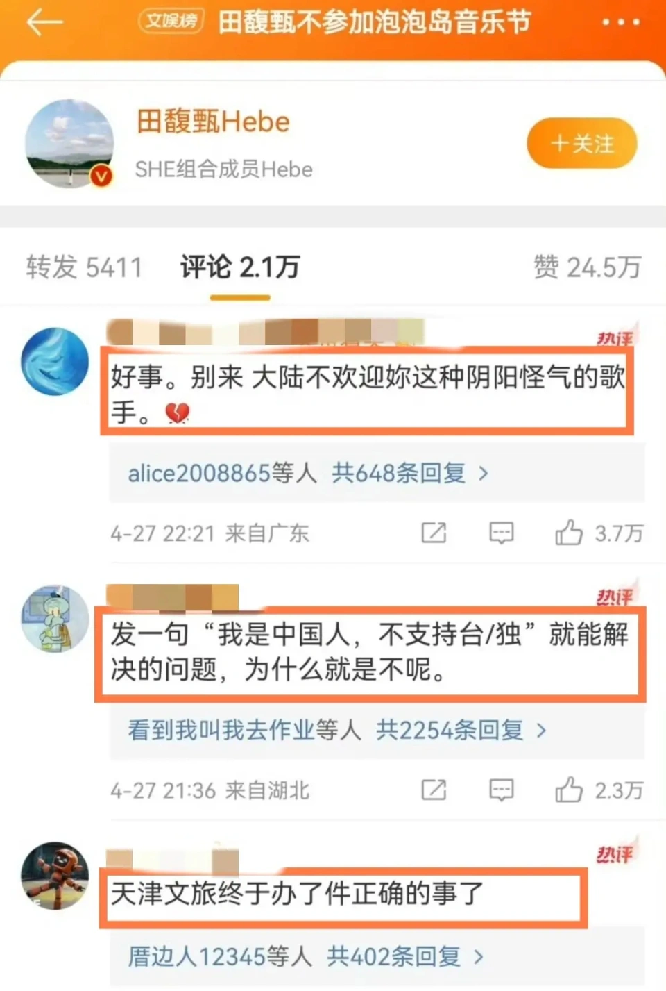 原定田馥甄内地复出的泡泡岛音乐节,在巨大的舆论压力和网友的剧烈抵抗声中被迫取消了,对此还田馥甄表现下一次相遇就是最好的时候。固然明眼人都知道田馥甄被天津文旅退货,但是她还是在只管维持外貌的面子。 在田馥甄公布不到场天津音乐会博文下批评分化非常严峻,大部门网友留言批评:国家眼前无偶像,大陆不欢迎这种阴阳怪气的歌手,天津文旅终于干了一件民怨沸腾的事情。 也有粉丝群体留言力挺:在相遇就是最好的时候,期待在香港相遇。 除了泡泡岛音乐节外,田馥甄还官宣了6月份的香港音乐节。 眼看着香港音乐节将至,其批评区下又是一如既往地陷落了,浩繁网友纷纷留言抵抗田馥甄:天津都取消了,香港还要继续吗?田馥甄会在香港唱响《义勇军举行曲》吗? 以致尚有网友隔空喊话郭晶晶,盼望她可以去和霍启刚沟通一下,反对田馥甄去香港到场音乐节。 实在关于不当言论,田馥甄也曾在采访中回应过,她表现自己平常性格非常孤僻,动态内容都是表达自己的心情和状态,并没故意有所指大概阴阳怪气。 之前田馥甄在官宣天津泡泡岛音乐节的时间,她还被指出偷偷的删掉了主理方文案中的“一家人”,一边想复出捞金一边又暗戳戳地搞小动作,吃相真的不太丢脸了。 之后针对田馥甄取消大陆演出一事,田馥甄妈妈表现,感谢各人的关心,田馥甄没标题,灵活烂漫就好。 几天后好姐妹Ella在到场线下运动的时间,也被记者问到了关于田馥甄被退货的事情。面临记者犀利的提问,她表现关于这件事田馥甄已经回应过了,以是她也不敢再多说些什么,但是会在私下问候关心田馥甄的。 对于Ella的回应,许多网友纷纷留言表现,Ella情商真的很好,说真话三观不合的朋友很难走远的,她们三个情同姐妹,实质上都是一样的人。只是我们内地的钱更好赚,谁会莫名其妙地和钱过不去呢。 当年Ella是团内里最不起眼的成员,颜值身材都不如田馥甄。 作为气质文艺女神的田馥甄被林豪杰穷追猛打,怎样她孤芳自赏、自视狷介压根看不上,效果时至本日她还是孤身一人,相反Ella当机立断找了个爱她的老公还生了个可爱的孩子,家庭幸福美满。 Ella嗓音条件和创作能力也没有田馥甄好,之前一首《小幸运》横空出世,一举拿下多个金奖,现在却由于态度标题无缘内娱舞台。而Ella靠着高情商和真性情在各种综艺中频仍露脸,代言接得手软,内地路因缘也好的不得了,妥妥的奇迹爱情双丰收。 实在自始至终都没有人逼着田馥甄亮相,只是她自己作死来摸索观众的底线,纵观两岸三地有品行有实力的歌手一抓一大把,也并不黑白田馥甄不可。从艺先从德,态度态度有标题的明星艺人,到哪都会遭到抵抗,广大网友的眼睛是雪亮的。 |