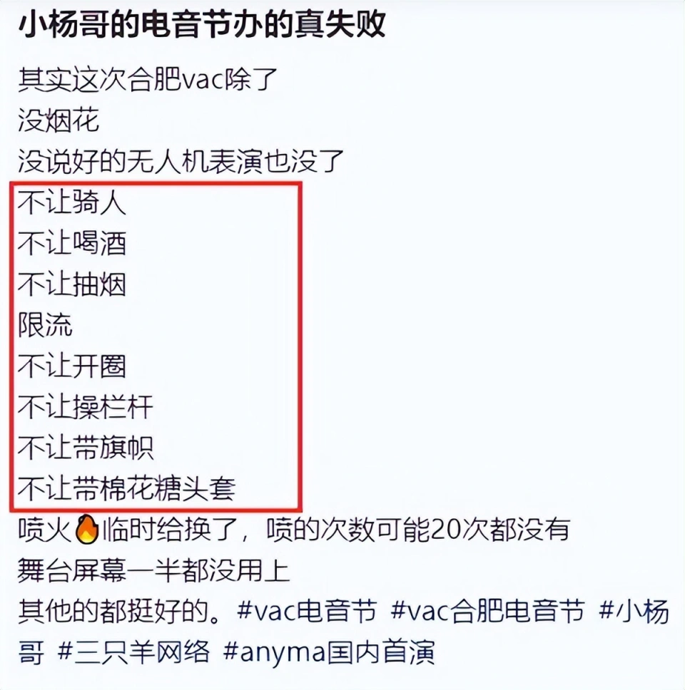 目前小杨哥的工作重心已经不在直播带货上,而是回归老本行拍起短剧来。不光如此,小杨哥貌似还有进军音乐界的打算,看来他对娱乐圈真是相当感爱好。 5月3号到4号,小杨哥在合肥骆岗中心公园举行了一场电音节,可谓声势浩大,吸引了不少年轻人前来欣赏。据说小杨哥这次但是下了“血本”,花费将近半亿打造最强电音节。 恰恰是五一假期期间,各人出行旅游的高峰期,许多观众都是从四周八方各个城市特地赶来的。活动现场非常火爆,人山人海座无虚席。 小杨哥的电音节在肯定程度上动员了合肥的旅游业,为当地文旅做出了巨大贡献,这点还是值得肯定的,以是有关部分表现非常接待。 据悉小杨哥约请的都是行业内重量级着名流士,DJ明星非常多,喜好电音的粉丝们终于可以一饱耳福。 而且无论灯光还是音响,都投入了大量资金,给各人提供了一场视听盛宴。相比于同一时期也在举行活动的具俊晔来说,小杨哥的电音节简直天花板级别。 别的陈浩民夫妇还有李晨等着名艺人也来到现场助阵,替小杨哥摇旗哗闹,给电音节增色不少。 在这里只能说资源的力气真是强大,在“钞本领”面前谁都得低头。所谓的明星大腕在某些大网红面前,早已不再像以前那样高高在上,而是不得不收起本身的傲慢和偶像包袱。 如今的现原形况就是,许多艺人有时还得给网红打工,尤其是那些过气明星。假如以后小杨哥想要继承拍短剧视频,或者是选择进军娱乐圈,没准还会约请明星艺人给本身恭维,成为他们的老板。 这个变化莫测的网络期间,给了我们平凡人更多发展机会,乃至还有大概逾越明星,成为他们的雇主,这也够有意思的。 固然小杨哥投资不少,各种硬件装备还都不错,职员方面也是可圈可点,不外还是有一些瑕疵,引起网友的吐槽。 附近有些住民反应,在十几公里以外就能听到声音,表现有点扰民难以忍受。不外也有网友称本身在附近五公里,并没有听到什么声音。不知道真原形况就是很喧华,还是有人故意抹黑。不外电音节到十点左右就竣事了,应该不会造成多大影响。 还有网友吐槽活动现场商品的代价太贵,纯净水就要20元。 实在这点还真不好说,雷同活动的商品代价都不自制,当光阴晨宇的火星演唱会,也曾有人吐槽商品代价虚高。 别的还有网友反应没有无人机演出,没有烟花秀,还不让做许多变乱,表现有点扫兴。 像这种大型活动,算得上是首次举行,有什么做得不好的地方也是正常的。小杨哥下次再举行雷同活动的话,结果应该会更好一些。 小杨哥作为直播网红的代表,如今已经开始徐徐转型,不知道这是否是一个信号,其他头部带货主播也会跟着有其他举措呢? |