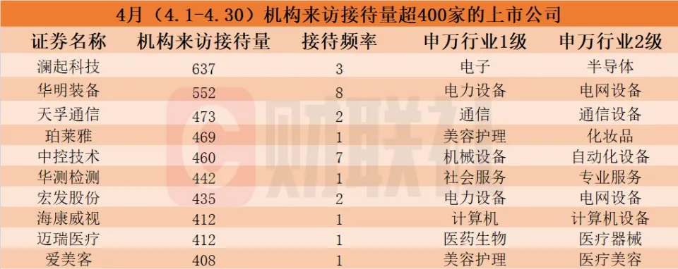 财联社5月5日讯(编辑 若宇)据Choice数据统计,4月1日至4月30日收盘期间,包罗澜起科技、华明装备、天孚通信、珀莱雅、中控技能、华测检测、宏发股份、海康威视、迈瑞医疗和爱美客在内的10家上市公司机构来访欢迎量超400家,详细情况见下图: 相较于财联社此前梳理的4月1日至4月13日机构来访欢迎量超200家的上市公司,此次名单中新增华明装备、天孚通信、珀莱雅、中控技能、华测检测、海康威视、迈瑞医疗和爱美客。(详细详见财联社4月13日深度报道:4月以来这些上市公司被“踏破门槛”!固态电池概念股获机构组团调研,机构欢迎来访量居前的个股名单一览) 此中,华明装备4月机构欢迎量达552家,公司4月18日公告,一季度业务收入4.51亿元,同比增长9.40%;归母净利润1.27亿元,同比增长7.59%。华明装备4月29日发布机构调研,通常一季度都是整年收入最低的一个季度,今后根本上每个季度都是环比持续提升,只要当年不在行业的拐点上,根本上都可以保持这一趋势。本年一季度公司核心业务电力装备同比增长14.6%,依然维持在较快的状态。别的,华明装备客岁10月底签署了批量化贩卖的订单,现在产物的技能考核已通过,但还没有交付完毕,也没有现场投运,背面比及运行肯定时间后才气慢慢提升份额。二级市场方面,华明装备自2022年4月低点迄今股价累计最大涨幅达349.17%。 光模块龙头天孚通信4月机构欢迎量达473家,公司4月23日公告,一季度业务收入7.32亿元,同比增长154.95%;净利润2.79亿元,同比增长202.68%。公司业务收入增长主要是AI技能的发展和算力需求的增长,举世数据中央建立带动对高速光器件产物需求的持续稳固增长,尤其是高速率产物需求增长较快,带来公司收入同比增长。天孚通信4月23日接受机构调研,答复“2024年公司外洋产能筹划?”的提问时体现,公司在泰国建立的一期生产基地厂房预计于本年5月开始试生产,会根据客户的认证进度加速外洋业务的扩产,尽快实现海表里多生产基地的布局。二级市场方面,天孚通信2022年12月阶段性低点迄今股价累计最大涨幅达633.52%。 华测检测和海康威视同时拥有无人机概念,4月机构来访量分别达442家和412家。华测检测4月24日披露机构调研,公司较早布局航空服务范畴,早在2019年得到了中国商飞及格供应商证书,是中国商飞、中国商发承认的第三方检测实行室。从检测能力上来说,华测可为民用有人驾驶和无人驾驶航空器等提供包罗情况可靠性试验、电磁兼容试验、有害物质检测等多项检测、认证、评估等服务,在低空经济全产业链技能服务范畴形成了先发上风。海康威视4月20日接受机构调研,克制现在,公司人工智能开放平台上已累计注册用户2.4万家,面向用户生成超过10万个模子,并在100多个行业2.2万多个项目中落地。海康威视4月25日在互动易复兴,公司近日取得“无人机飞行任务实行判定方法、装置及体系”专利,干系技能应用在公司无人机产物中。 珀莱雅和爱美客同属于扮装操行业,4月机构来访量分别达469家和408家。珀莱雅4月22日发布2023年度业绩说明会合会会议纪要,公司2023年业务收入89.05亿元,同比增长39.45%,归母净利润11.94亿元,同比增长46.06%。主要系公司线上渠道营收同比增长;主品牌珀莱雅营收同比增长;子品牌彩棠、悦芙媞、Off&Relax营收同比增长。“医美茅”爱美客4月25日接受机构调研时体现,在研项目中,注射用A型肉毒毒素、医用含聚乙烯醇凝胶微球的修饰透明质酸钠凝胶现在处于上市申报阶段;第二代面部埋植线、利多卡因丁卡因乳膏处于临床试验阶段;司美格鲁肽注射液、注射用透明质酸酶等产物处于临床前阶段。 别的,人形呆板人概念股中控技能同期机构来访量460家。中控技能4月29日披露机构调研,呆板人板块重点围绕人形呆板人、物流与包装类呆板人、智能巡检与视觉呆板人等核心业务方向,持续发掘细分场景应用,渐渐创建面向流程工业的呆板人全场景解决方案体系,并通过多种途径重点围绕移动式巡检、固定式巡检、仓储物流呆板人快速创建符合公司业务发展战略与需求的产物体系,同时深化“AI+呆板人”范畴的投入布局,积极孵化人形呆板人产业,形成产物上风与技能壁垒,全面提升影响力。 医疗器械概念股迈瑞医疗同期机构来访量412家。迈瑞医疗4月29日披露机构调研,欧盟将针对中国医疗器械启动观察的消息中提到对中国医疗器械到场欧盟采购调用国际采购工具(IPI)。据公司相识,IPI影响的是招标采购金额在500万欧元以上的货品和服务,而迈瑞现在在欧盟到场的全部单个招标采购条约金额均远远低于500万欧元,因此调用IPI不会对迈瑞到场欧盟采购造成任何影响。 (财联社 若宇) |