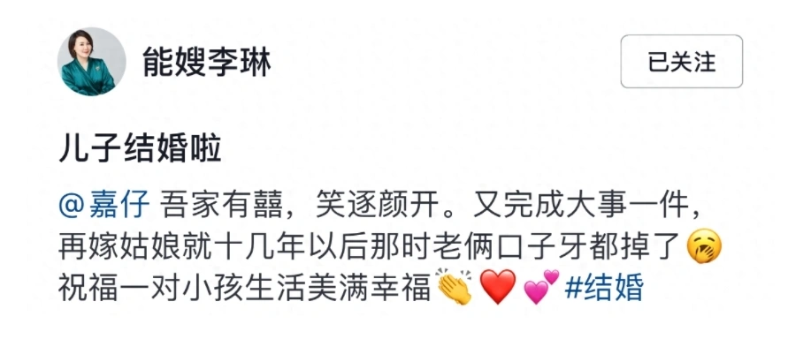 5月3日晚,《墟落爱情》中“谢兰”的扮演者李琳,在个人外交平台晒出儿子王梓嘉的完婚照,官宣儿子大婚。 众所周知,在电视剧《墟落爱情》中,隐蔽着多对真实夫妻。 剧中的谢兰是谢广坤的女儿、皮长山的老婆,但在实际生存中她的丈夫则是剧中“刘能”的扮演者王小利。 看到这里,有网友大概会有疑问,王小利的儿子客岁不是完婚了吗? 没错,客岁完婚的是大儿子王亮,日前办婚礼的是小儿子王梓嘉。 对于李琳来讲,这两个孩子照旧有显着区别的,王亮是继子,王梓嘉是亲儿子。 看到小儿子立室立业,李琳也不由得感慨了一番,可谓是“吾家有喜,笑逐颜开。” 李琳和王小利完婚后育有一子一女,加上继子王亮一共三个孩子。现在两个儿子都完婚了,女儿还小,完婚应该到十几年以后了。 李琳不禁感叹,到当时她和王小利“两口子牙都掉了”。 婚礼当天,王小利身穿中式黑马褂,搭配白色衬衫,留着小胡子,看上去沧桑了不少。 李琳穿着大赤色裙子,显得格外喜庆。 与宗子王亮完婚时相比,王小利次子王梓嘉的婚礼要低调很多,从婚礼现场来看,当天应该只有两边的嫡亲好友到场。 现场画面表现,婚礼舞台两侧稀稀拉拉,镜头不停都在对准舞台,很少拍到观众席。 当王小利李琳带着亲家亲家母登台时,现场只有零星的掌声,可见当天到场婚礼的人不多。 很多拍客晒出的视频中,不少网友都在扣问王亮有没有到场婚礼,得到的答案都是否定的。 对于王亮的缺席,公众着实并不感到意外。 就在今年春节期间,王亮突然在直播间发飙,声称要和王小利断绝父子关系,并作出今后“父子不见”的答应。 谈到缘故因由时,王亮又把矛头对准了继母李琳。 这个他口中千好万好的“琳琳妈”,转眼变成了蛊惑父亲的“小妲己”,看着王亮歇斯底里的样子,想必父亲王小利也会百感交集吧。 听说当时照旧师爷赵本山跟王亮通了电话,这件变乱才算是暂时告一段落。 着实,王亮应该感到知足。 王亮完婚时,身为后妈的李琳给这位非血缘关系儿子又买房又授室,还为他操持了谨慎的婚礼,就是怕他多心、多想。单从这一点李琳已经做得很到位了。 王小利成名以后,不停在积极扶持王亮,鼓励他到场笑剧节目,父子俩也常常合拍一些搞笑段子,他们一家三口还曾多次登上过地方春晚的舞台。 对王亮,王小利和李琳可谓是尽心尽力。 这次王小利的次子完婚,很多网友又开始酸了,说大儿子完婚时谨慎举举动了收礼,到小儿子这变得低调了,这就是亲儿子和后儿子的区别。 着实大可不必。 如果把大儿子和小儿子交换一下,王亮完婚时低调举行,王梓嘉完婚时大操大办,各人以为舆论会放过王小利李琳两口子吗? 继母难当,这一点谁都清晰。亲儿子可以打可以骂,不会记恨你,没有血缘关系自然是打不得骂不得。 关键没有血缘关系的儿子自己自己就感觉不得劲,生理脆弱,总感觉到处被针对。 而很多变乱家长恰恰是怕他多想,这大概也是原生家庭造成的吧。 小儿子婚礼竣事后,李琳的文案有一句话我感触特殊深,他写得是“又完成大事一件”,她用了一个“又”字,说明第一件大事是大儿子王亮完婚,第二件大事是小儿子王梓嘉完婚。 然后再过十几年嫁姑娘。 可见,李琳不停都没有把王亮当外人。有句话说得好,家和万事兴,盼望他们一家人能早日摒弃前嫌,不要让外人看笑话。 |