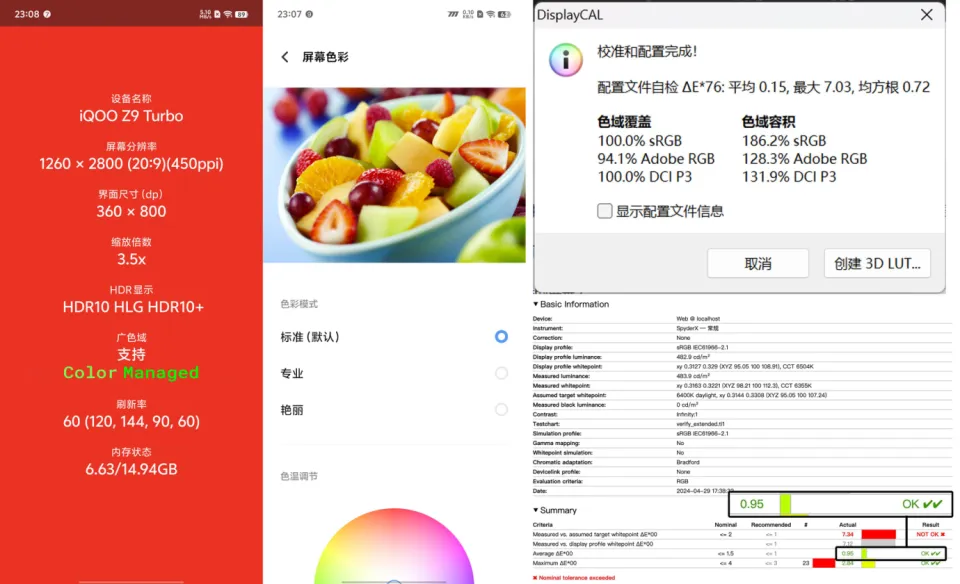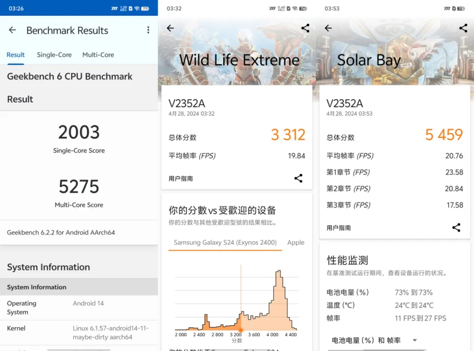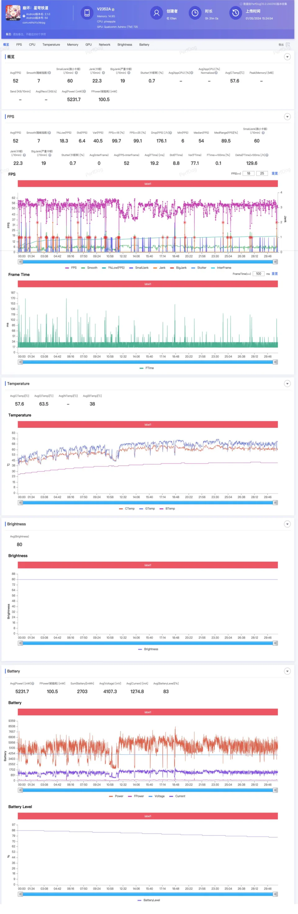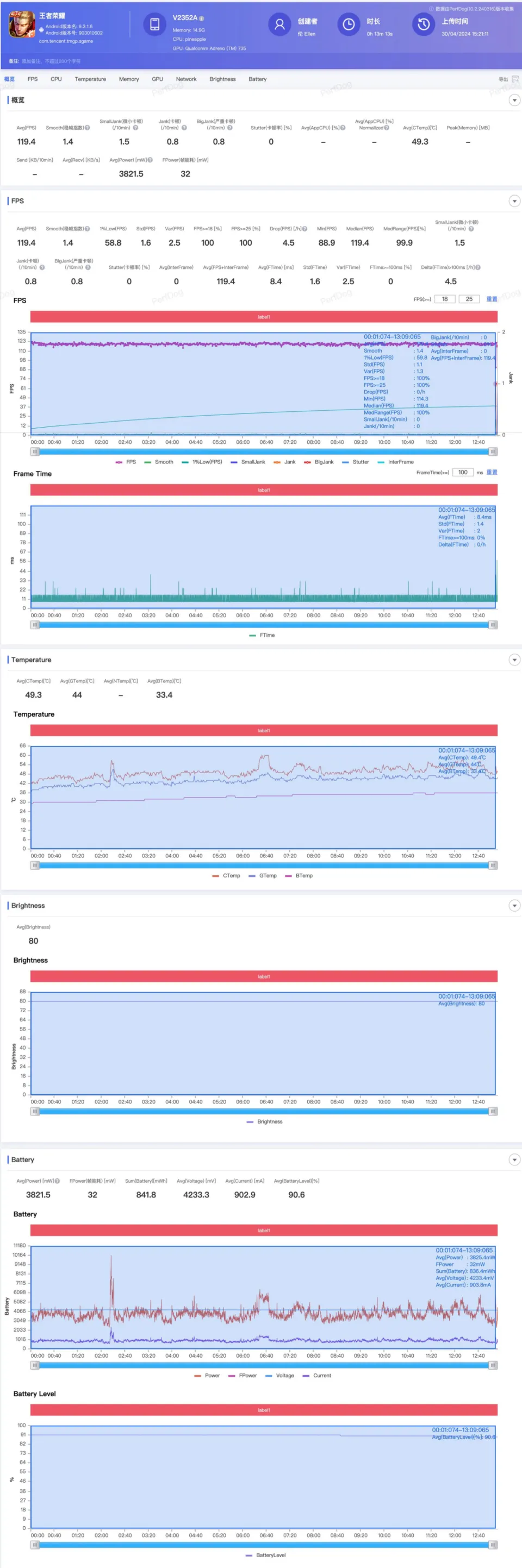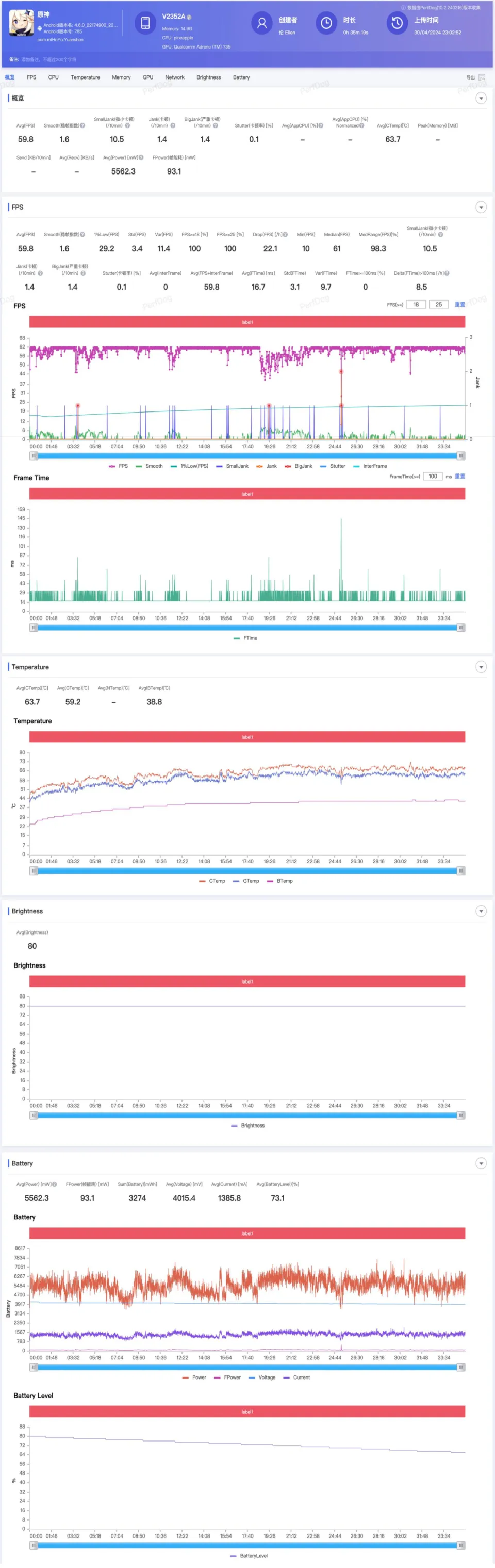 在iQOO的百口族产物线中,曾经的Z系列固然也有同价位不错的产物力,但在网络上声量却并不算大。 前些年,各人对中端机的认识还停顿在“高端拼技能,中端拼刀法,低端凭本心”上,好像听起来做一款中端机并不需要厂商很高的技能,各人也都将对技能的留意力更多放在高端旗舰上去。 但在我用过一段时间最新的iQOO Z9 Turbo、也是我第一次用iQOO的Z系列之后,我倒是有了更深刻的认识。 iQOO Z9 Turbo包装盒的筹划固然有点照搬Neo9猜疑,乃至顶盖只写了个iQOO Z而不知道哪一款机型,但团体处置惩罚的倒没那么像中端机型—— 没有像大多中端机型一样“环保”到从包装盒上抠资本,属于是恰到好处吧。固然没有易撕贴,包装盒的处置惩罚倒没有省去外貌凹凸处置惩罚的工序;虽没有单独给掩护壳装盒,但也给手机预备了专门的塑料固定托盘…… 除了iQOO Z9 Turbo外,该有的配件一个不少: 80W FlashCharge充电器、USB Type-C数据线、快速入门指南、取卡针、透明软掩护套,出厂已贴好高透贴膜。 FlashCharge充电头为单USB Type-A口,大小中规中矩,型号为V8073L0A1-CN,最大输出功率约80W(11V 7.3A),由东莞奥海科技代工制造。 数据线是USB Type-A to Type-C,长度约1m,最大电流8A在靠近Type-C一端有标注。 没有像iQOO旗舰一样配双头Type-C线和Type-C头,而是选择了兼容性更好的Type-A套装。 撕去手机外层掩护的透明磨砂膜,便可以看到iQOO Z9 Turbo真身。 前代正代Z8屏幕附近的塑料支架,已经在Z9 Turbo上消散,正面颜值刹时就来到了中端机火线。 来到反面,iQOO Z9 Turbo这次把iQOO 12的“万里舷窗”给“高端筹划平常化”了,离远点鉴机,谁看了不含糊啊。 固然,产物定位和资本受限,相比iQOO 12的玻璃后盖,Z9 Turbo就只能更换为高情商叫做磨砂质感的聚碳酸酯,Deco的火山口凸起弧度也给放平了,但边沿的弧度处置惩罚肯定得有。 不外Deco部分处置惩罚并没有“受限”,边沿高光框、外圈刻度纹理,以及内部镜头附近的涡轮纹路、反光圈、OIS标等等都很过细。 直角中框同样也是聚碳酸酯的,有倒角处置惩罚,但团体都是磨砂质感的。 顶部分别是副麦克风开孔、红外遥控传感器; 右侧面的一体长条音量键、电源键,手感紧致不松垮; 底部分别是6个椭圆形扬声器开孔、USB Type-C接口、底部扬声器开孔、双面SIM卡槽。开孔没有程度对齐,不外在这个价位我这么说,掖掖仪逼迫症的挑刺举动。 无论是按键还是SIM卡槽,和边框之间肉眼险些看不出任何色差。 开机激活进入桌面,嗯,连2024年的中端机都已经可以做到这么窄的黑边了。 惋惜曜夜黑配色从正面看,还是输给了山野青、星芒白,究竟后两者的边框和屏幕差异色,会显得正面“瘦了一圈”。 这块6.78英寸OLED直屏,采取了华星光电最新的C8基材,分辨率为1260 x 2800,屏幕比例为20:9,屏幕革新率最高144Hz,没有上“薛定谔省电”的LTPO。 根据官方数据,HDR 峰值亮度可到达4500nit。 支持广色域,内置色彩管理,设置中可调治三档色彩模式(标准、专业、艳丽)。支持HDR10、HLG、HDR10+,惋惜不支持杜比视界。 实测艳丽模式下,色域覆盖可达100%的sRGB和100%的DCI-P3,色域容积到达了186.2%的sRGB和131.9%的DCI-P3; 实测专业模式下,匀称ΔE色准到达了0.95,已经是良好的程度了,中端机型很少能到达这个程度。 不愧是华星C8,相比同价位机型在屏幕上险些是全方位的领先了,就差做个杜比支持了。 屏幕革新率在系统内映射了144Hz / 120Hz / 90Hz / 60Hz,可选 智能适配 / 标准 / 高 三个档位,高革新率下支持自界说高刷应用;高刷下画面静止约4秒后会降到60Hz。 触控采样率瞬时可达2000Hz,实测一样平常场景下最高130Hz左右,游戏场景下可开启高触控采样率,最高约300Hz左右。 屏幕分辨率提供两个档位:超清(2800x1260) / 高清(2400x1080),无智能切换。 表现增强支持视效增强和视频插帧。 在护眼方面,iQOO Z9 Turbo直接一次卷俩:3840Hz超高频PWM调光和全亮度类DC模式。 固然,为了色准和功耗思量,实测默认状态下40%以下低亮度是1920Hz~2160Hz级别的高频PWM,高亮度为类DC调光,也不算伤眼了; 固然如果你需要更极致的护眼,则可以在开辟者选项中选择低亮度防频闪调光,便可以自行选择是要全亮度类DC还是3840Hz超高频PWM,全亮度类DC开启后相册App不再支持XDR表现。 固然,个人建议把这一项直接放在护眼设置中。 iQOO Z系列一贯在性能上不说有多好,但至少是同档火线的程度。 这次在iQOO Z9上又Turbo了下,性能固然也得更强——第三代骁龙8s领衔,同LPDDR5X + UFS 4.0构成了新的性能铁三角。 这个第三代骁龙8s在定名上争议不小,究竟在手机范畴的“s”大多都代表着super一意,效果高通愣是把8s这个s上砍刀做成了slim。 但你说,它纵然是slim,也是在本年介于第三代骁龙7+和第三代骁龙8之间的定位的,性能大概靠近前代的第二代骁龙8。 我们先对SoC的CPU部分进行测试。 Geekbench 6.2.2测试中,iQOO Z9 Turbo单核2003,和第二代骁龙8差不多;多核5275,和第三代骁龙7+差不多。 GPU部分,3DMark Wild Life Extreme得分3312,比第三代7+高出300分左右; 但第三代7+究竟还是7,不支持Vulkan 1.1,也就跑不了Solar Bay测试。 搭载8s、支持光线追踪的iQOO Z9 Turbo则没有这个顾虑,直接跑个5459分,乃至比骁龙8 Gen2还要高了。 GFXBench得分如下。 由此可见,实在这个8s还是高通起名部的佳构,可以明白为7++,但又下放了一点8系特性。 趁便看下能耗比情况,整机空载匀称功耗在0.49W左右; 性能模式下,CPU烤机整机最高约10.6