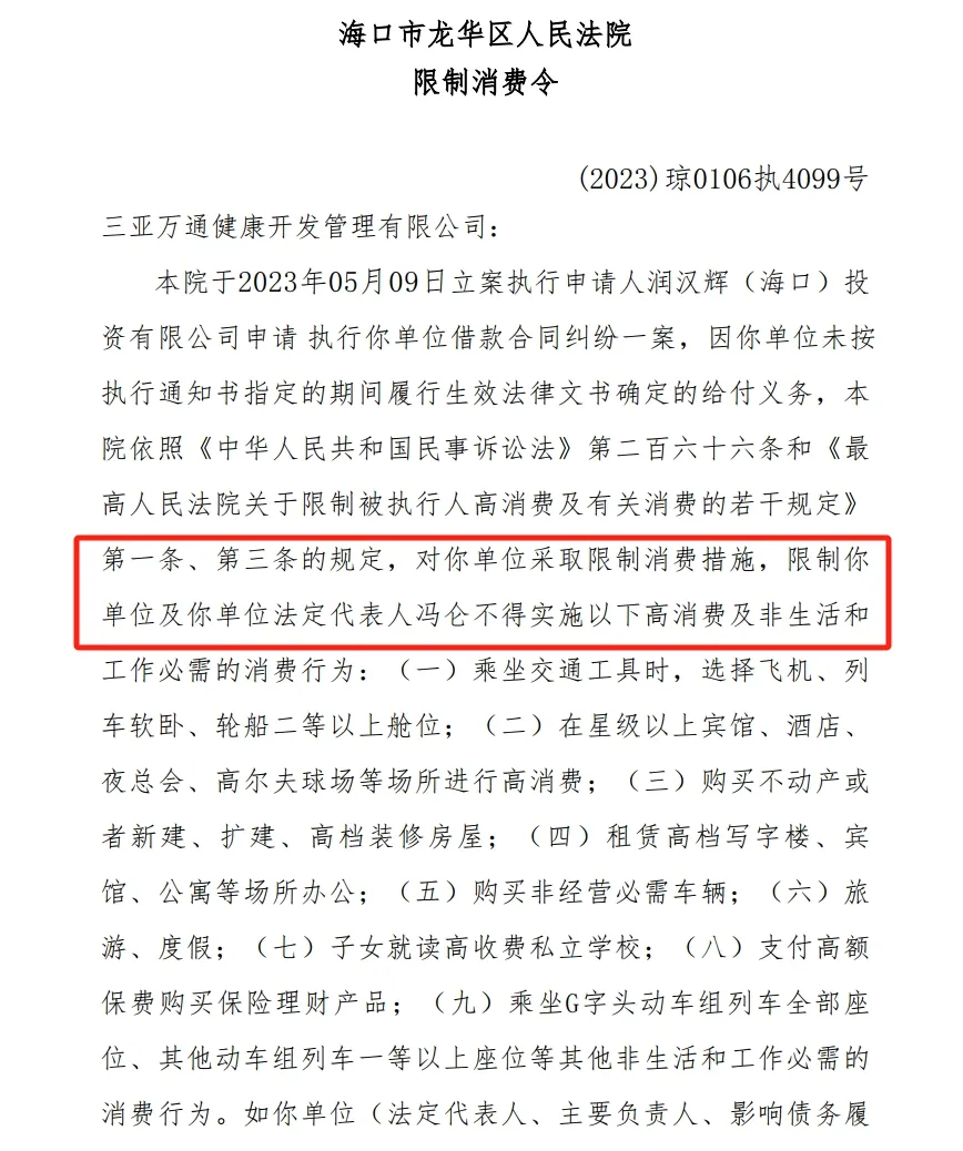 每经编辑:张锦河 据中国实行信息公开网,万通首创人冯仑克日被限定高斲丧,实行法院为海南省海口市龙华区人民法院。 此前,冯仑曾被列为被实行人。2023年3月7日,中国实行信息网表现,冯仑被列为被实行人,实行标的为2857.38万元,实行法院为北京市第四中级人民法院,实行案号(2023)京04执46号,立案时间为2023年1月13日。 2023年3月7日晚间,冯仑在微博转发风牛马社区微博回应本身成被实行人一事:网传「实行案件」系要求冯仑先生向笃瑕科技有限公司付出所谓「投资款」引起,但该等款子涉嫌系笃瑕科技有限公司实控人条约诈骗所得,现在该案已被公安正式刑事立案并在侦查中。 冯仑被限定高斲丧5月6日,海口市龙华区人民法院向三亚万通康健开辟管理有限公司发布限定斲丧令: 本院于2023年05月09日立案实行申请人润汉辉(海口)投资有限公司申请实行你单元借款条约纠纷一案,因你单元未按实行关照书指定的期间履行收效法律文书确定的给付使命,本院依照《中华人民共和国民事诉讼法》第二百六十六条和《最高人民法院关于限定被实行人高斲丧及有关斲丧的多少规定》第一条、第三条的规定,对你单元采取限定斲丧措施,限定你单元及你单元法定代表人冯仑不得实行以下高斲丧及非生存和工作必须的斲丧活动: (一)乘坐交通工具时,选择飞机、列车软卧、汽船二等以上舱位; (二)在星级以上宾馆、旅店:夜总会、高尔夫球场等场合举行高斲丧; (三)购买不动产大概新建、扩建、高档装修房屋; (四)租赁高档写字楼、宾馆、公寓等场合办公; (五)购买非谋划必须车辆; (六)旅游、度假; (七)子女就读高收费私立学校; (八)付出高额保费购买保险理产业品; (九)乘坐G字头动车组列车全部座位、其他动车组列车一等以上座位等其他非生存和工作必须的斲丧活动。如你单元(法定代表人、重要负责人、影响债务履行的直接责任职员、实际控制人)因私斲丧以个人产业实行前述活动的,以向本院提出申请。如你单元因谋划必须而举行前述克制的斲丧运动的,应当向本院提出申请,获答应后方可举行。 如违背限定斲丧令,经查证属实的,本院将依照《中华人民共和国民事诉讼法》第一百一十四条的规定,予以罚款、拘留;情节严重,构成犯罪的,依法追究刑事责任。 天眼查表现,三亚万通康健开辟管理有限公司创建于2016年,注册资源500万人民币,谋划范围包括康健产业投资,实业投资、投资咨询(不含金融和经济业务咨询)与企业管理咨询,养老养生物业开辟等,公司实际控制人、法定代表人、董事长均为冯仑。 冯仑曾与潘石屹坦言:25岁就赚了上亿美金据蓝鲸财经,2019年11月,潘石屹、冯仑聚首#潘谈照相间#聊起光辉光阴,解密“万通六君子拆伙实情”。潘石屹、冯仑公开坦言:咱们真是很年轻的时候就赚了许多钱。1995年前后,咱们匀称25、6岁就赚了上亿美金。冯仑直言:我们六人拆伙后,我看你们都像看前妻,你们好,我省心,你们不好,我闹心…… 万通发展官网表现,1991年。冯仑与潘石屹等“万通六君子”创建万通品牌。1993年,创建万通控股团体。1995年,“万通六君子”分开创业。2016年,嘉华控股增资31.5亿元,成为万通地产控股股东;同年受让冯仑持有的万通控股全部股权后,冯仑全部退出万通。汹涌消息报道,冯仑被称为“地产思想家”。 逐日经济消息综合自中国实行信息公开网、21世纪经济报道、蓝鲸财经、公开信息 相关阅读 |