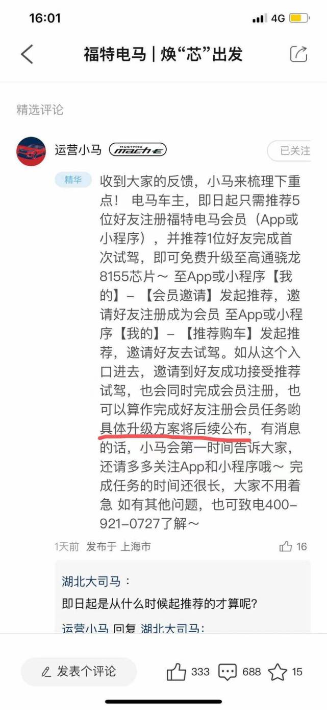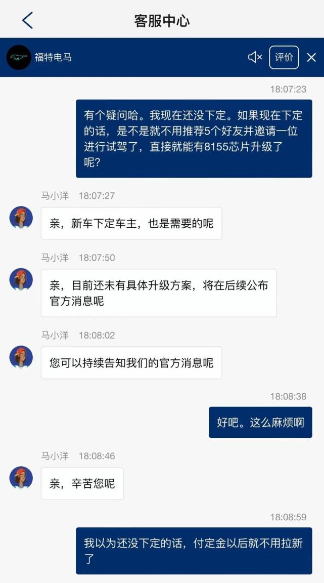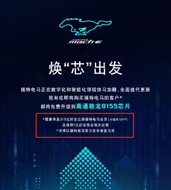 出品丨虎嗅汽车组 作者丨周到 编辑丨张博文 头图丨福特 曾经过于“帮”凯迪拉克和特斯拉卖车惹了一身贫苦的拼多多大概想不到,自己成了车企的学习模范。 在8月26日的成都车展媒体日期间,福特电动汽车奇迹部公布,将为现有或即将购买福特电马的用户将智能座舱芯片【免费】升级至高通骁龙SA8155P芯片(以下称“8155芯片”)。继极氪汽车在7月11日公布为现有车主免费升级8155芯片后,电马也参加了为既有用户免费升级的阵营。 车企乐意为用户,尤其是已经购车的智能汽车用户提升使用体验,笔者不停是持肯定态度。究竟在现在一片红海+内卷的智能汽车赛道,车企真得拿出“傻傻地对用户好”的态度,才有大概胜出。 不外翻开福特电马“焕‘芯’出发”的海报后,一行小字“不出所料”地表现,这统统显然没有那么简单。 砍一刀,升个级在福特电马发布了免费升级8155芯片后,不少媒体都给出了赞誉和洽评,早先笔者也是云云,直到我在8月27日下战书偶然中刷到了福特电马官方微博的一张海报: 现实上,本来笔者对该条款并没有更多关注,直到我的同事收到了一位电马老车主的微信消息: 显然,这位名为“古老板”的电马老车主,现在为了换上“本该属于”自己的8155芯片,正在微信里到处拉人“砍一刀”。在笔者印象里,上一次看到如许的微信消息,还是在家庭群里,尊长发来的拼多多提现链接。 只管费力集齐了拼多多要求的微信好友助力人数,但彼时笔者的家长仍然没能提现乐成。在线下提及这件事的时间,他免不得对远在上海的拼多多和其CEO黄峥老师一顿“祖安输出”。而这一次,古老板也是碰到了雷同环境。在为福特电马APP完成了5个拉新指标,并让一位朋侪近期前去试驾后,他在APP社群里看到了官方客服的如许一条消息: 也就是说,只管福特电马发布了8155芯片升级的消息,但究竟用户在什么时间才气到店安装都还是未知状态。究竟上在古老板扣问自己的服务专员时,后者也给出了同样的复兴。 更令人匪夷所思的是,如果按照海报的说法,纵然是缴纳了大定但还未提车的准车主,也都必要在完成拉新和保举试驾后才气得到8155芯片升级。按理说,硬件升级服务的对象应当是已经提车的老车主。还未提车的用户,为啥不能直接得到最新版本的产物呢? 对此,笔者恐怕冤枉了福特电马,赶紧在其APP上咨询。在等来了人工客服后笔者得知:就算是一位还没付出大定的埋伏用户,如果他选择购买了电马之后,如果想得到算力更强的8155芯片,也得走一遍拉新+约请试驾的流程。 这叫什么原理??? 显然,福特电马这一波堪称“疑惑”的操纵,是尽大概地发动用户的主观能动性,拉升其在华唯逐一款在售车型——Mustang Mach-E 的昏暗销量。在履历过一波波的团队职员换血后,百年福特在中国的电动化之路,正在向着死胡同的方向走去。 铁打的Mach-E,流水的团队在已往的2022年7月,我国乘用车新能源渗出率已经靠近27%,较客岁同期增长了11.9%。随着平凡汽车斲丧者对新能源汽车的担当度大幅提升,比亚迪、蔚来、小鹏、理想等企业吃到了一波实着实在的市场红利。 然而火热的中国车市对于福特电马的 Mustang Mach-E 来说,不能说是中流击水,最少也算得上是“毫无关系”。根据搜狐汽车的销量统计数据,这款车在已往12个月内除本年3月外,全部没有凌驾1000台。要知道,比Mach-E最高级别车型GT贵了近十万元的疾驰EQC,整年的销量都比前者多出一倍多。 在笔者看来,造成这统统的缘故起因有两个。起首,福特电马糟糕的质量和供应链。就在本年7月,福特蓝色马赫科技(南京)有限公司根据《缺陷汽车产物召回管理条例》和《缺陷汽车产物召回管理条例实验办法》的要求,受委托向国家市监总局存案了召回操持,自2022年8月1日起召回2021年10月28日-2022年3月5日生产的228辆玛斯丹牌Mach-E,2021年7月27日-2022年4月6日生产的547辆玛斯丹牌Mach-E。要知道,在客岁12月才开启交付的Mach-E,制止3月份在中国一共才交付了1851辆,这次召回的775辆占了总数的40%。 更不消说在6月,福特电马在其大本营美国,一共召回了48924辆Mach-E,并停息了新车交付了。 更要命的是,福特电马在华的电池供应链也在本年出了大题目,1月才交付了352辆新车。对此福特的表明是,Mach-E的NCM811电池只选用了比亚迪一家供应商,因疫情防控步调的影响,后者在西安工厂的电池无法转运至长安福特在重庆的整车厂。 打扫了疫情防控缘故起因,福特的供应商选择也令人玩味。要知道,比亚迪自己都由于NCM811电池的安全缘故起因选择为自家车型全系搭载磷酸铁锂电池,为啥福特电马非得“明知山有虎,方向虎山行”呢? 第二,频仍变动的团队和紊乱的营销体系。在2021年上海车展前夕,福特中国电动汽车奇迹部首席运营官兼Mach-E电动车负责人朱江,主持了这款车的上市发布会。这位在宝马、雷克萨斯和蔚来拥有良好工作履历的职业司理人,却在新车交付不到半年后,就官宣去职。 究竟上,朱江脱离福特电马的传言,远比官方消息来的要早。据虎嗅汽车从福特电马的一位消息人士处获悉,在朱江走后电动汽车奇迹部首席运营官的岗位不停空缺,福特电马的渠道/贩卖和市场/公关的两位负责人直接向福特汽车(中国)电动车奇迹部总司理柯福明(Mark Kaufman,德裔美国人)报告,直到本年4月尾新领导的就位。 故意思的是,新任的首席运营官——前smart中国市场贩卖负责人赵奕