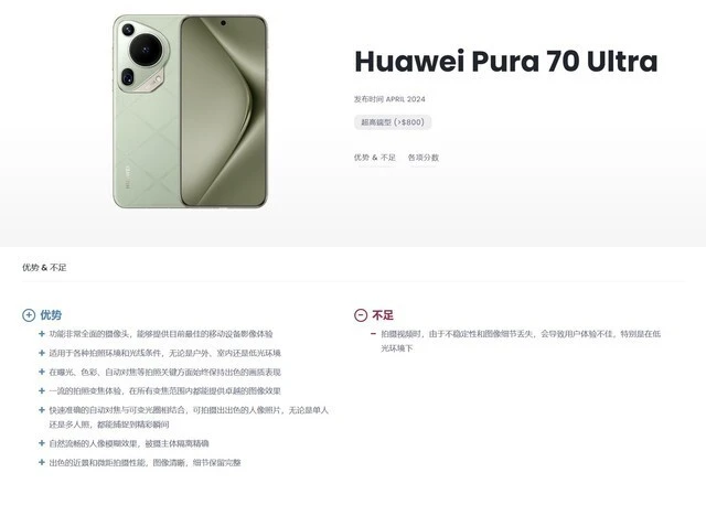 DXOMARK公布了华为 Pura 70 Ultra 的影像测试得分。其中照相得分169分、变焦得分164分、散景得分85分,在全部机型中排名第一,在别的两项视频和预览体现稍差。 而且根据测试效果,DXOMARK认为华为 Pura 70 Ultra 拥有非常多的优点,但是其在“拍摄视频时,由于不稳固性和图像细节丢失,会导致用户体验不佳,特别是在低光环境下。” 感兴趣的朋侪可以点击链接跳转DXOMARK官网查察更多细节。 (8704583) |