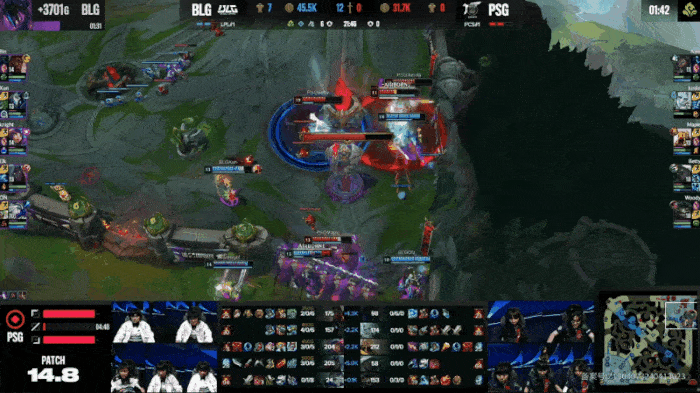 GAME1:BLG蓝色方、PSG赤色方 【Ban/Pick】 BLG禁用:兰博、泰坦、赛娜、卡牌、猪妹 BLG选用:Bin奎桑提、Xun皇子、knight阿狸、Elk卡莉丝塔、ON列娜塔 PSG禁用:寒冰、蔚、鳄鱼、赵信、猴子 PSG选用:Azhi厄加特、Junjia大树、Maple岩雀、Betty卢锡安、Woody娜美 【赛况简介】 2分钟,Bin奎桑提中路蹲到岩雀,皇子赶到收下一血 6分钟,BLG拿下首条小龙 8分钟,大树Q闪拍回卡莉丝塔,BLG下路二人阵亡 11分钟,BLG三人越上乐成,KnigtTP救下但未乐成 14分钟,BLG中野无敌团战大胜,14分钟打出0换5 Bin上路1v2比及队友,PSG上中阵亡元气大伤 25分钟,游戏结束 点击为本场选手锻练评分>>> GAME2:BLG蓝色方、PSG赤色方 【Ban/Pick】 BLG禁用:兰博、泰坦、赛娜、岩雀、沙皇 BLG选用:Bin鳄鱼、Xun皇子、knight发条、Elk卡莉丝塔、ON列娜塔 PSG禁用:寒冰、蔚、阿狸、赵信、猴子 PSG选用:Azhi奎桑提、Junjia大树、Maple龙王、Betty卢锡安、Woody娜美 【赛况简介】 2分钟,BLG下路二人强势越塔,奎桑提努力换掉列娜塔 4分钟,卢锡安鳄鱼对拼Bin拿下单杀,随后娜美落单也被鳄鱼击杀 6分钟,脚色互换,Elk卡莉丝塔被奎桑提留住单杀 10分钟,PSG中上赶赴下路,一换二委曲挽回局势 13分钟,下路3V3对拼,knight及时TP团克服利 PSG找到时机留住发条,BLG众人阵型不佳阵亡三人 20分钟,PSG再次抓到时机,龙王爽喷团灭BLG,随后拿下大龙 30分钟,游戏结束 GAME3:BLG蓝色方、PSG赤色方 【Ban/Pick】 BLG禁用:兰博、泰坦、赛娜、沙皇、龙王 BLG选用:Bin奎桑提、Xun猴子、knight岩雀、Elk卢锡安、ON娜美 PSG禁用:寒冰、阿狸、卡莉丝塔、猪妹、赵信 PSG选用:Azhi厄加特、Junjia蔚、Maple妮蔻、Betty泽丽、Woody璐璐 【赛况简介】 2分钟,下路猛烈换血,蔚来下逼出BLG二人组闪现 5分钟,Maple妮蔻蹲守下路,幽默大招掷中0人 8分钟,PSG三人越下击杀卢锡安,娜美走位换掉蔚 卢锡安中路求战心切,泽丽超限爆闪线杀BLG下路 13分钟,卢锡安贪心再被抓,PSG轻松再拿一人头 16分钟,蔚果断开团PSG众人跟上,团战大胜0换3 19分钟,妮蔻开团有来无回,卢锡安双招尽交保住性命 24分钟,游戏结束 GAME4:PSG蓝色方、BLG赤色方 【Ban/Pick】 PSG禁用:阿狸、卢锡安、韦鲁斯、卡牌、发条 PSG选用:Azhi奎桑提、Junjia猪妹、Maple岩雀、Betty伊泽瑞尔、Woody艾希 BLG禁用:兰博、赛娜、卡莉丝塔、泰坦、泽丽 BLG选用:Bin薇恩、Xun蔚、knight岩雀、Elk霞、ON洛 【赛况简介】 3分钟,BLG四越一应对换线,奎桑提无处可走塔下阵亡 7分钟,薇恩孤独守下,PSG下野辅协力击杀薇恩 14分钟,洛魅惑打断岩雀逃生之路,沙皇收下人头 16分钟,沙皇推人未遂卡住自己,中野一换一 23分钟,BLG逼大龙EZ大招伤害打满,PSG拿龙又杀人 27分钟,中路对拼Elk霞闪现向前,无奈被困绕团战大北 31分钟,游戏结束 GAME5:BLG蓝色方、PSG赤色方 【Ban/Pick】 BLG禁用:泰坦、岩雀、蔚、赵信、兰博 BLG选用:Bin奎桑提、Xun千珏、knight妮蔻、Elk韦鲁斯、ON寒冰 PSG禁用:阿狸、卡莉丝塔、列娜塔、龙王、飞机 PSG选用:Azhi乌迪尔、Junjia破败王、Maple沙皇、Betty赛娜、Woody塔姆 【赛况简介】 4分钟,乌迪尔上头对拼被抓,千珏拿下一血 9分钟,Azhi乌迪尔再次给出时机,BLG上野共同再拿击杀 11分钟,BLG五人强越上塔,轻松一换四 15分钟,千珏开大保住性命,妮蔻乘隙出场击杀两人 Elk博弈更胜一筹,沙皇推空PSG退却 21分钟,奎桑提莽进高地塔,PSG终于开张拿到第一个人头 23分钟,游戏结束 泉源: 虎扑 |