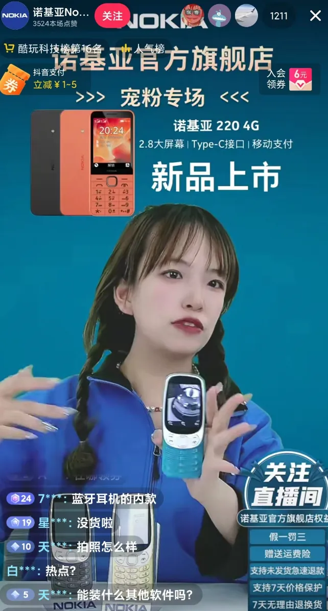 5月9日晚,无数网友涌入诺基亚的官方直播间,扣问“尚有3210吗?”“3210有吗?” 此时,小黄车链接体现“3210”款手机已经售罄。主播在先容其他产物的同时,也抽闲回答评论称:“3210已经售空了,全平台都没有了。” 但刷“3210”的人太多,主播便开启了预售模式,预售价379元,但预售名额很快就被抢空。面对网友的猛烈需求,主播不绝回答:“我们也没办法……会想办法补货。” 九派消息搜索淘宝和京东平台发现,当晚诺基亚3210款手机已全部售罄。 5月8日,诺基亚发布新品手机,称:“诺基亚3210全新升级,还是那味儿。经典复刻,智能升级。” 上述商品的详情页先容,1999年,经典的诺基亚3210问世,随即风靡举世。现在回归的复刻版3210,一大亮点是将充电口更改为Type-C,并且支持移动付出。 和智能机相比,诺基亚3210的功能并不齐备,详情页也先容,该款手机的受众为“备用机群体”和“学生群体”。 自诺基亚发布消息之后,网上掀起了一波“追念杀”。多名网友分享自己和诺基亚的故事:“我的第一个手机就是诺基亚3210,灵巧又聪明。”“梦回1999,我那时间刚高中毕业。”“这不是手机是青春啊。”“满满的情怀啊。” 在诺基亚3210的干系视频下面,不少网友体现“心动”。也有人讥讽,“我比力关心能不能砸核桃”“等我先归去把我的全能充找到就买”。 但也有人质疑,花几百元买如许一个手机“不划算”。有人以为诺基亚出复刻款手机,分析其没有创新力。然而,也有不少人在评论区里许愿诺基亚复刻其他机型。 九派消息记者 温艳丽 编辑 任卓 王佳箐 【来源:九派消息】 |