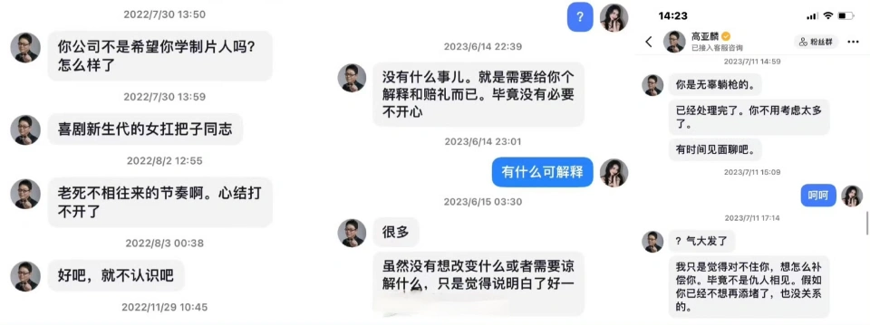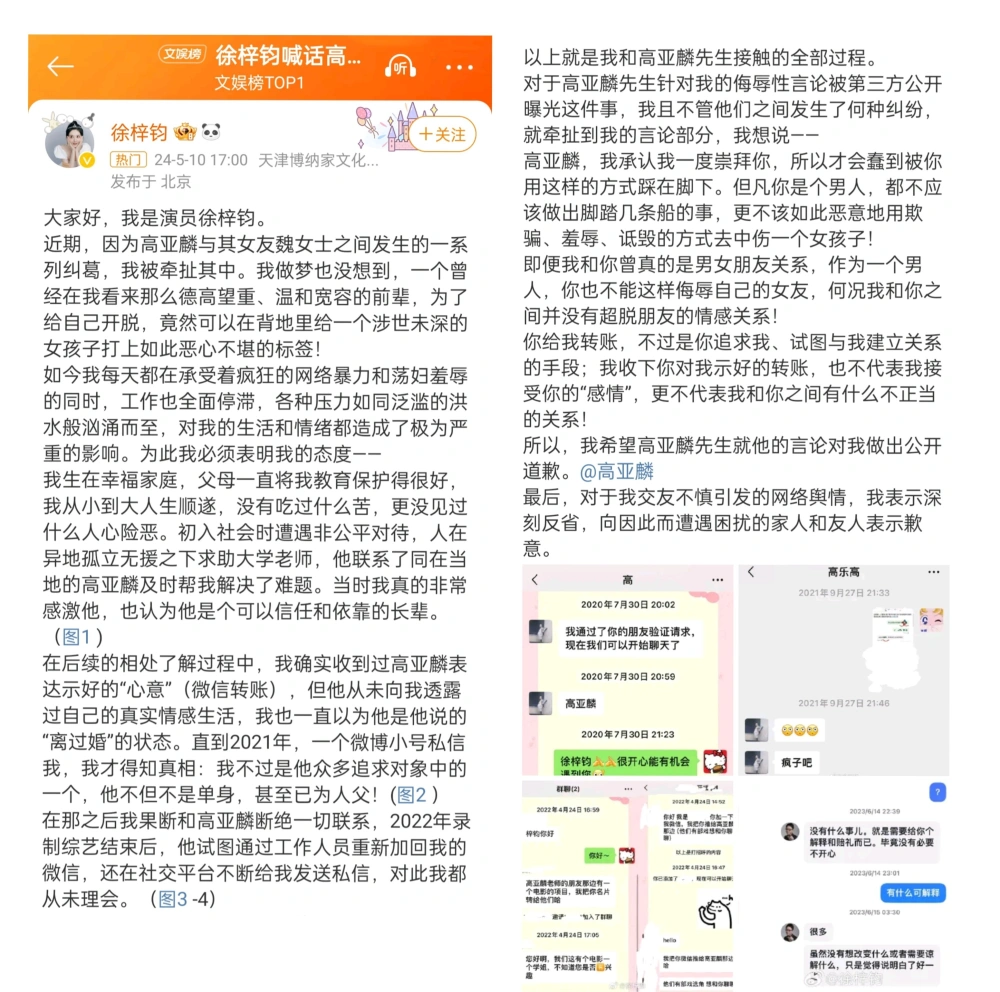 还以为高亚麟出轨事故,随着孩子上户口的题目已经尘土落定。 实则并没有,由于高亚麟和被曝光的第三方徐梓钧并没有回应。 19年前,高亚麟因扮演景象喜剧《家有儿女》里夏东海一角而火遍天下。 他也在拍续集的时候,认识了小他11岁的前妻时玮,两人坠入爱河,2008年登记完婚。 直到魏嘉曝光高亚麟爱情期间家暴出轨的丑闻,大家才知道原来高亚麟和时玮早就离婚了。 魏嘉比高亚麟小20岁,和高亚麟在一起后就怀了他的孩子,但并未完婚。 在魏嘉有身5个月的时候,高亚麟曾家暴她,动手掐她脖子,扇她耳光。 同时高亚麟出轨了比他小26岁徐梓钧,两人因工作认识,也一起上过节目。 徐梓钧是关晓彤在北电的同班同砚,丑闻曝光后,网友调侃她没有眼光。 “都是同砚,关晓彤谈了个顶流,而徐梓钧却谈了个老牛。” 在魏嘉公开的聊天纪录里,有高亚麟约徐梓钧用饭的证据,也有高亚麟给她多笔转账的纪录。 而这个所谓的“小三”,在高亚麟眼里不过是个玩物,被高亚麟形容成是“鸡”。 徐梓钧是知三当三,还是不知情下被当三,只有当事人最清楚。 魏嘉先是公开了孩子的抚养协议,原来高亚麟给了魏嘉在深圳的一套房,但房子归属孩子。 10号,魏嘉再次公开和高亚麟的短信聊天纪录,她搞出这么大的动静,无非是想给孩子上北京户口。 魏嘉发文说:“不是为了孩子上学上个户口,也不会有这场闹剧,负责任了我敬你是条男子。” 短信里,高亚麟回应魏嘉:“别的事变都会过去,该面对的都要面对,恰好可以大把时间办户口的事变了。” 高亚麟似乎想讨好魏嘉,但魏嘉明白拒绝不会复合,孩子她一个人会抚养,抚养费也做好了一分钱都没有的预备。 看似事变已经尘土落定,可大家都忽视了一个人,那就是徐梓钧。 10日下战书5点,徐梓钧发长文回应了“小三”传闻。 “一个曾经在我看来那么德高望重、暖和宽容的先辈,为了给自己开脱,竟然可以在背地里给一个涉世未深的女孩子打上云云恶心不堪的标签。” 徐梓钧表现自己每天都在遭受疯狂的网络暴力和荡妇羞耻,工作也全面停滞。 她初入社会的时候遭遇不公,是大学老师将高亚麟先容给她,她感激高亚麟的资助。 在相相互识的过程中,高亚麟为了向她示好,的确转过几笔钱。 徐梓钧直言,自己固然收下钱,但不代表担当他的“感情”,更不代表他们有不合法的关系。 而且高亚麟遮掩了自己有女友的毕竟,乃至已为人父,徐梓钧重新至尾都被蒙在鼓里。 更可气的是,徐梓钧是通过魏嘉公开的信息,才知道自己不停被高亚麟看成是“鸡”。 这份羞耻,徐梓钧无论如何也要向高亚麟讨回公道。 “高亚麟,我承认我一度崇拜你,以是才会蠢到被你用如许的方式踩在脚下。 但凡你是个男子,都不应该做出脚踏几条船的事,更不应云云恶意地用诱骗、羞耻、诋毁的方式去诽谤一个女孩子!” 然而面对徐梓钧的澄清发文,网友并不表现怜悯,纷纷质疑她: “既然不担当高亚麟的感情,为什么要担当他的钱?” 高亚麟不停沉默冷处置处罚肯定不可,出来混早晚要还的。 魏嘉曝光高亚麟只是为了孩子,现在户口题目搞定,她不会再追究。 至于徐梓钧的控告,高亚麟是否会公开致歉就欠好说了。 毕竟他不仅是演员,也是导演和投资方,2017年还被评委德高望重的艺术家。 一旦承认有错,肯定影响他的古迹和前程,可他若不回应,徐梓钧的“冤屈”怕是无法洗脱了。 |